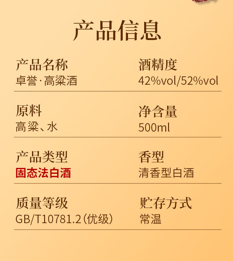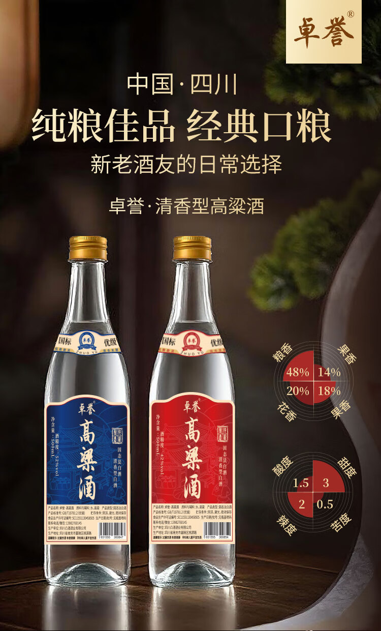 卓誉四川高粱酒泡酒自饮口粮52度瓶装清香型白酒高度数纯粮食酒500ml