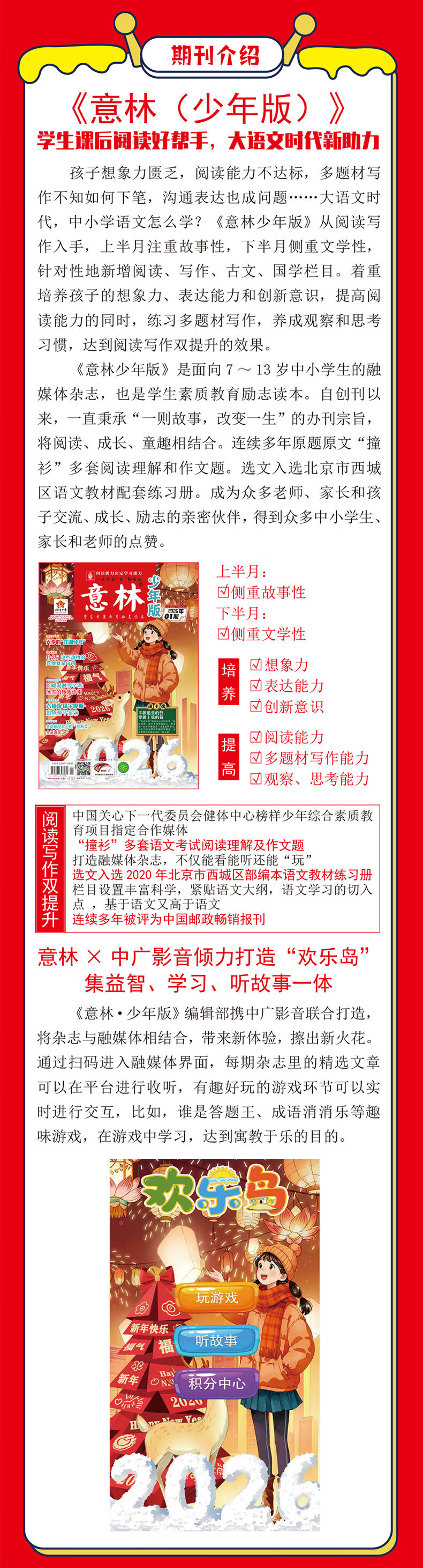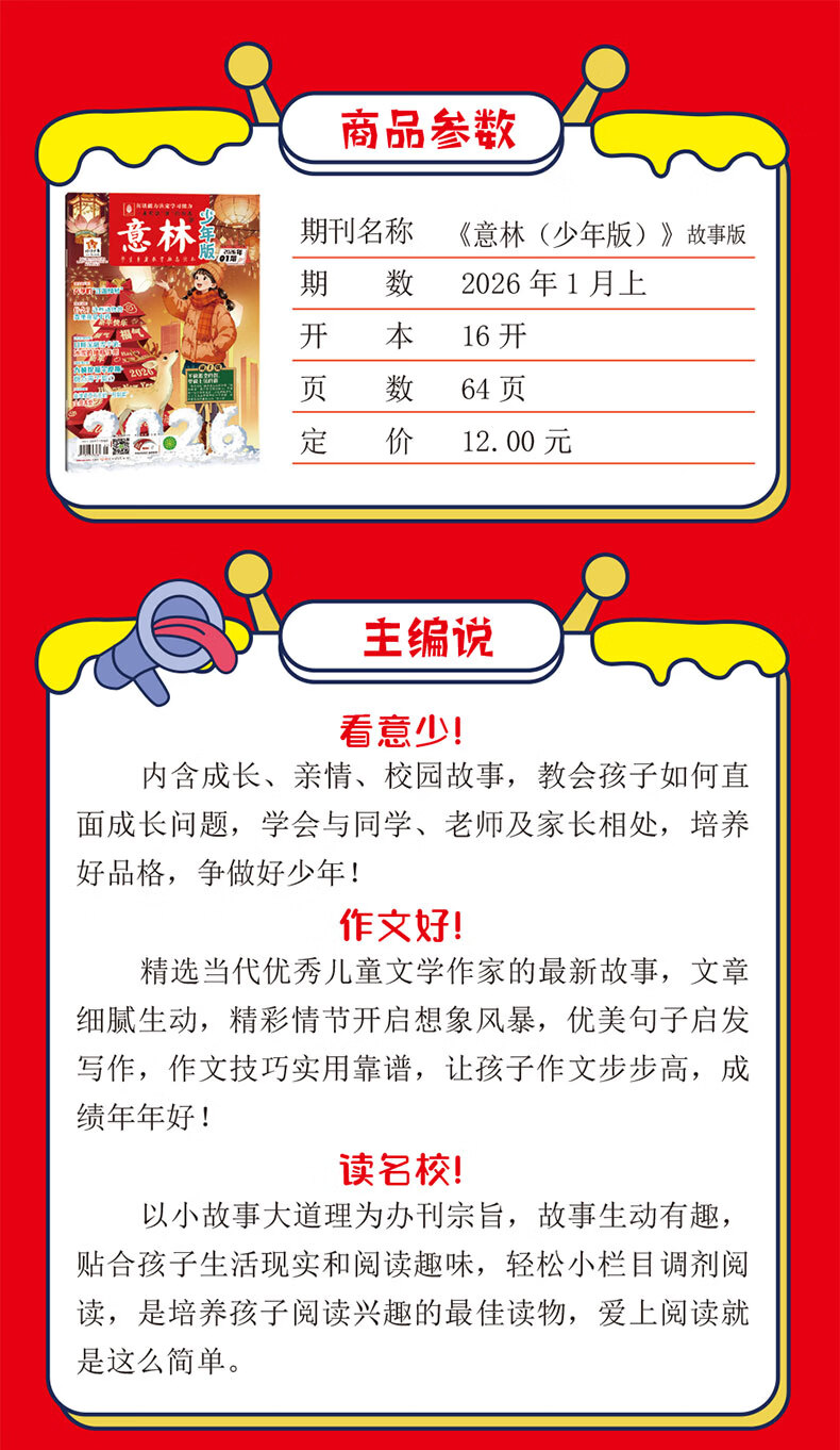 意林少年版2026期刊订阅杂志2026年1-12月全年订阅小学生课外阅读与积累下单送帆布袋图书 【半年期刊】意林少年版24年7-12月(12本)