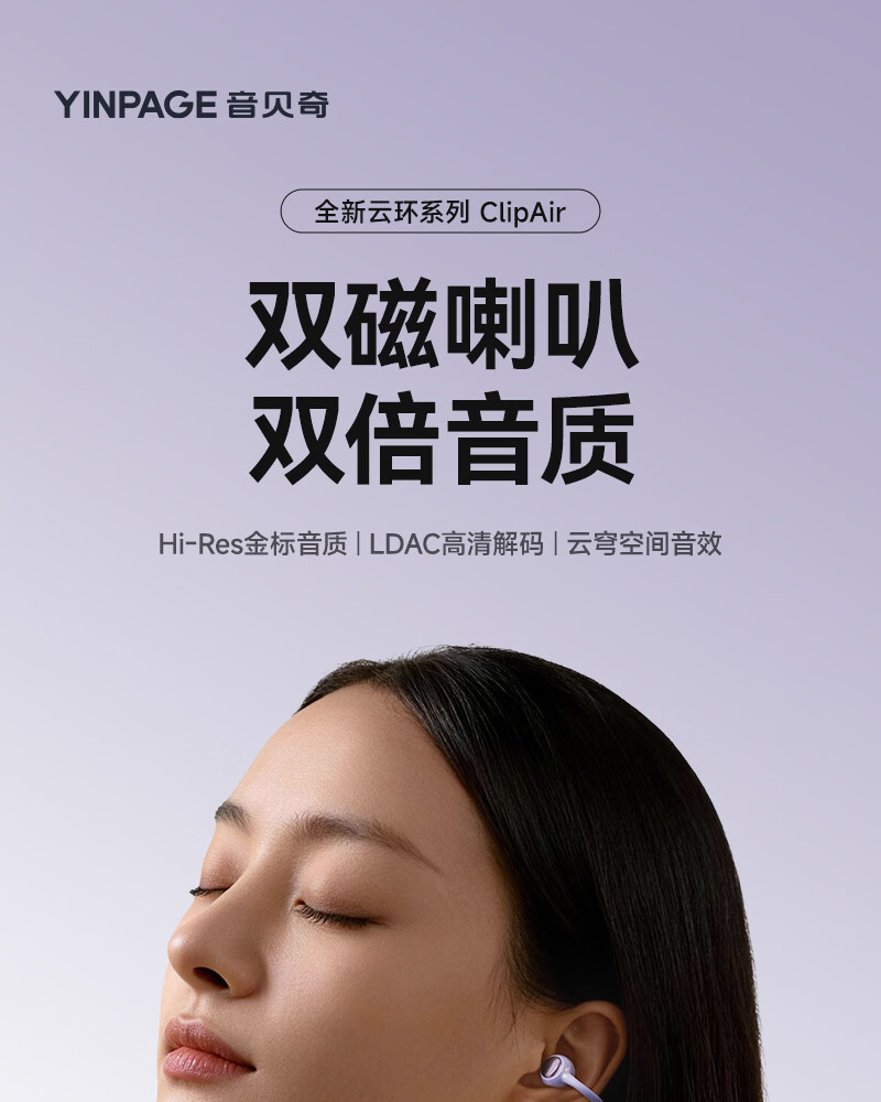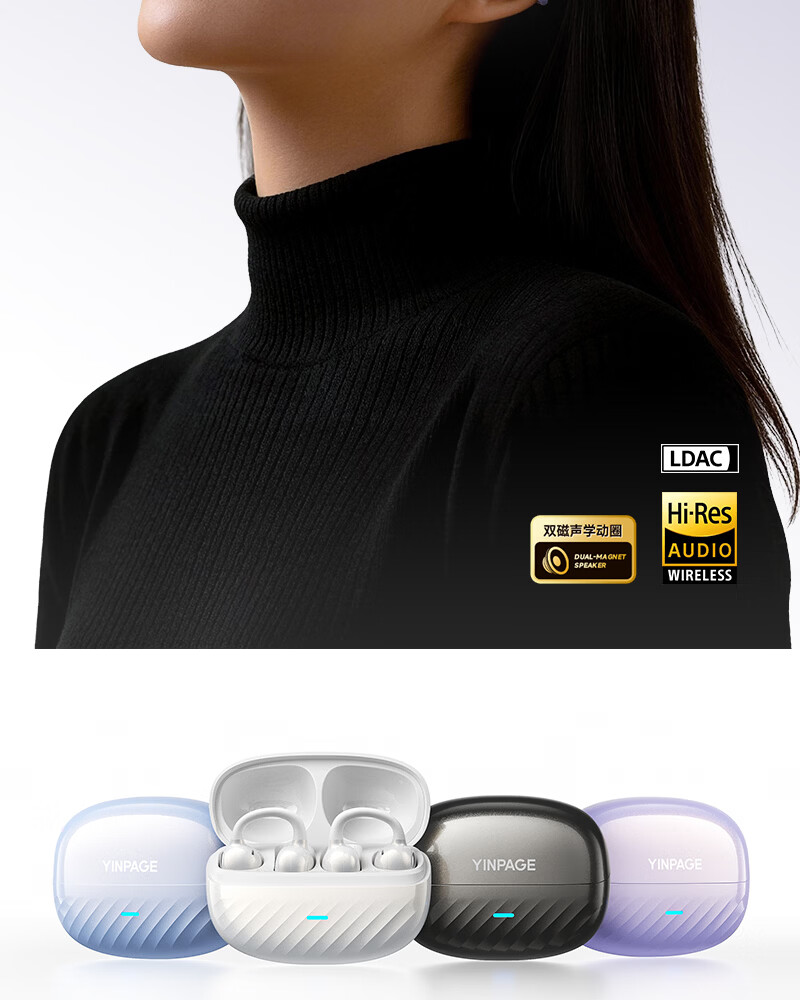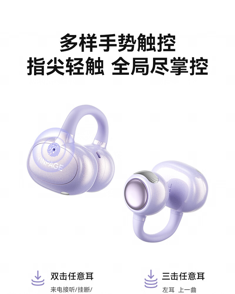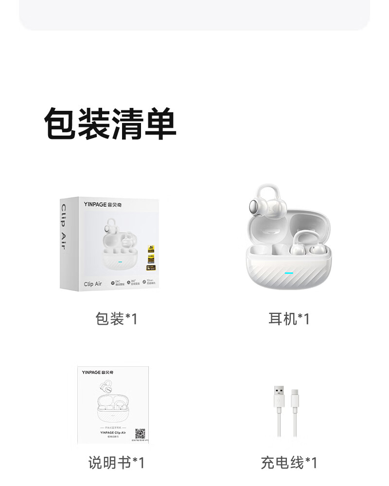 音贝奇新款ClipAir无线蓝牙耳机AI翻译耳夹式气骨传导概念开放式耳机不入耳运动挂耳式