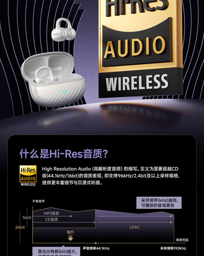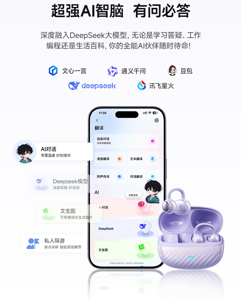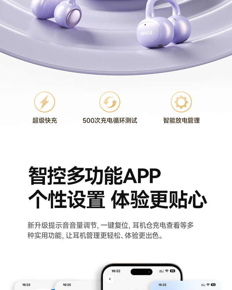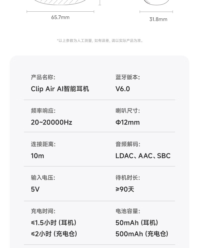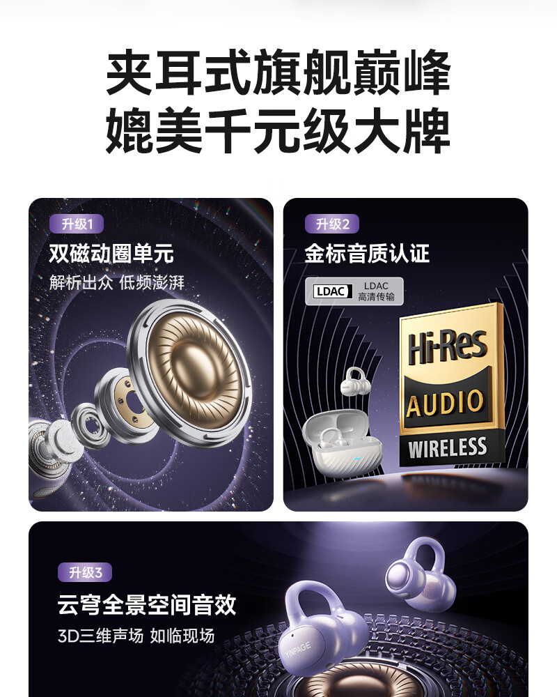 音贝奇新款ClipAir无线蓝牙耳机AI翻译耳夹式气骨传导概念开放式耳机不入耳运动挂耳式