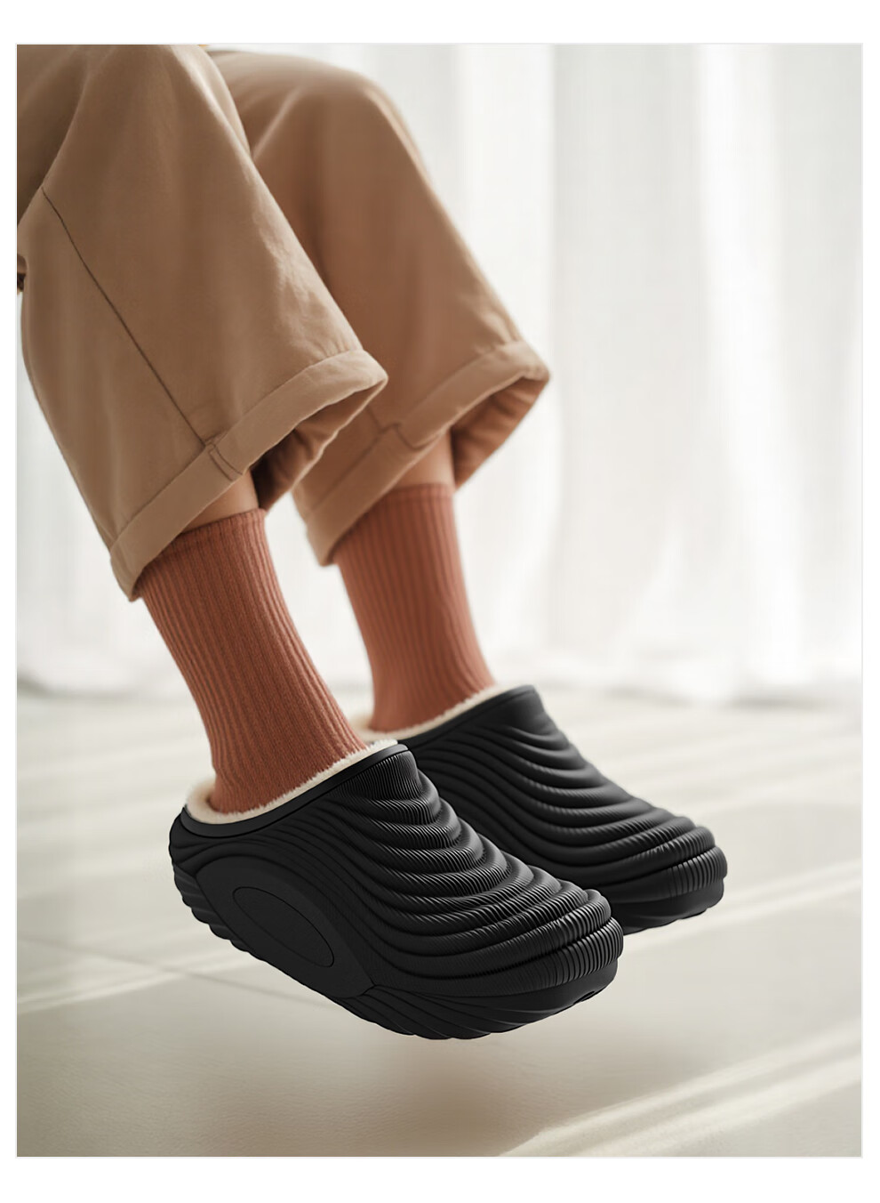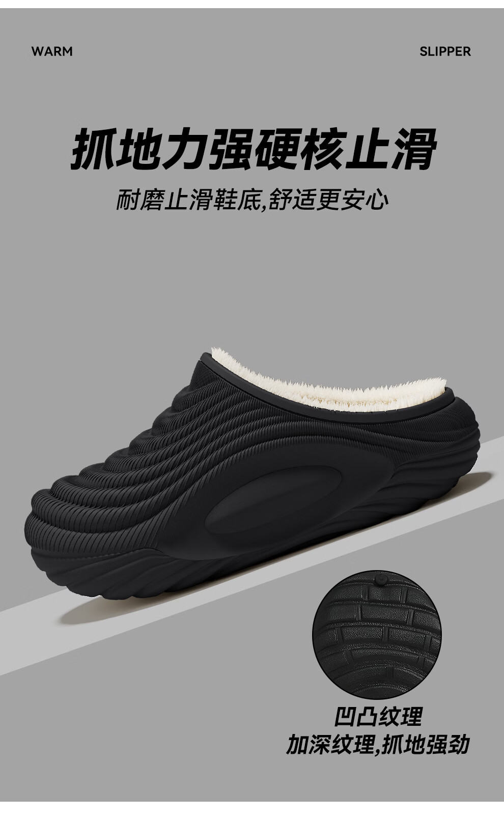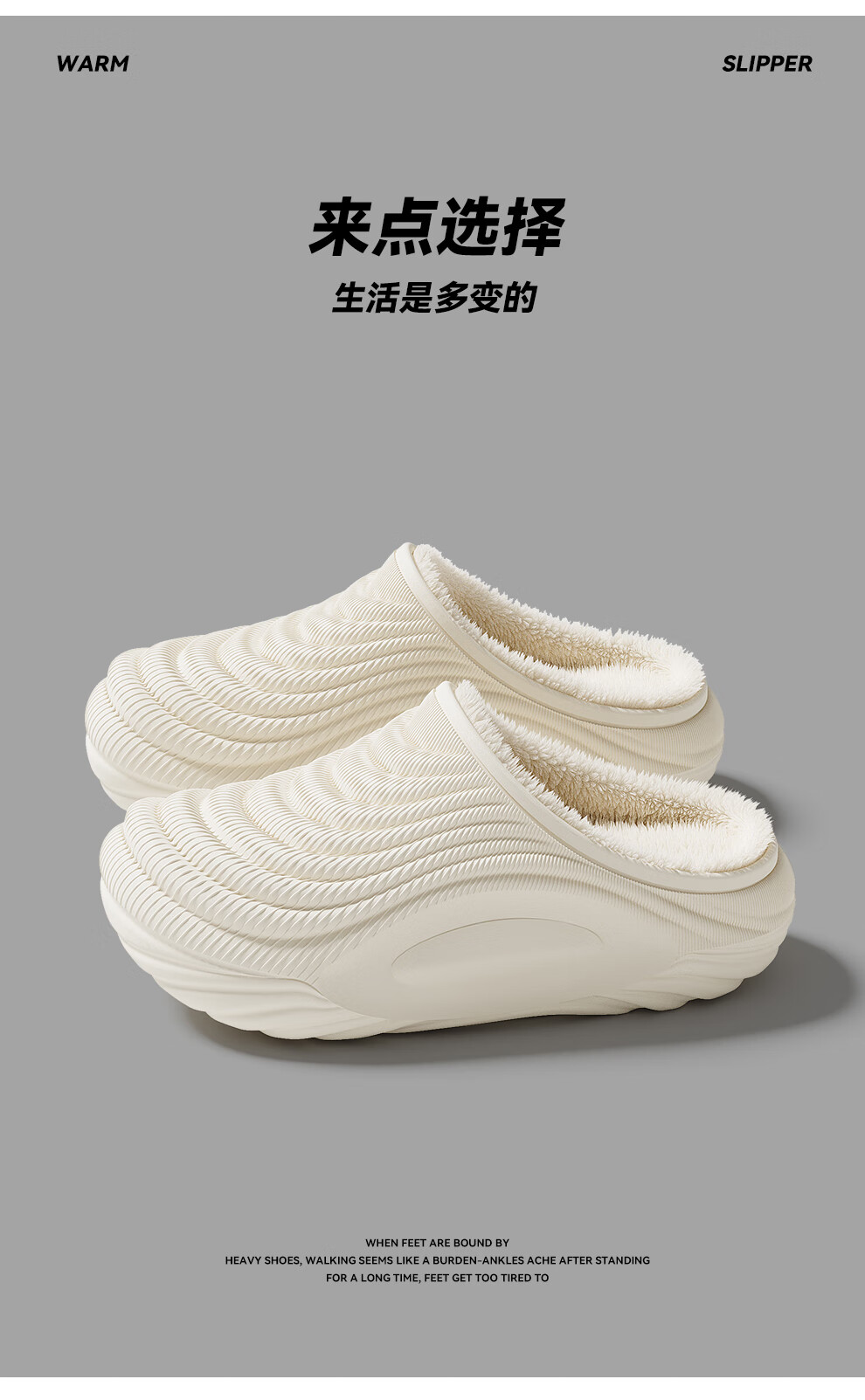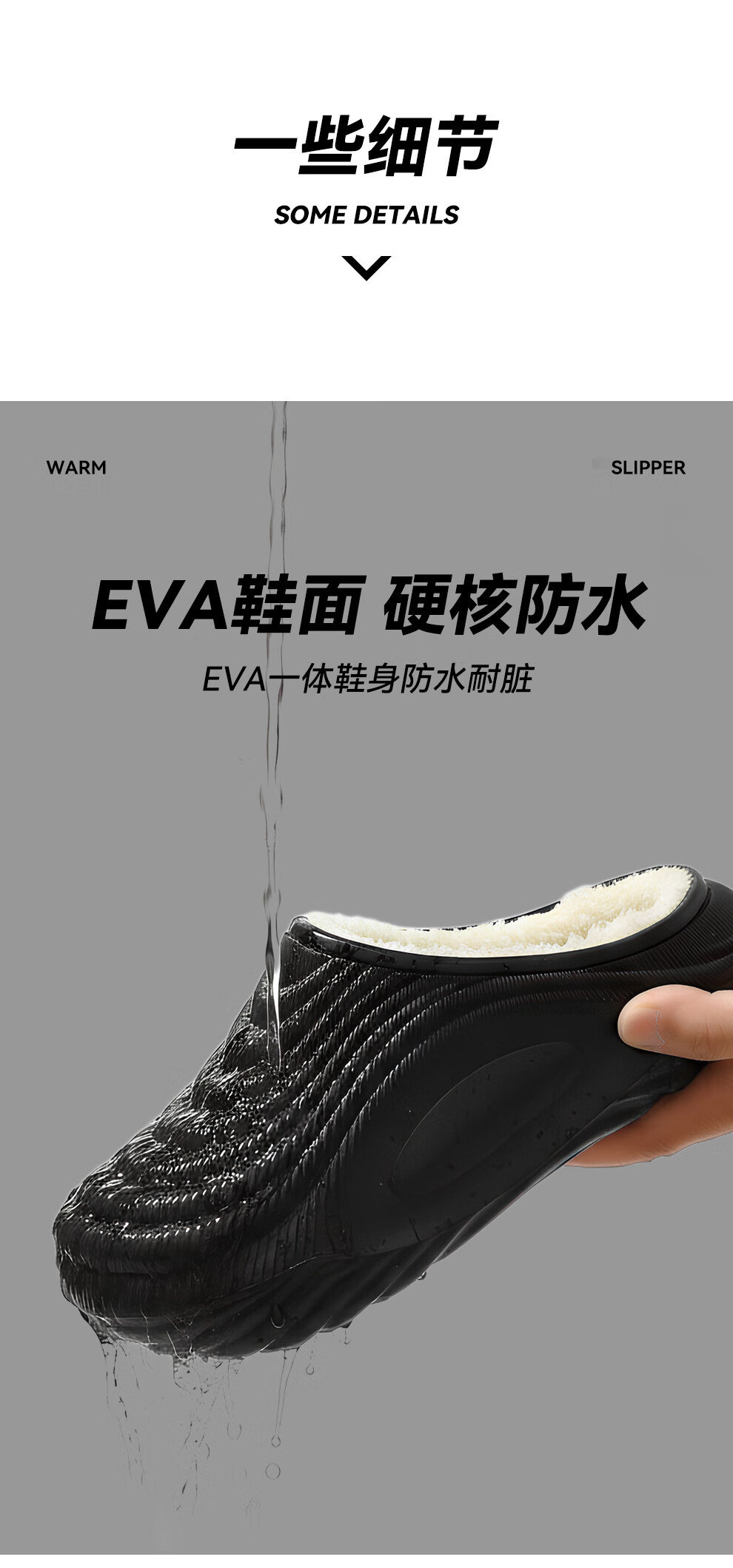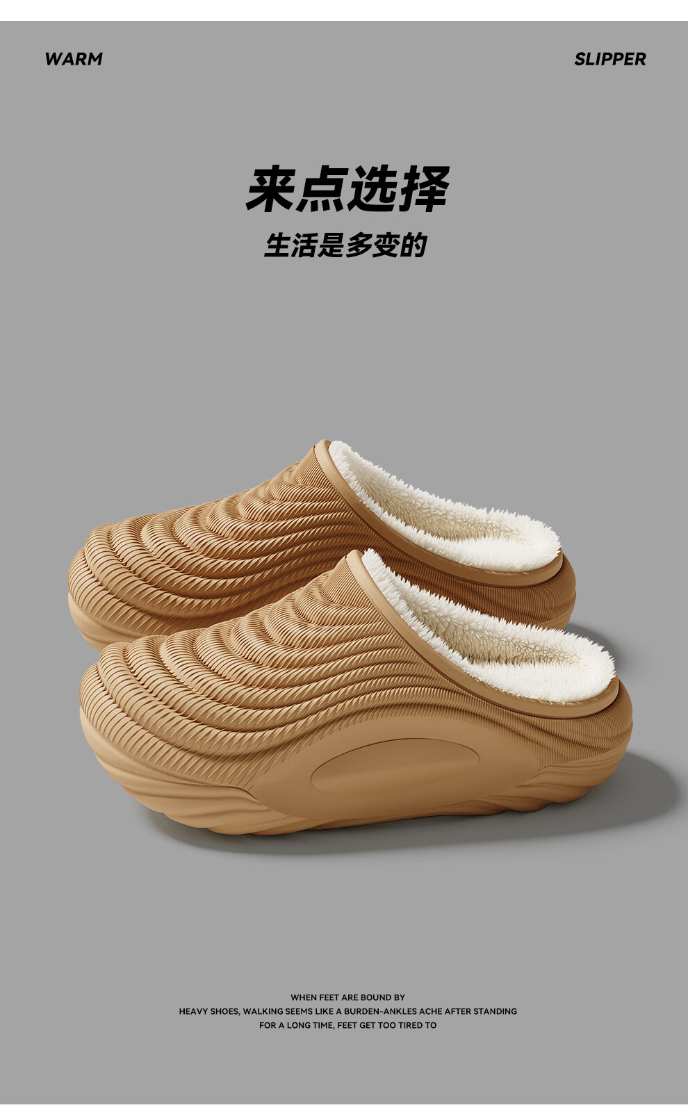 FZT防水棉拖鞋男2025新款加绒加厚秋冬季外穿厚底防臭居家毛绒棉鞋女 咖色 36-37 标准码