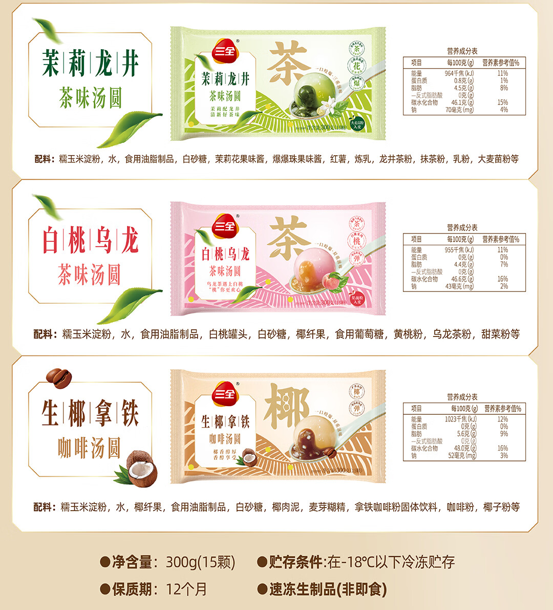 三全 大黄米汤圆 福字汤圆 经典口味甜汤圆糯米小圆子汤圆元宵 奶黄包240g