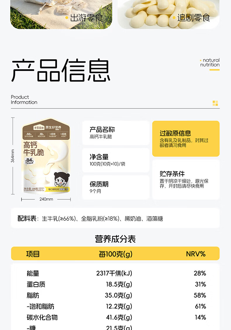 本家良田高钙牛乳脆100g儿童零食牛乳片烤奶条皮脆片奶片酥脆可口奶香浓郁 高钙牛乳脆1袋