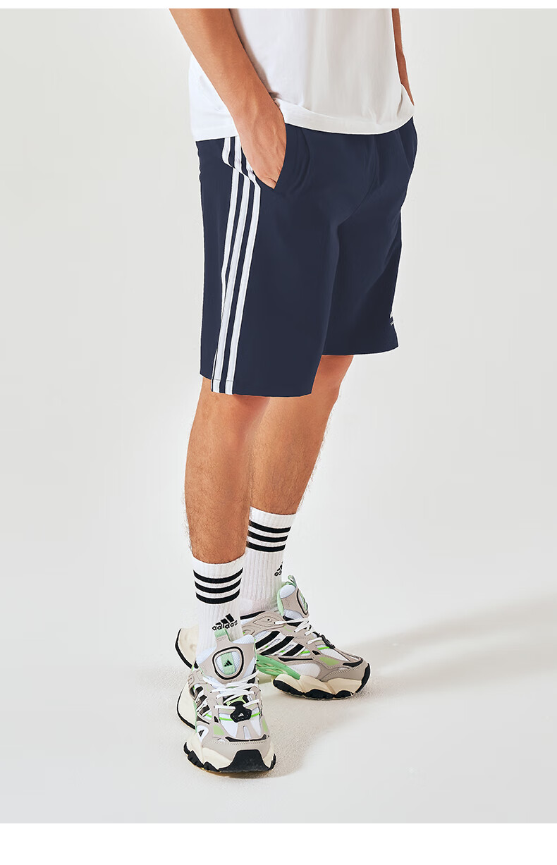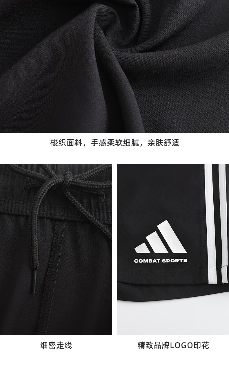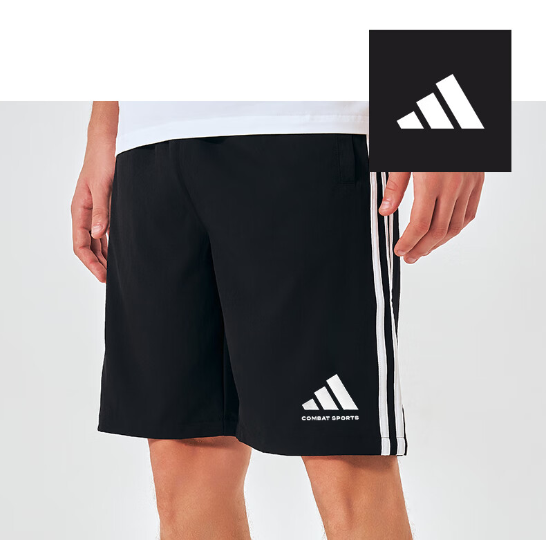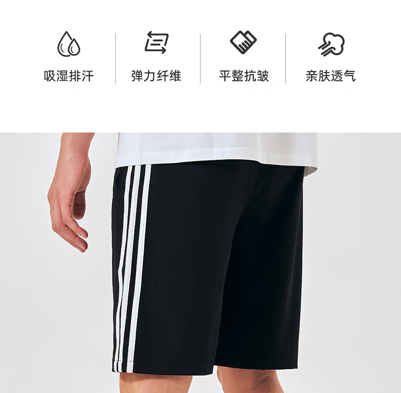 阿迪达斯短裤男夏季透气薄款宽松休闲运动梭织五分裤 黑/白 1CS-BW 3XL