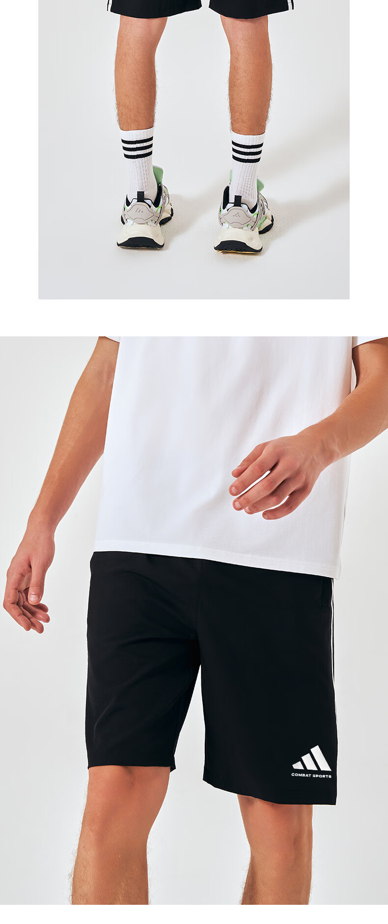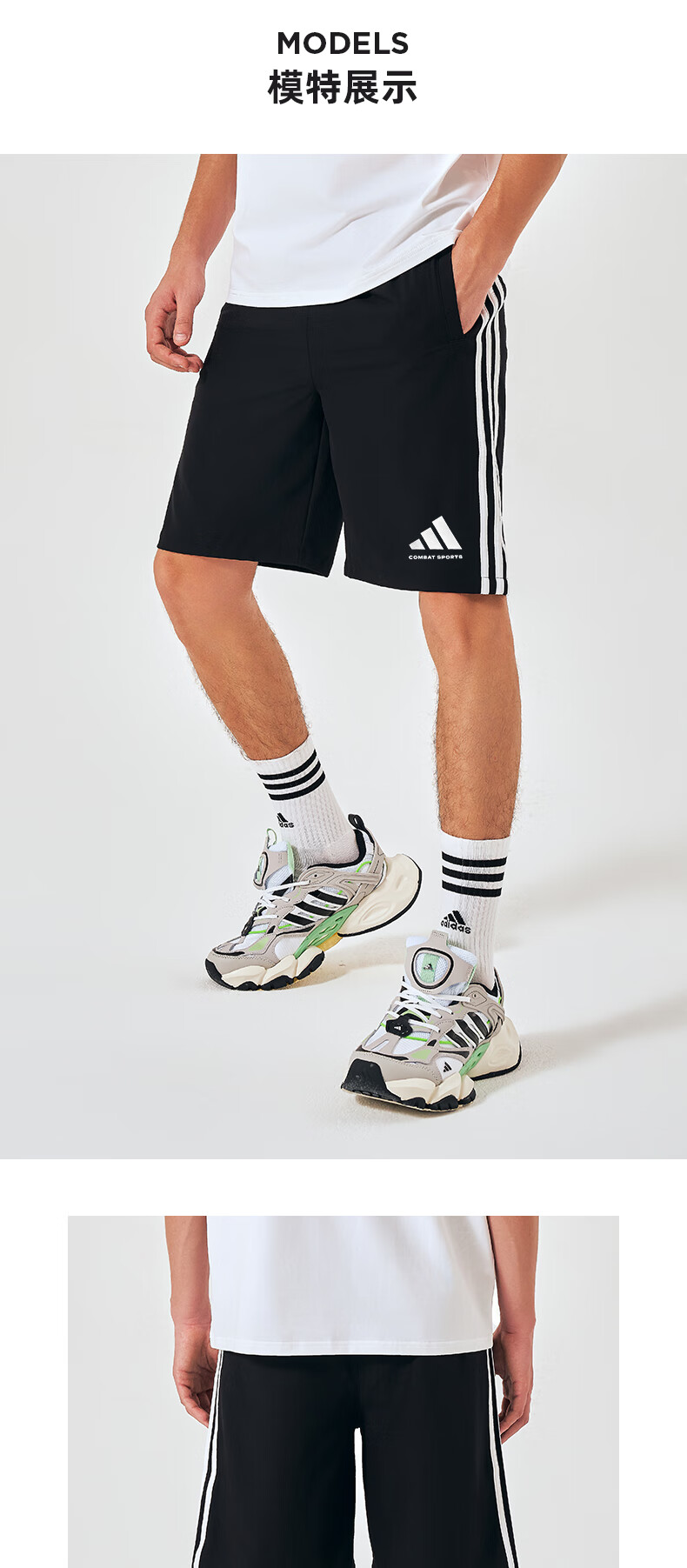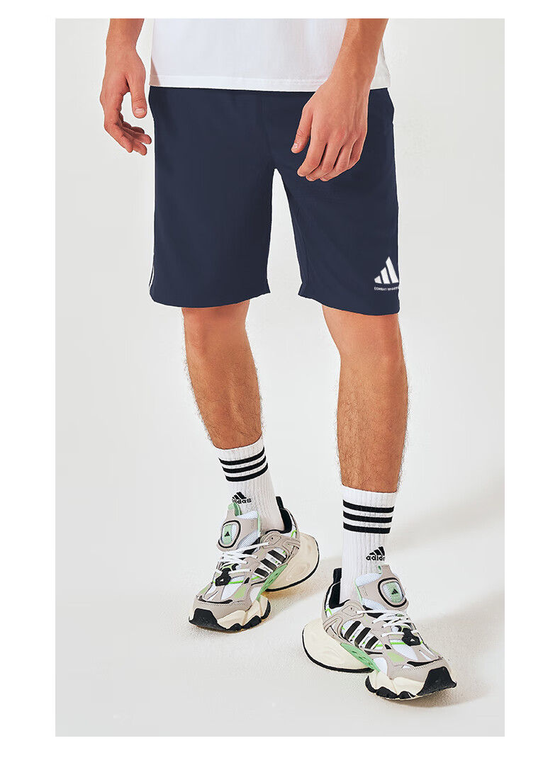 阿迪达斯短裤男夏季透气薄款宽松休闲运动梭织五分裤 黑/白 1CS-BW 3XL