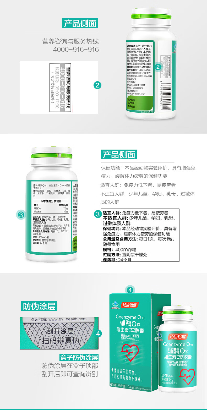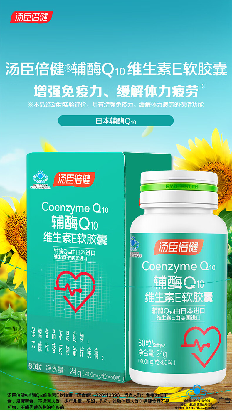 汤臣倍健【防伪可查 药房直售】汤臣倍健辅酶Q10天然维生素E软胶囊60粒中 辅酶Q10【新效期】 60粒*2瓶