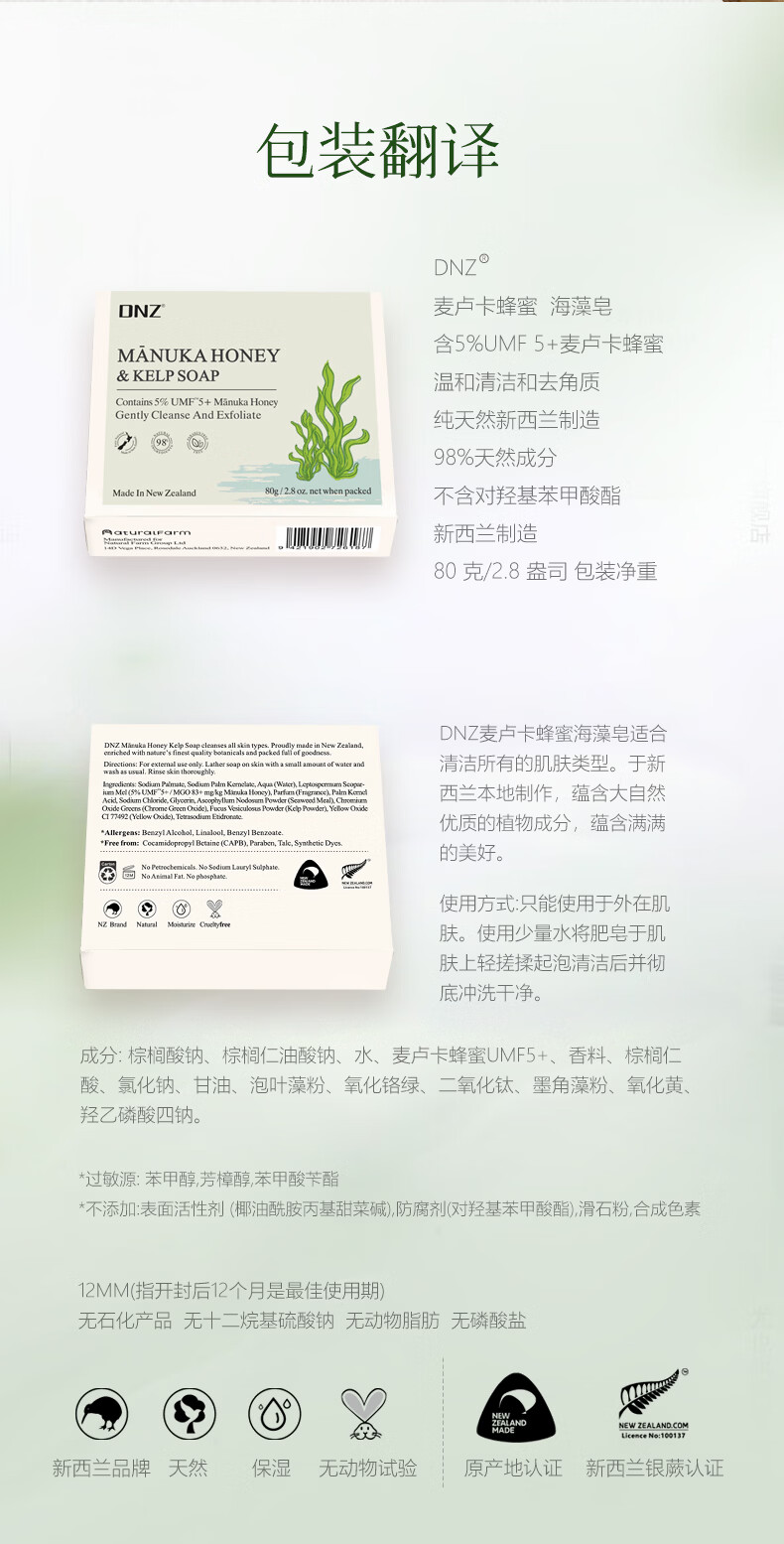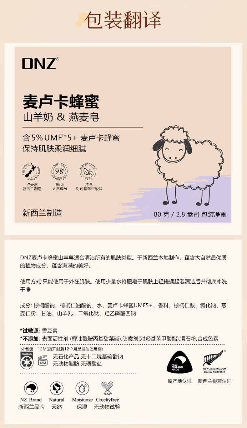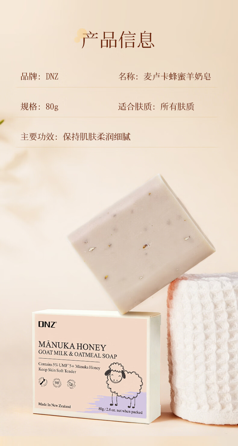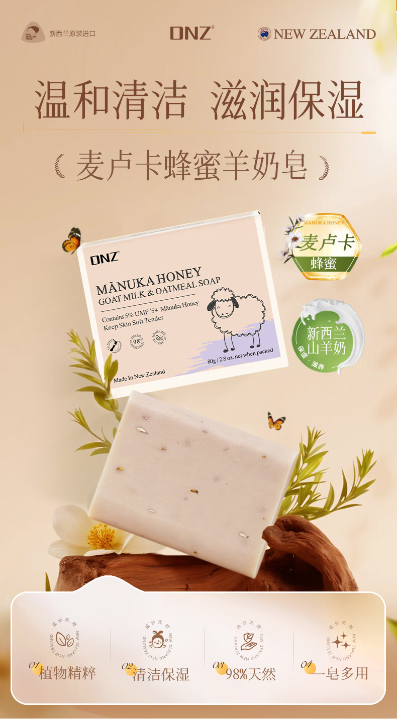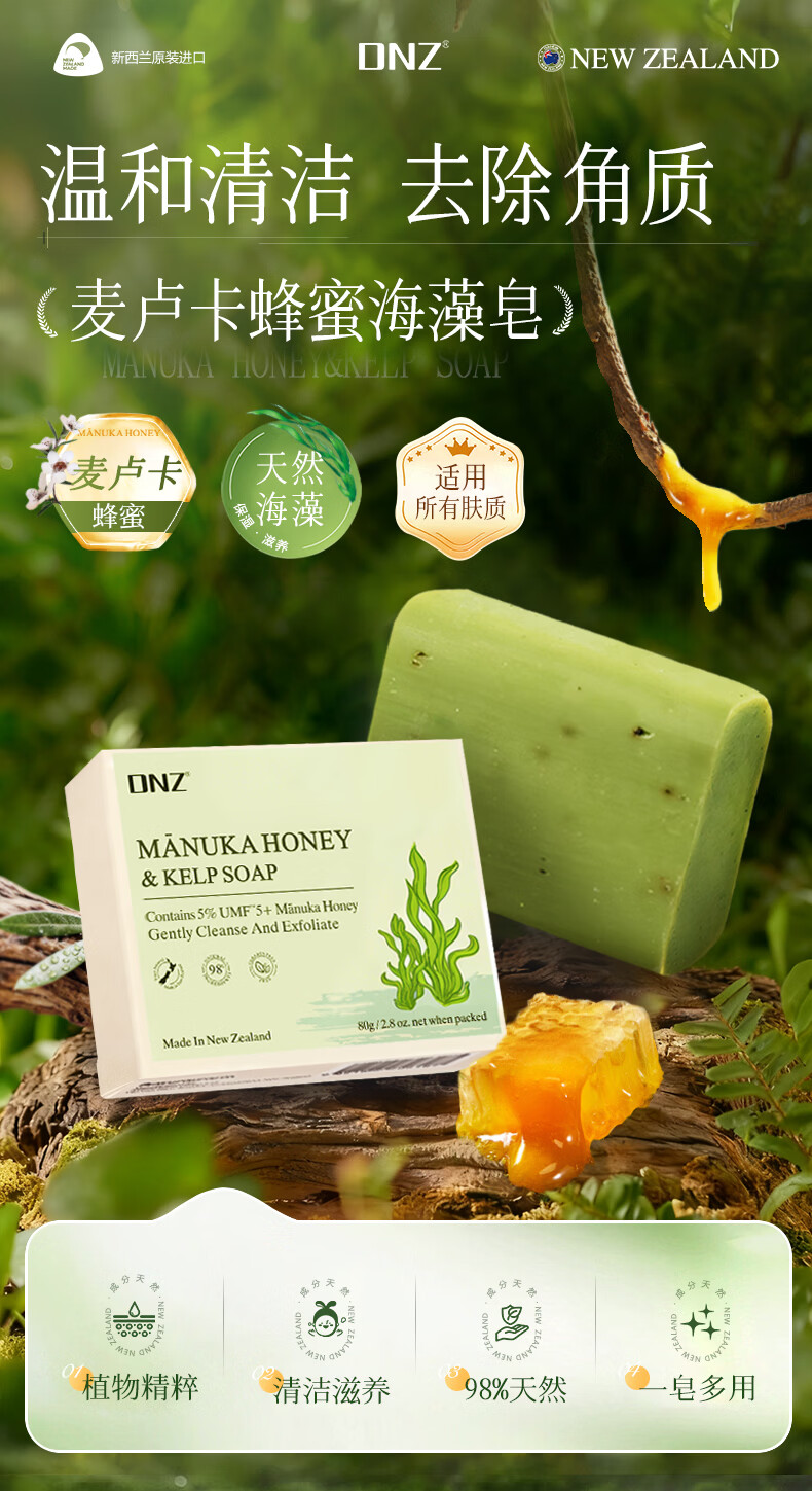 DNZ新西兰原装进口麦卢卡蜂蜜海藻 羊奶香皂送礼伴手礼 麦卢卡蜂蜜羊奶皂