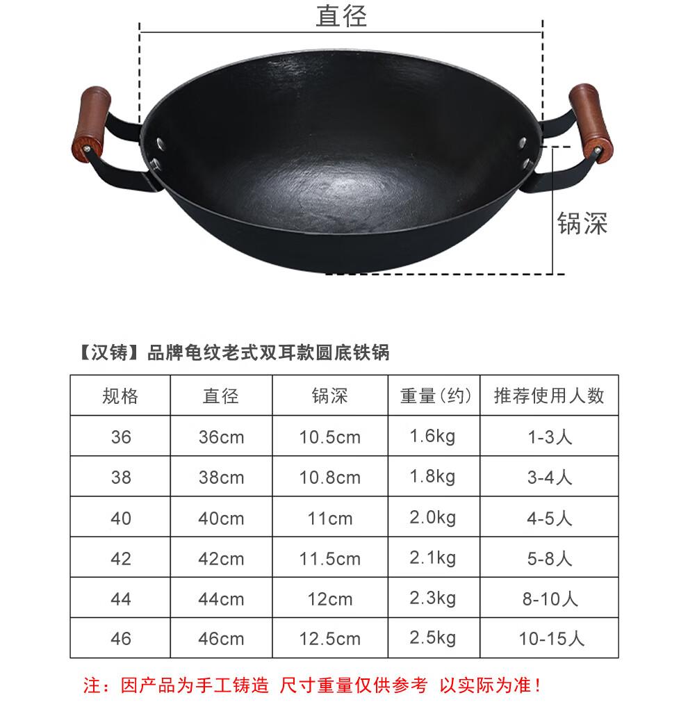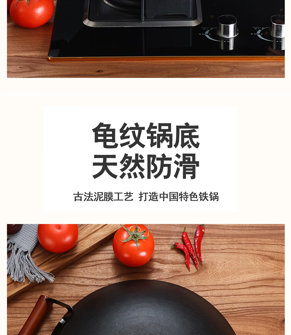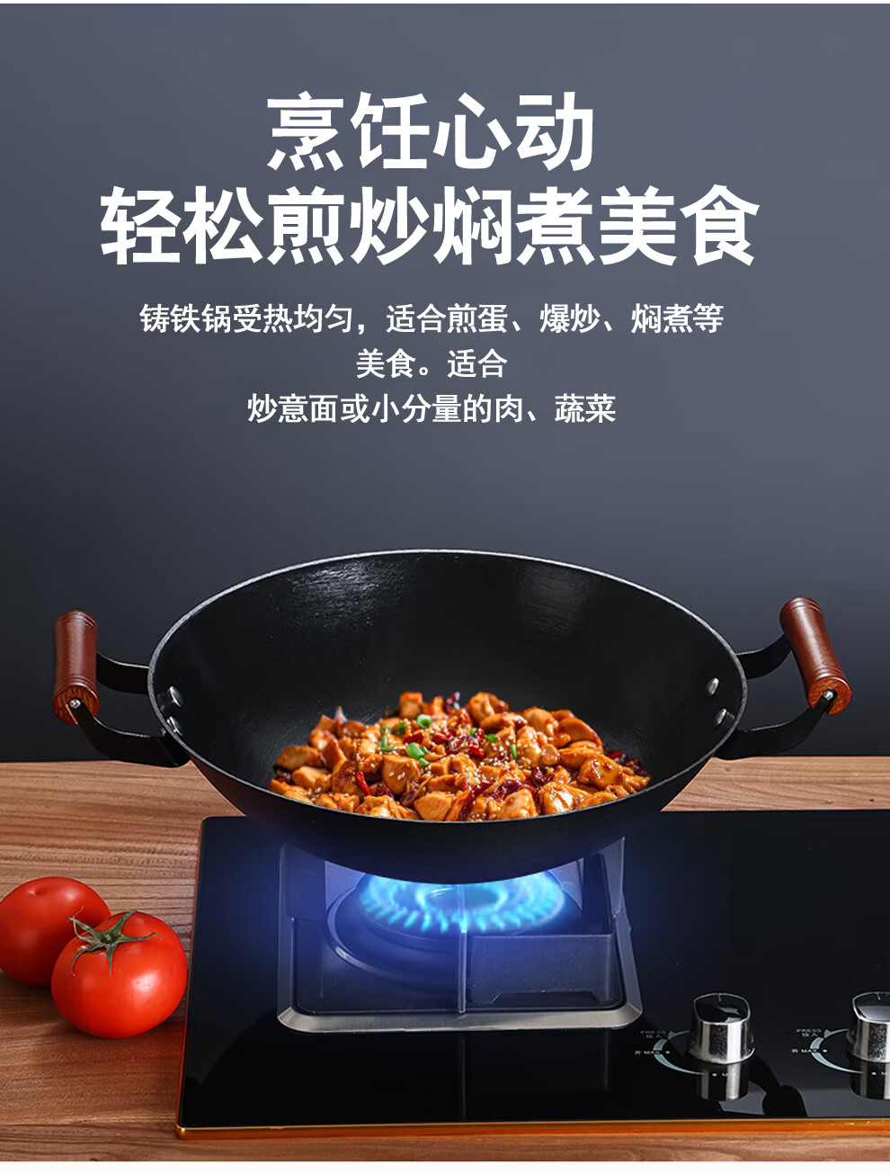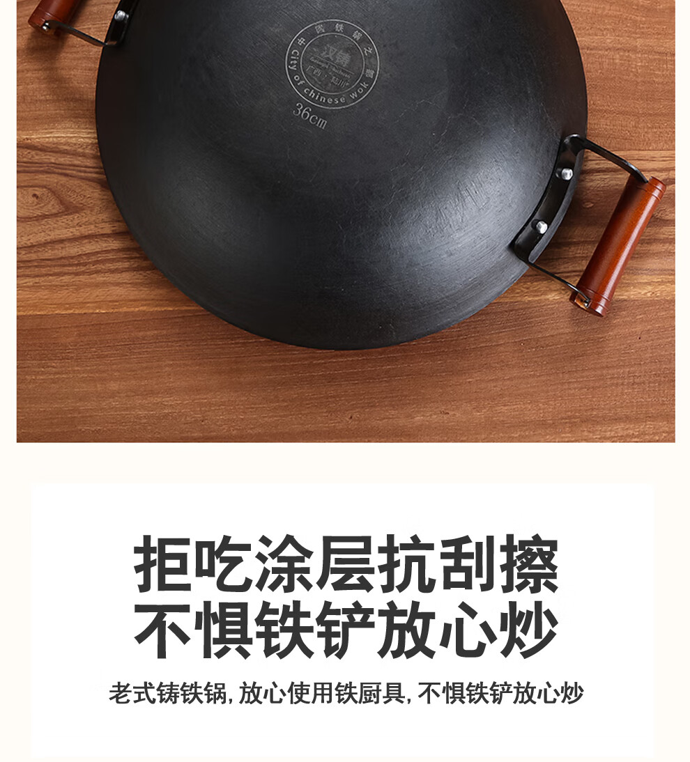 汉铸陆川铁锅龟纹生铁铸铁炒锅双耳不沾锅无涂层传统老式圆底燃气灶 龟纹双38cm有盖款(已开锅) 38cm