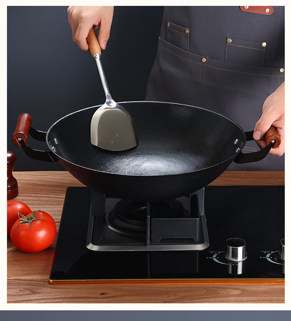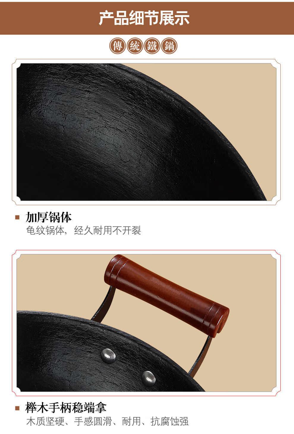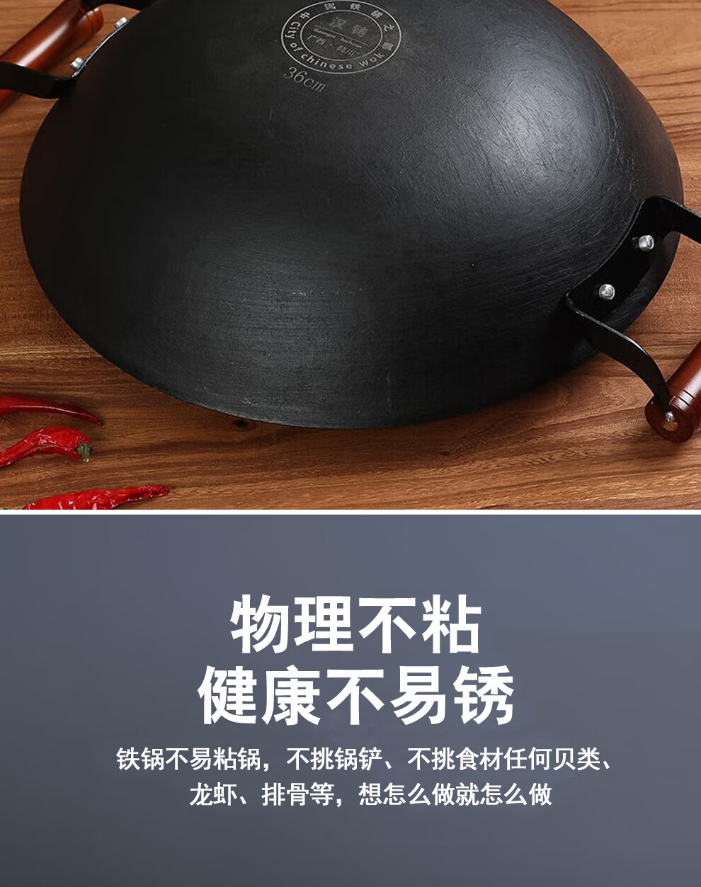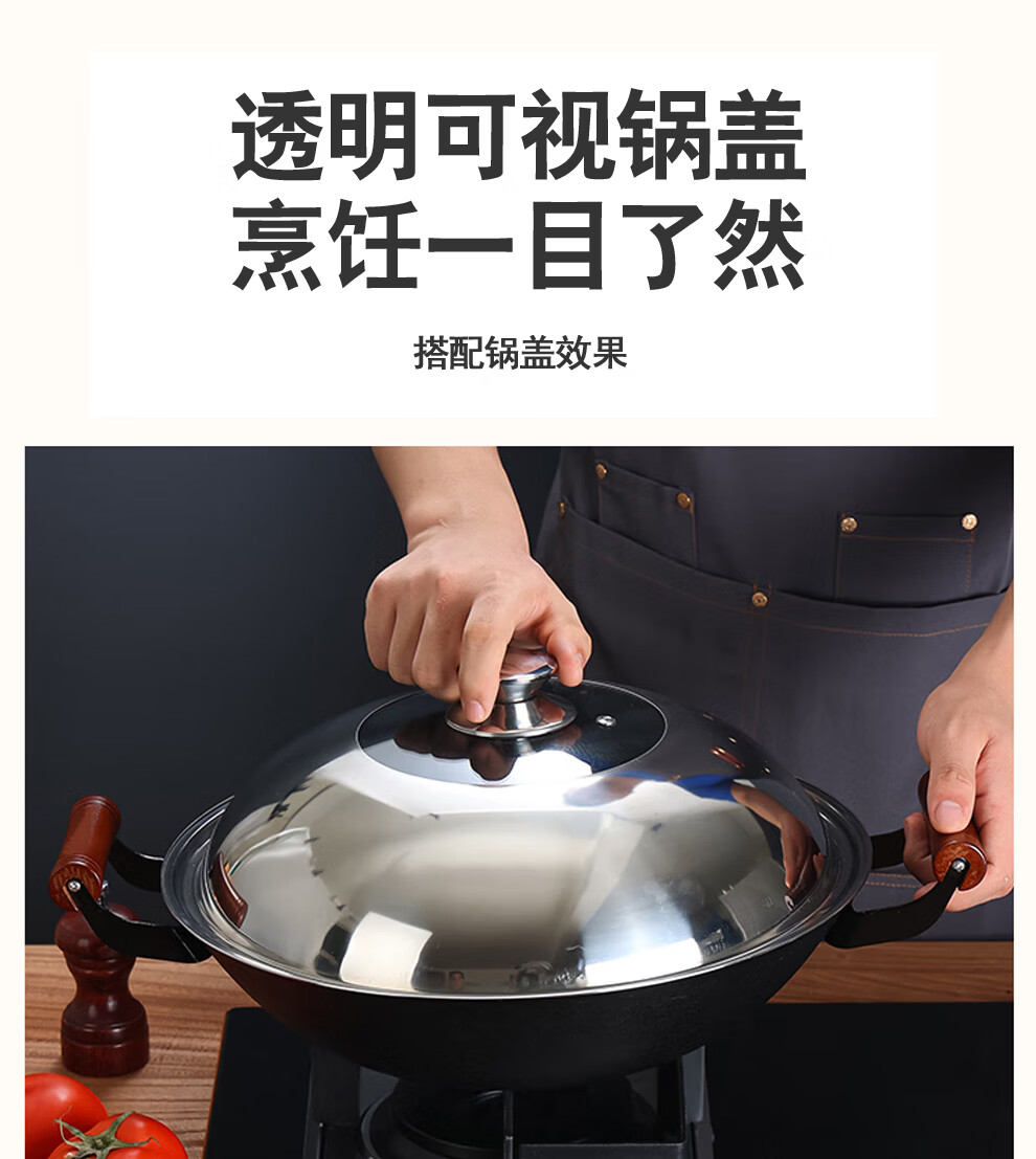 汉铸陆川铁锅龟纹生铁铸铁炒锅双耳不沾锅无涂层传统老式圆底燃气灶 龟纹双38cm有盖款(已开锅) 38cm