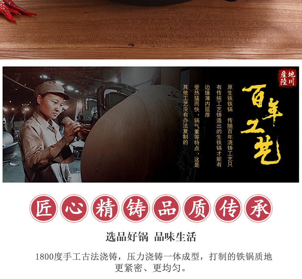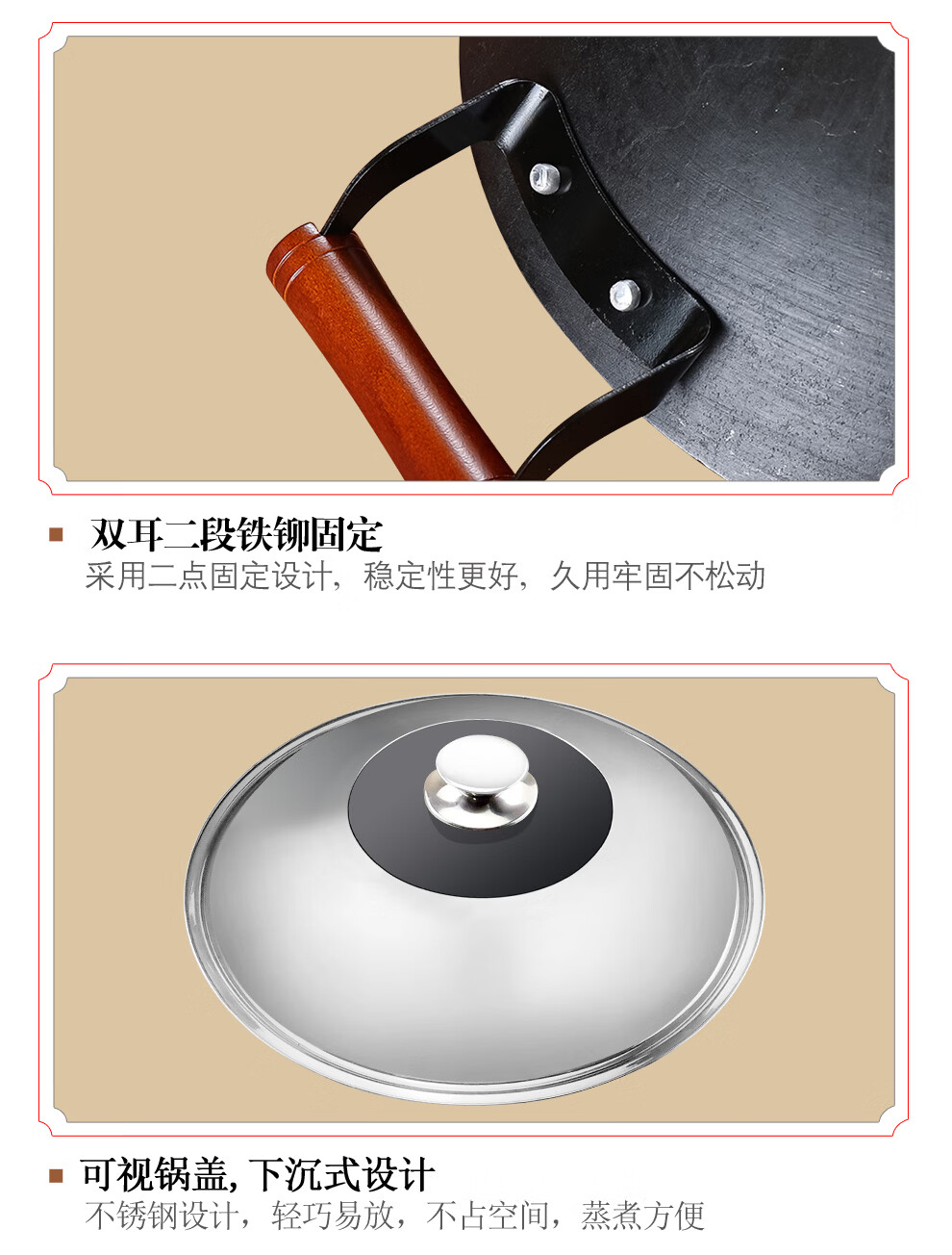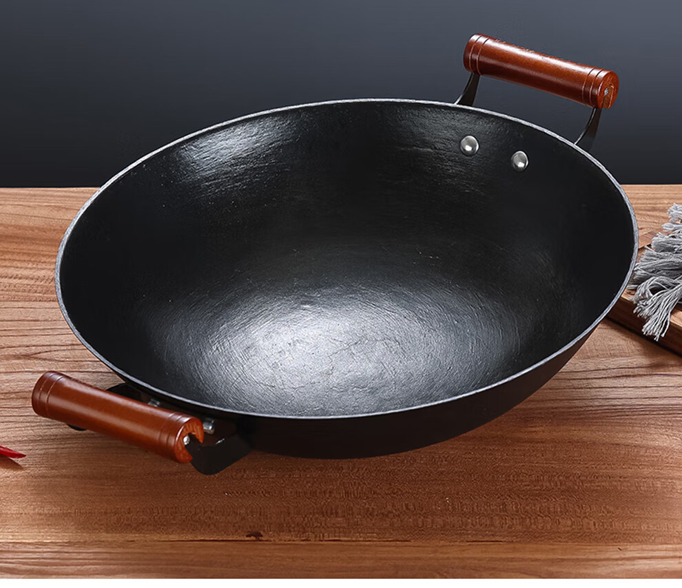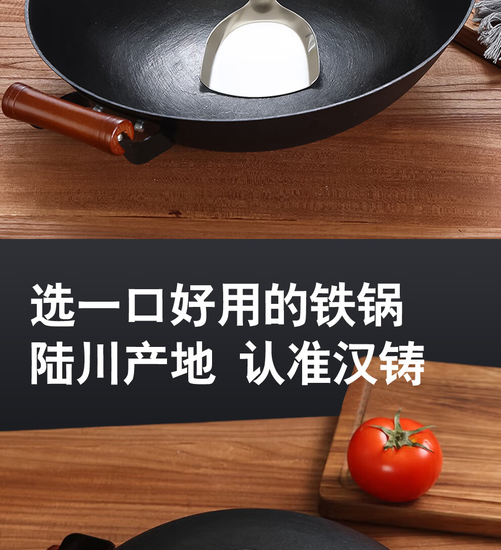 汉铸陆川铁锅龟纹生铁铸铁炒锅双耳不沾锅无涂层传统老式圆底燃气灶 龟纹双38cm有盖款(已开锅) 38cm