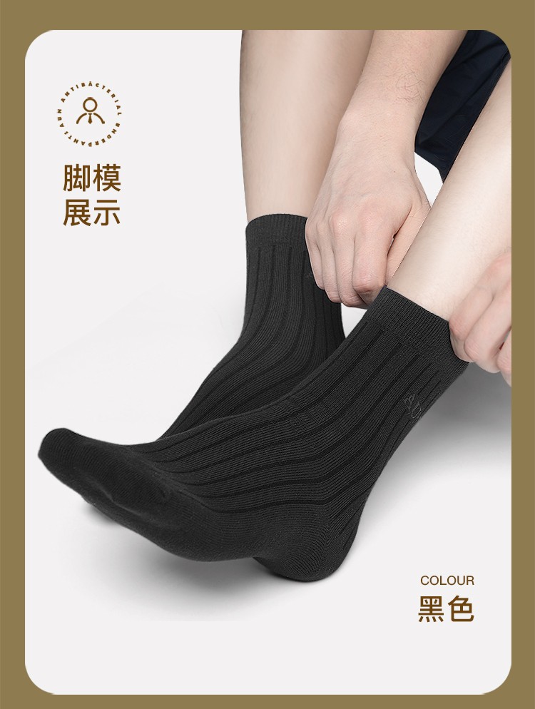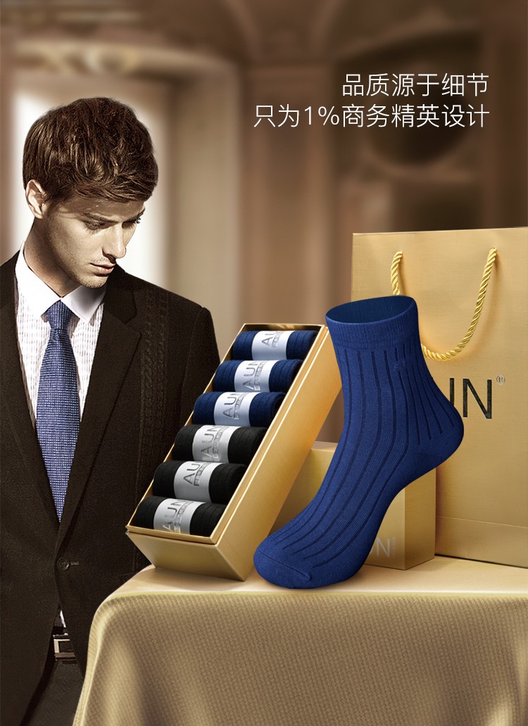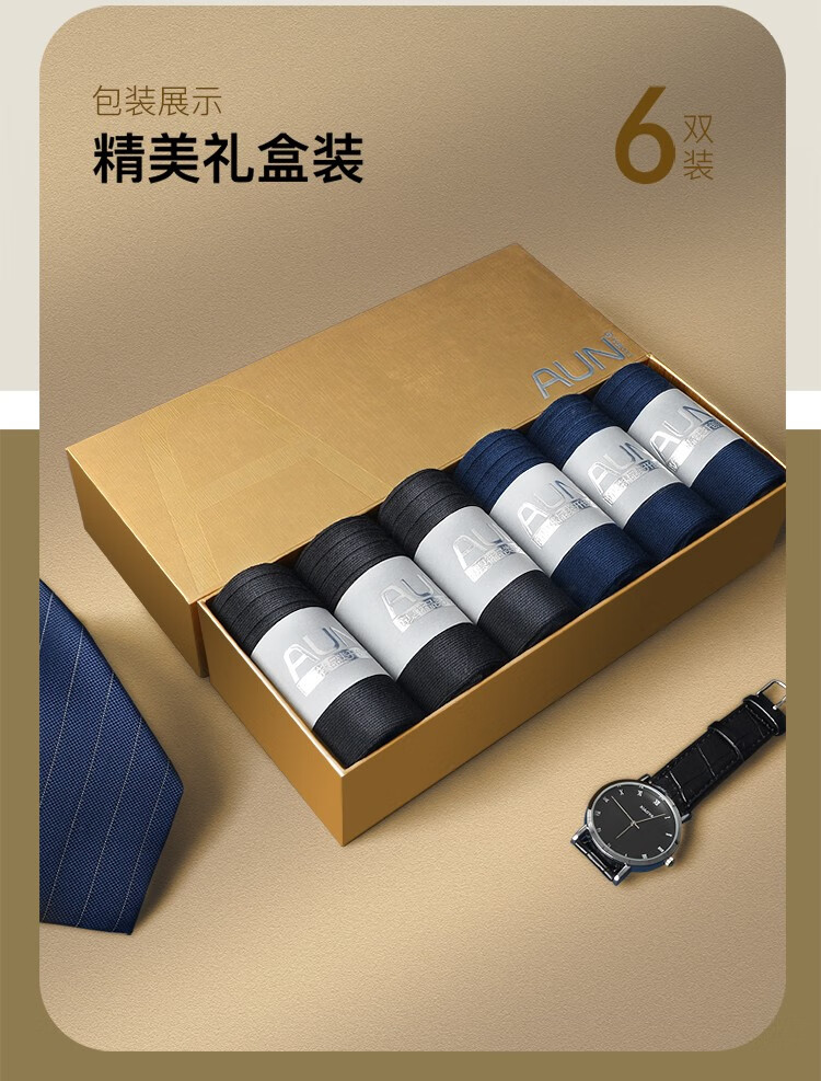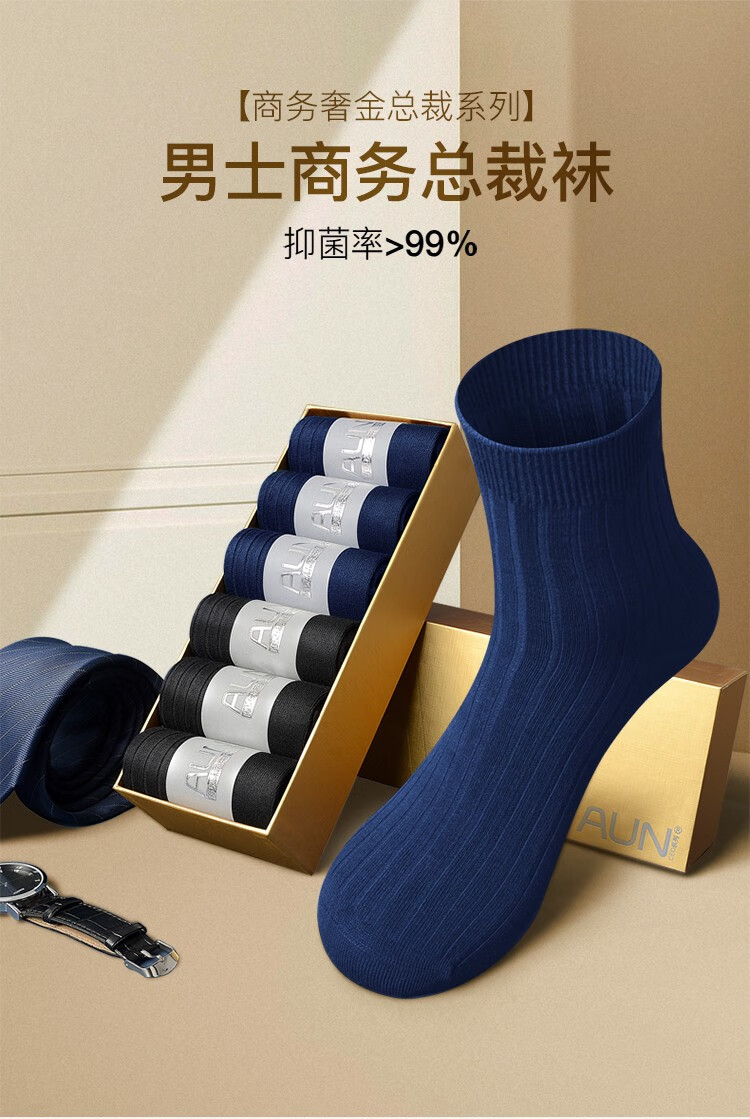 AUN爱优恩总裁CEO款商务男士袜子春夏防臭透气纯黑色棉中筒送礼盒款 春夏透气薄款(3黑3藏蓝)= 6双 均码
