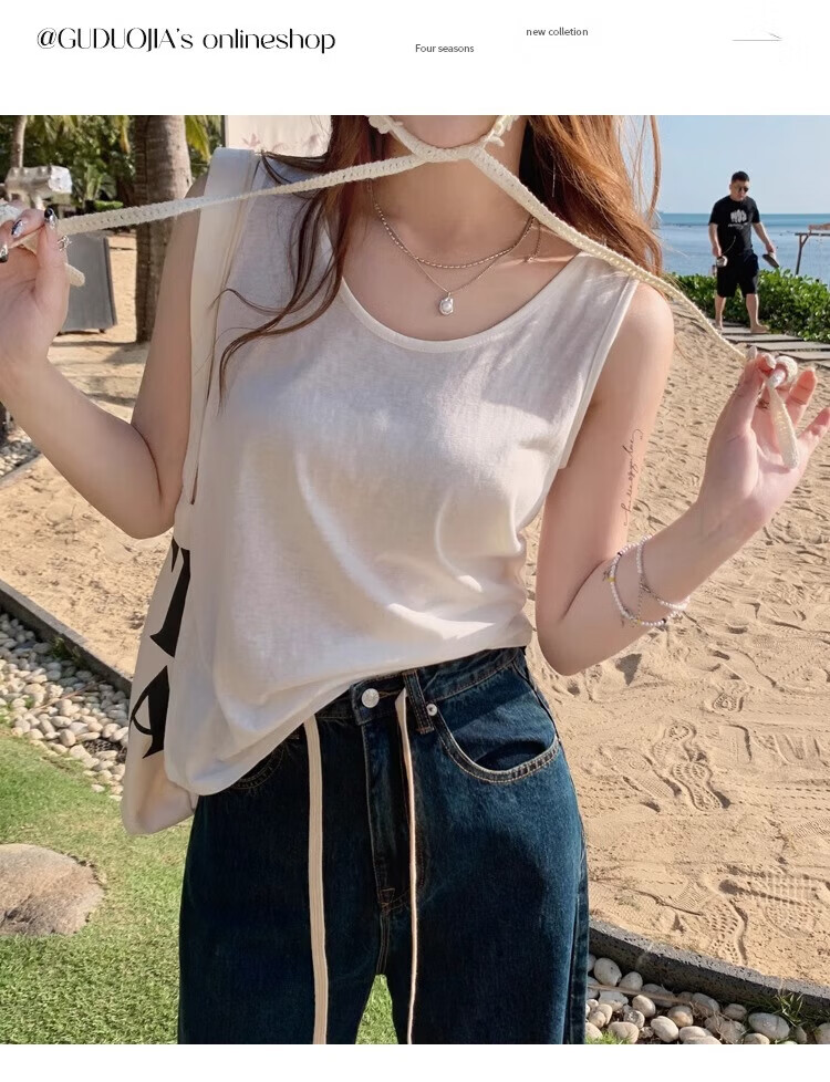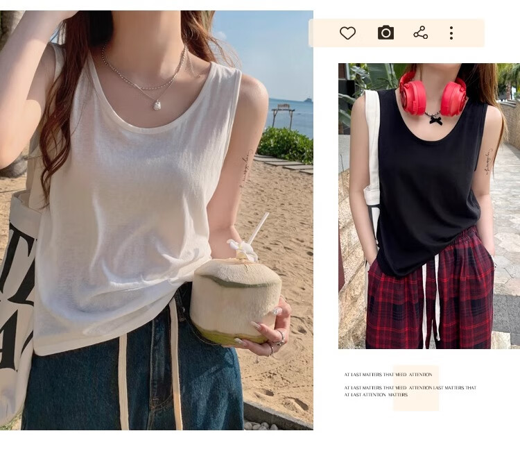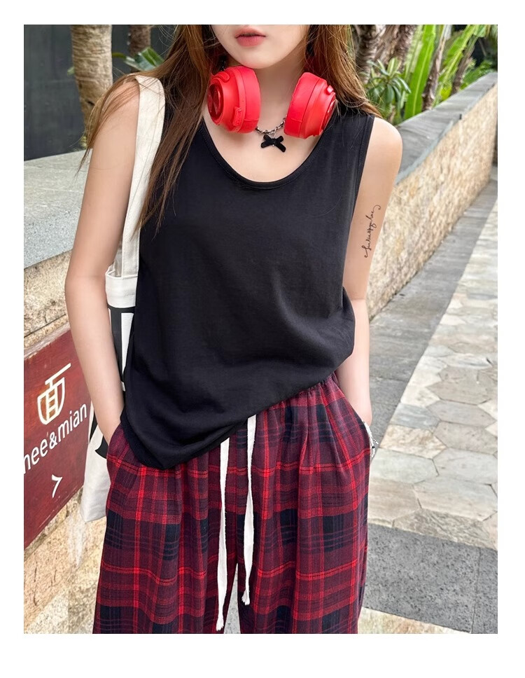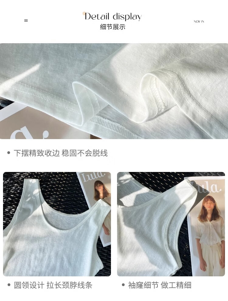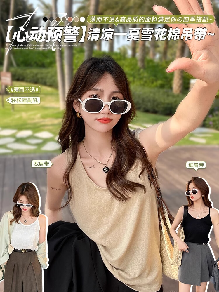 浪莎吊带背心女夏季新款外穿棉麻打底宽松慵懒上衣宽肩带无袖t恤内搭 白+黑【两件更优惠】背心款 L 【推荐115-130斤】