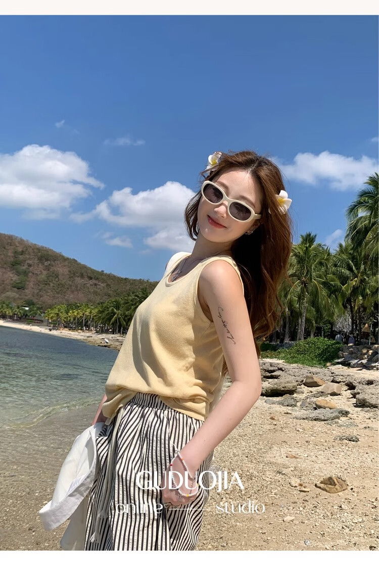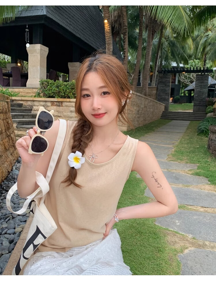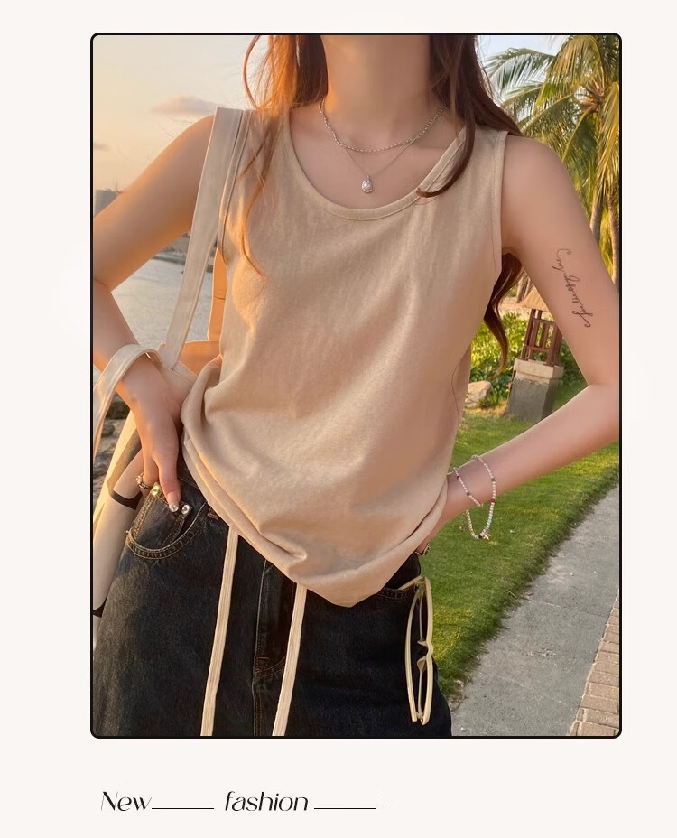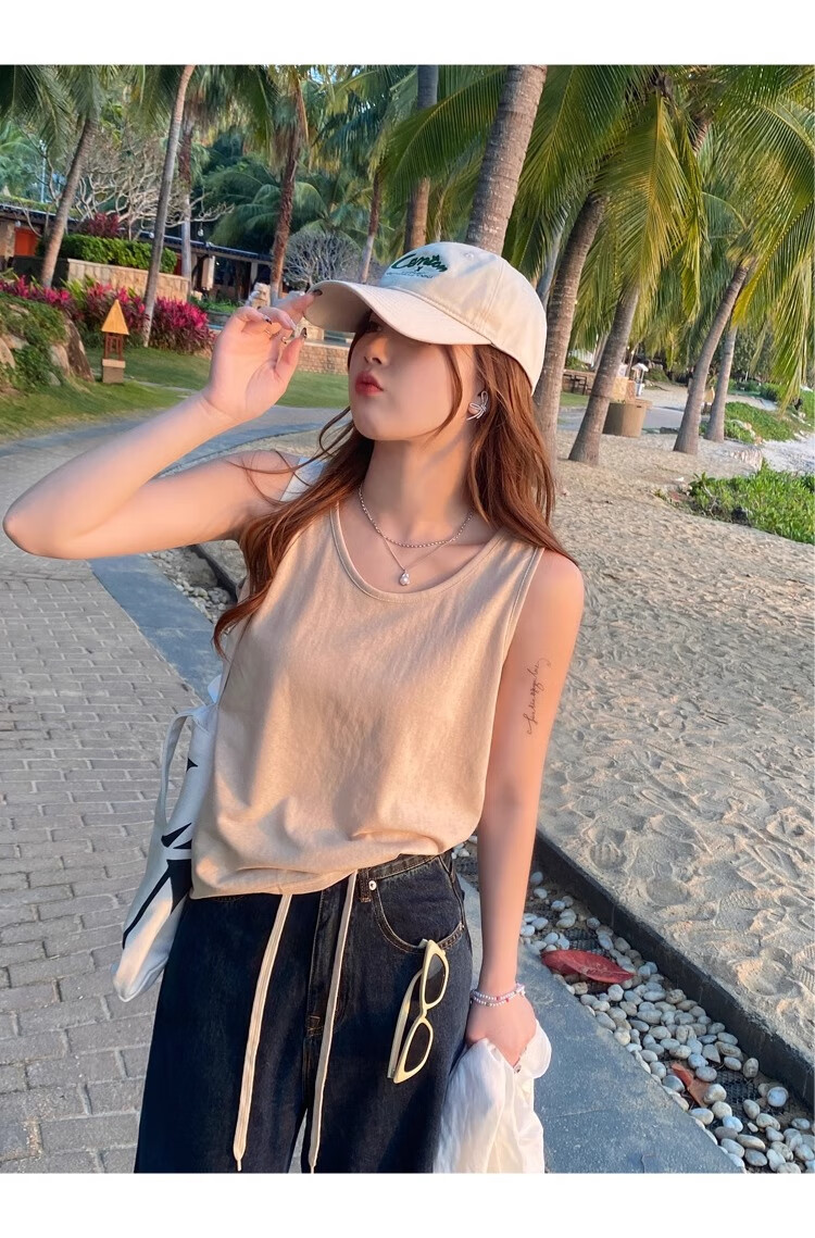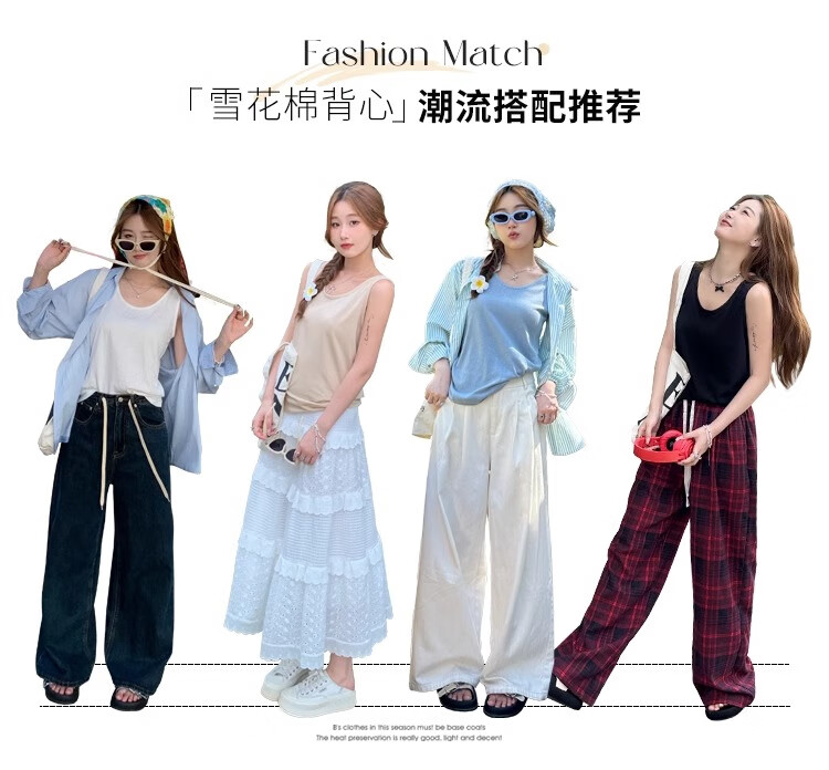 浪莎吊带背心女夏季新款外穿棉麻打底宽松慵懒上衣宽肩带无袖t恤内搭 白+黑【两件更优惠】背心款 L 【推荐115-130斤】