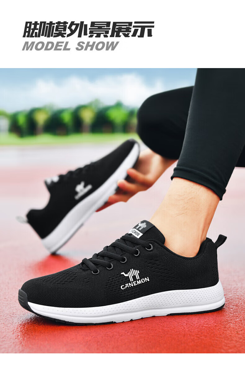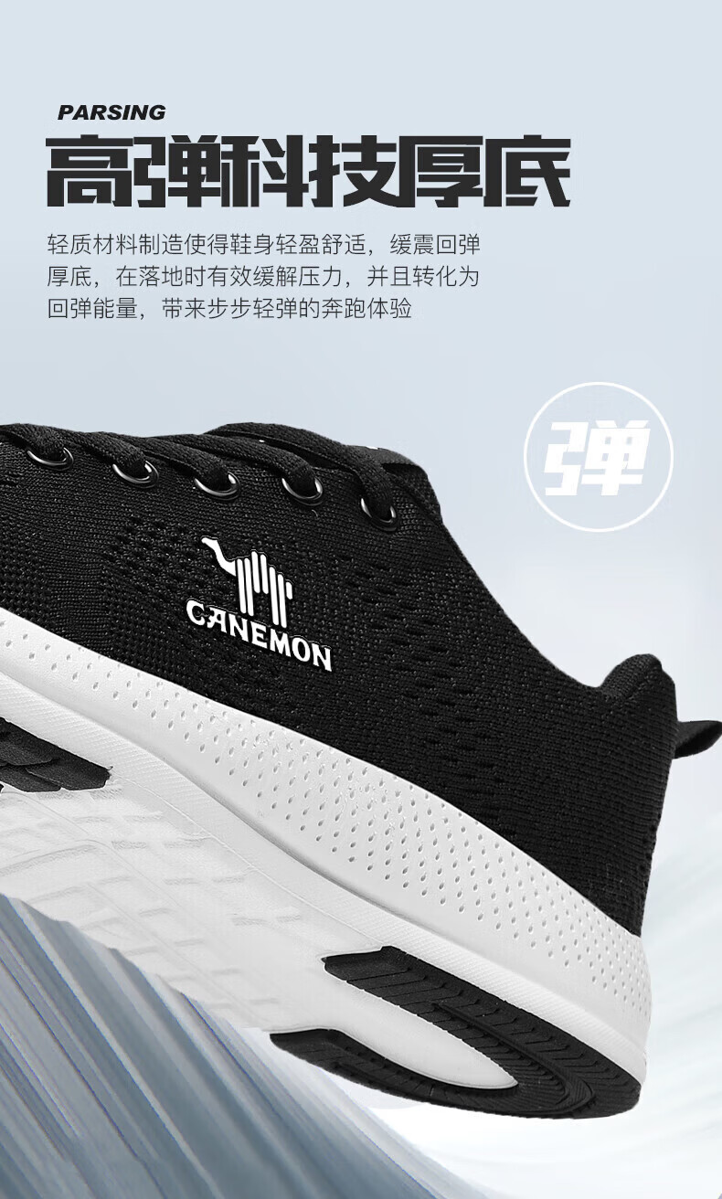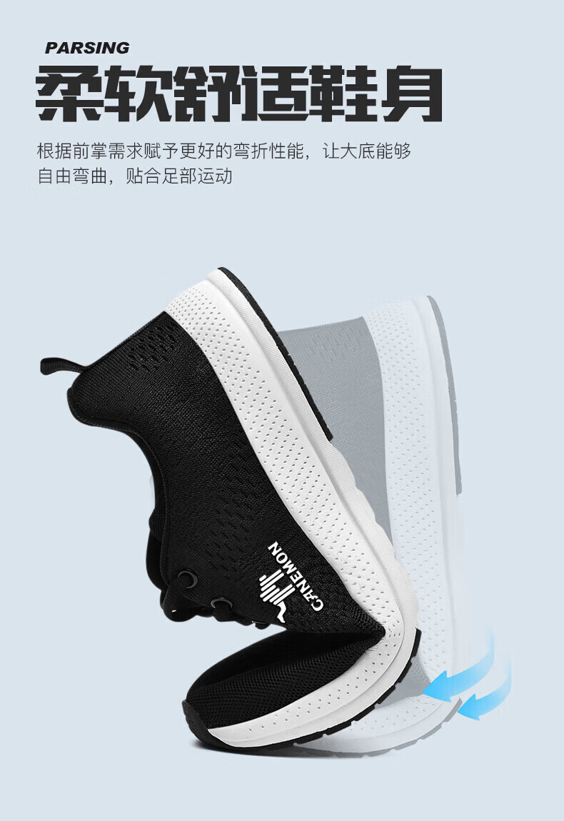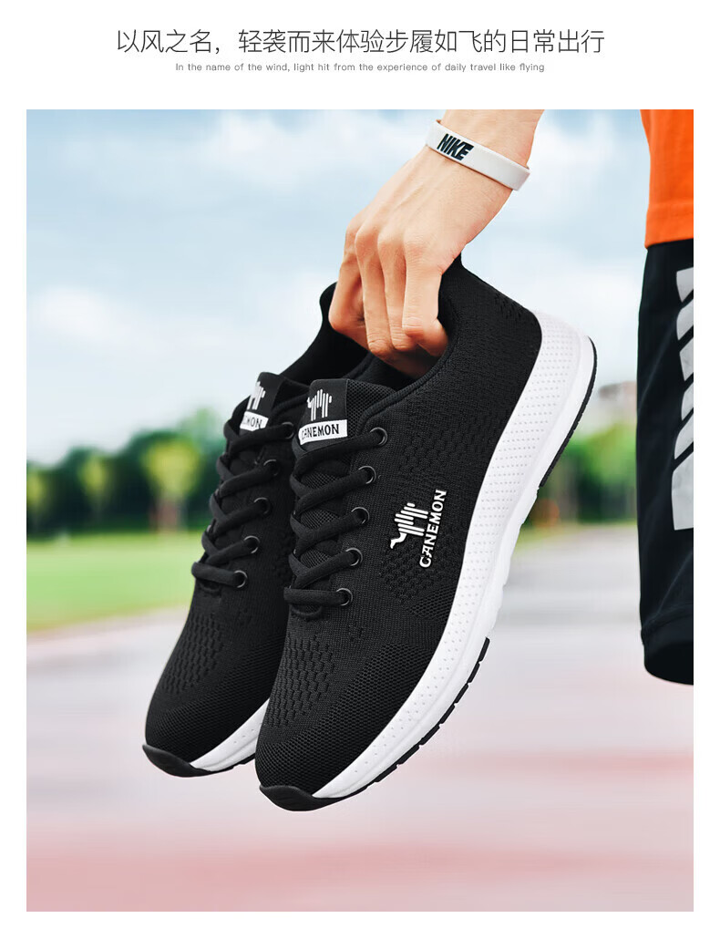 保罗骆驼男鞋夏季透气大码运动鞋男飞织网面休闲鞋子男士轻便防滑旅游鞋男 【黑色】 8810 38 【标准运动鞋码】