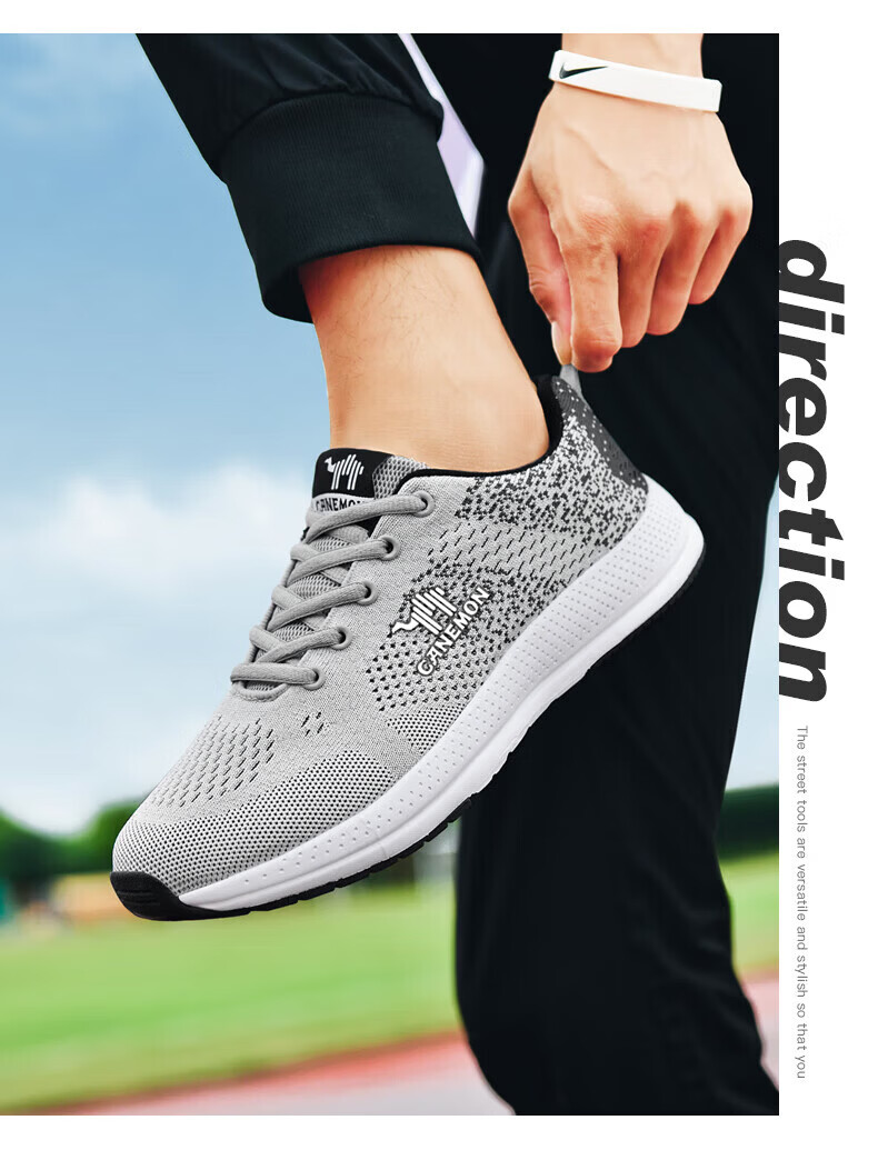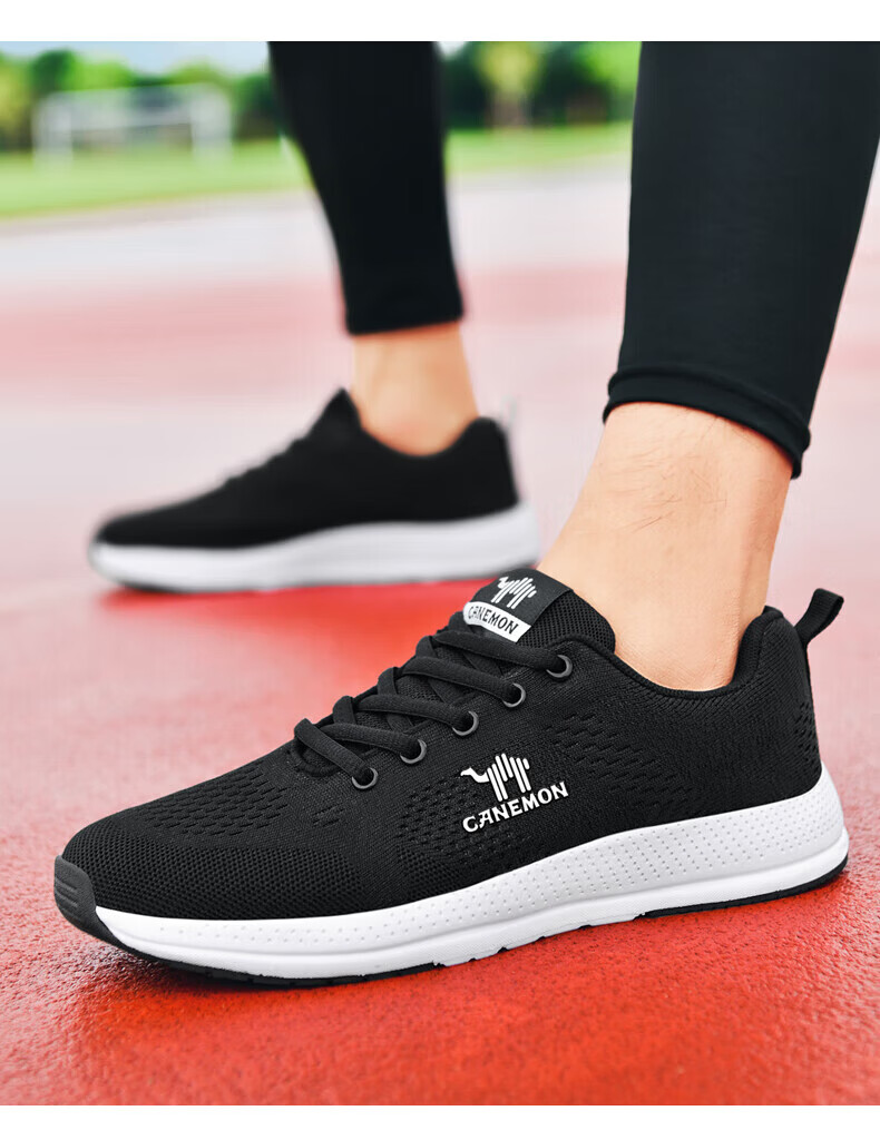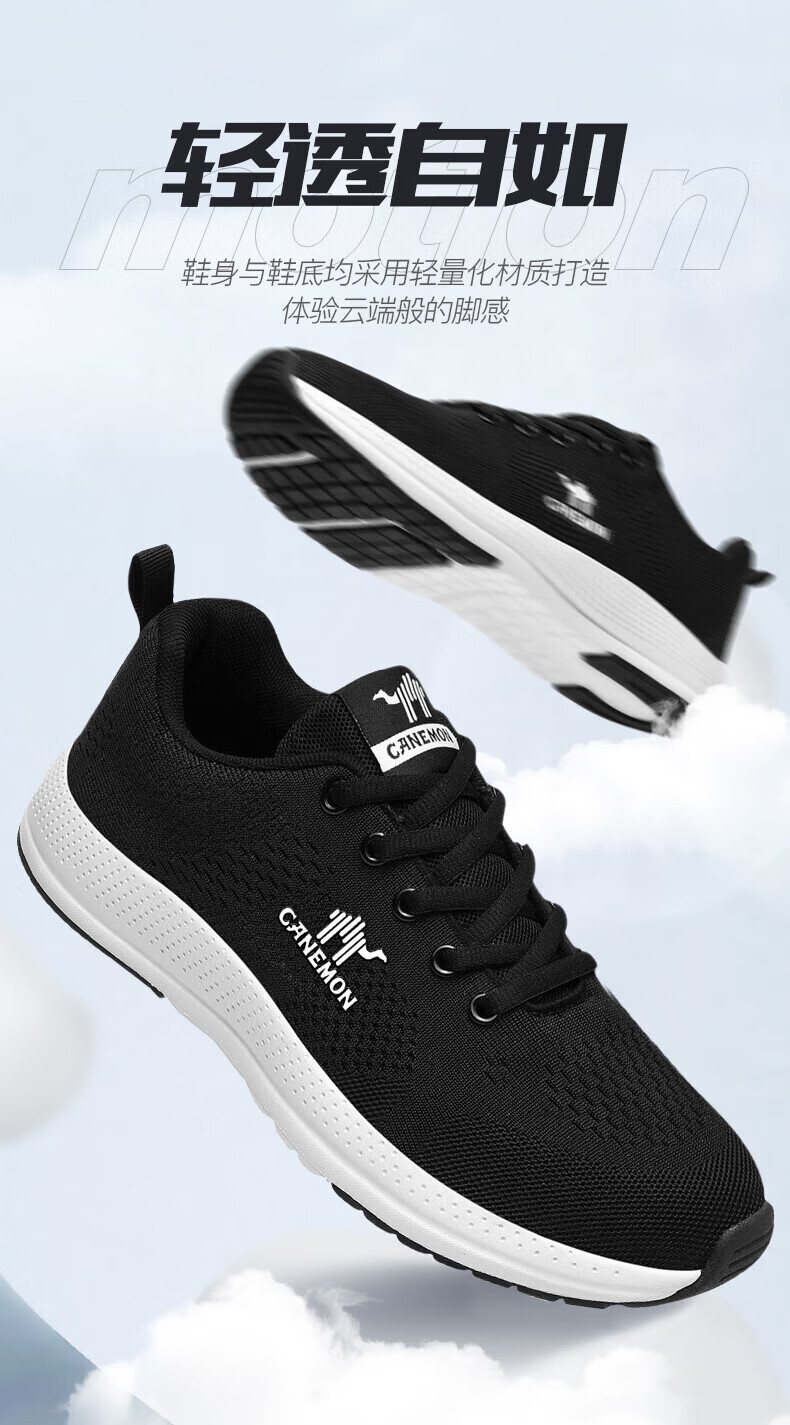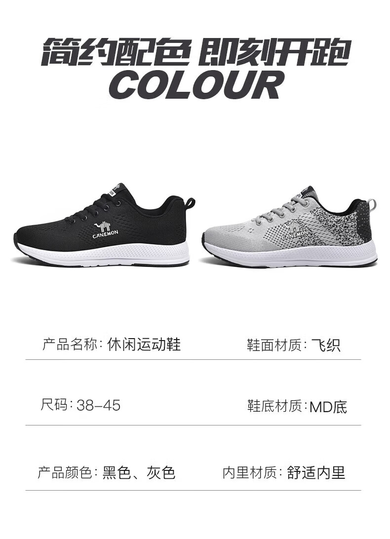 保罗骆驼男鞋夏季透气大码运动鞋男飞织网面休闲鞋子男士轻便防滑旅游鞋男 【黑色】 8810 38 【标准运动鞋码】