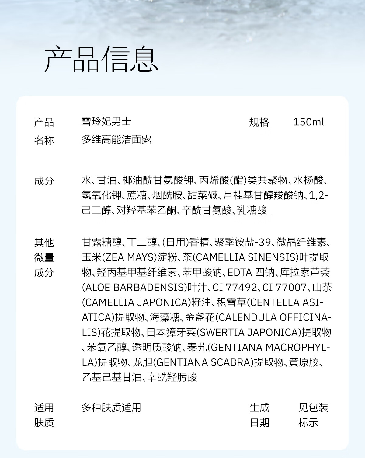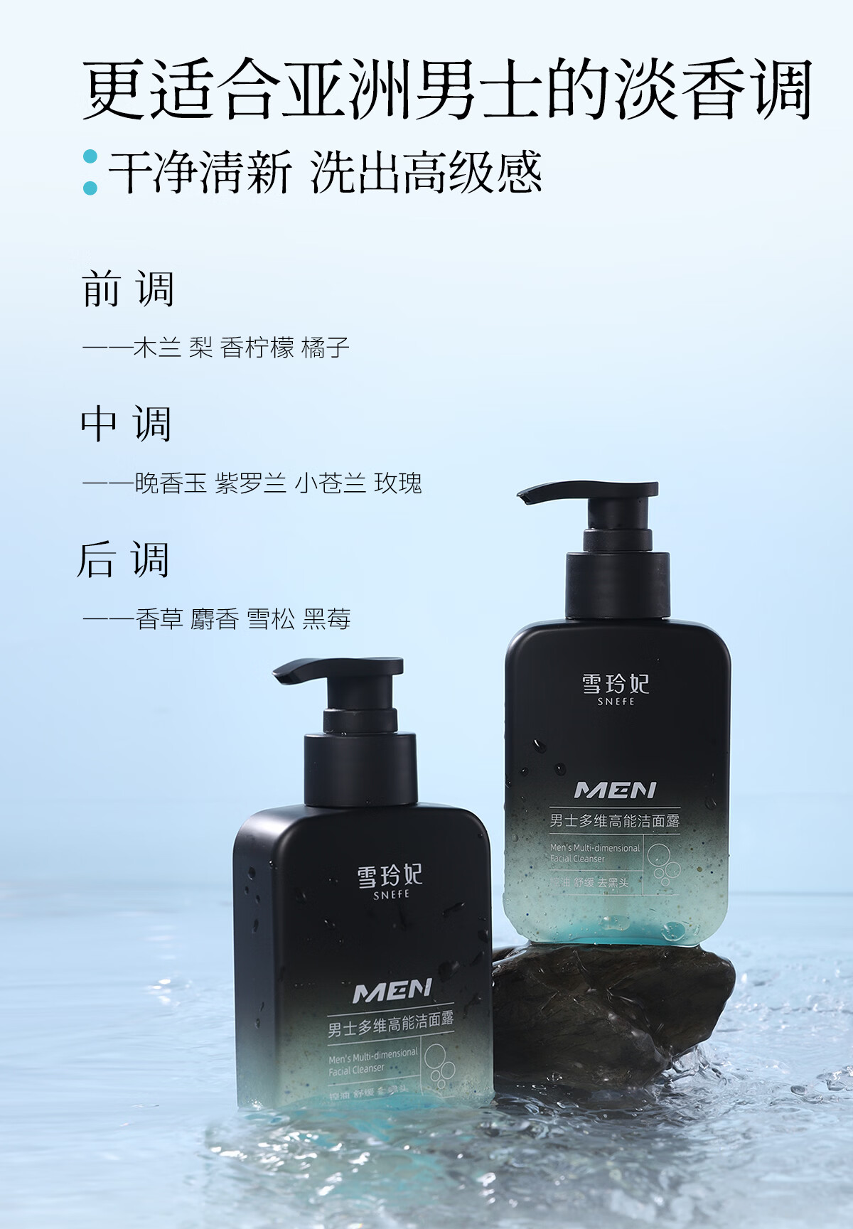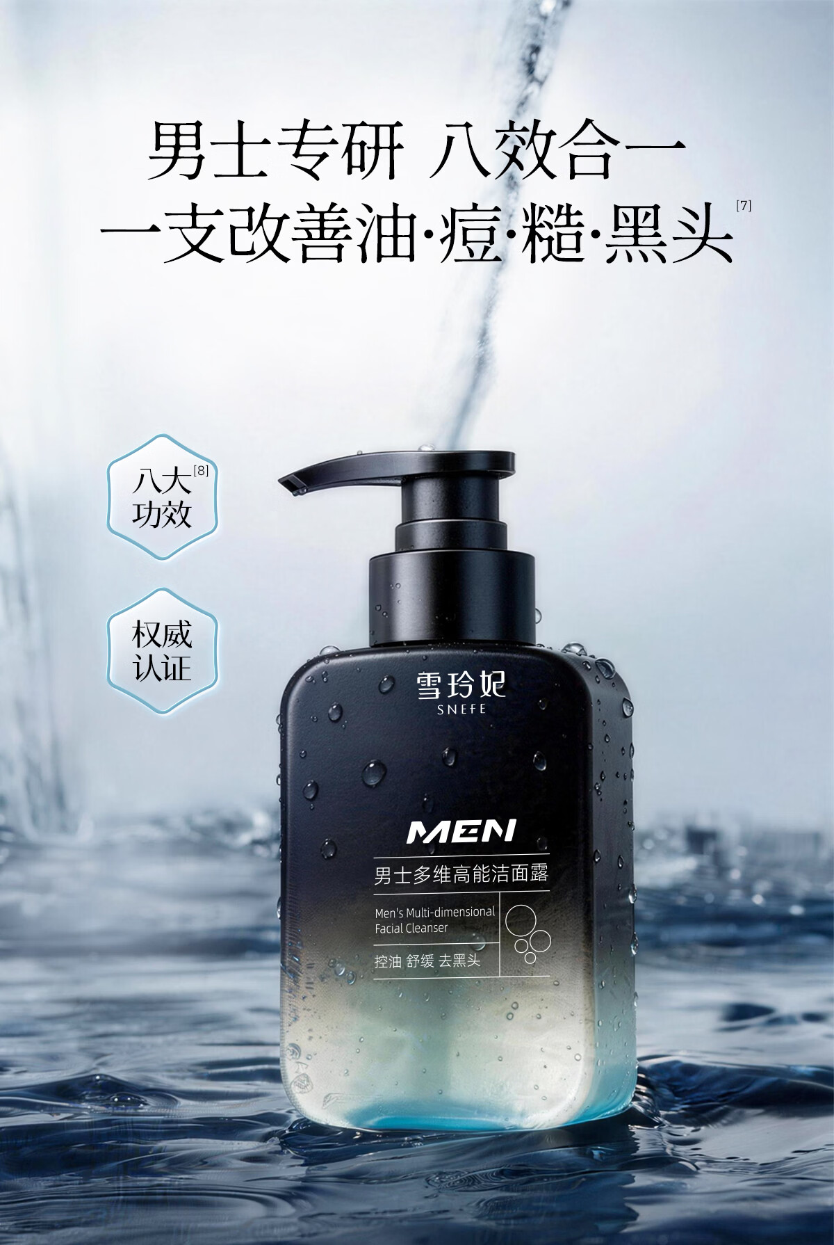 雪玲妃(Xuelinfe)男士多维高能洁面露控油去黑头闭口粉刺舒缓保湿洁面乳