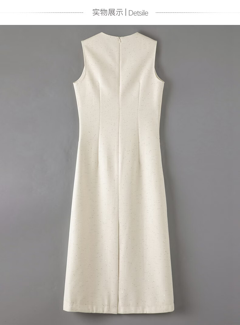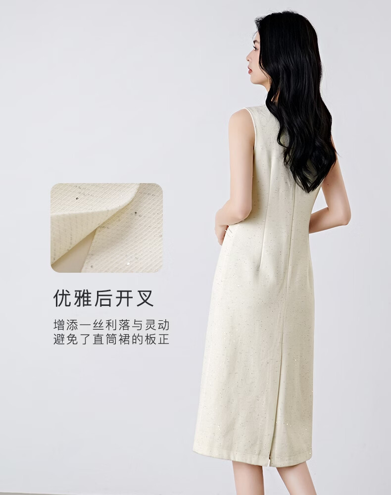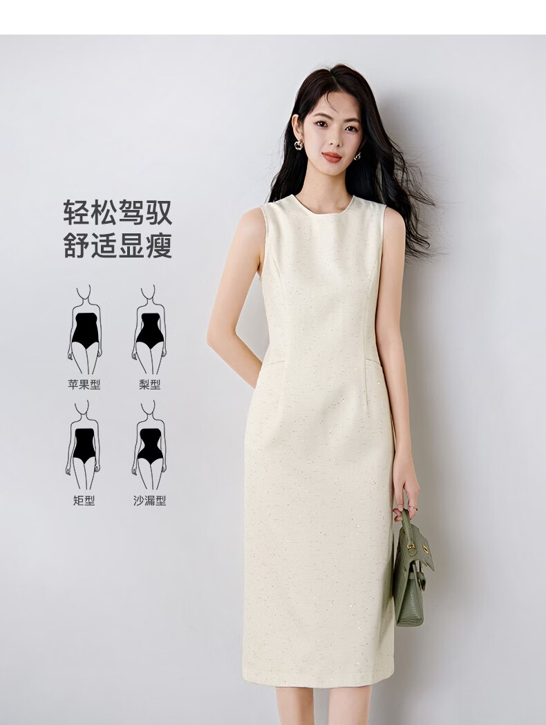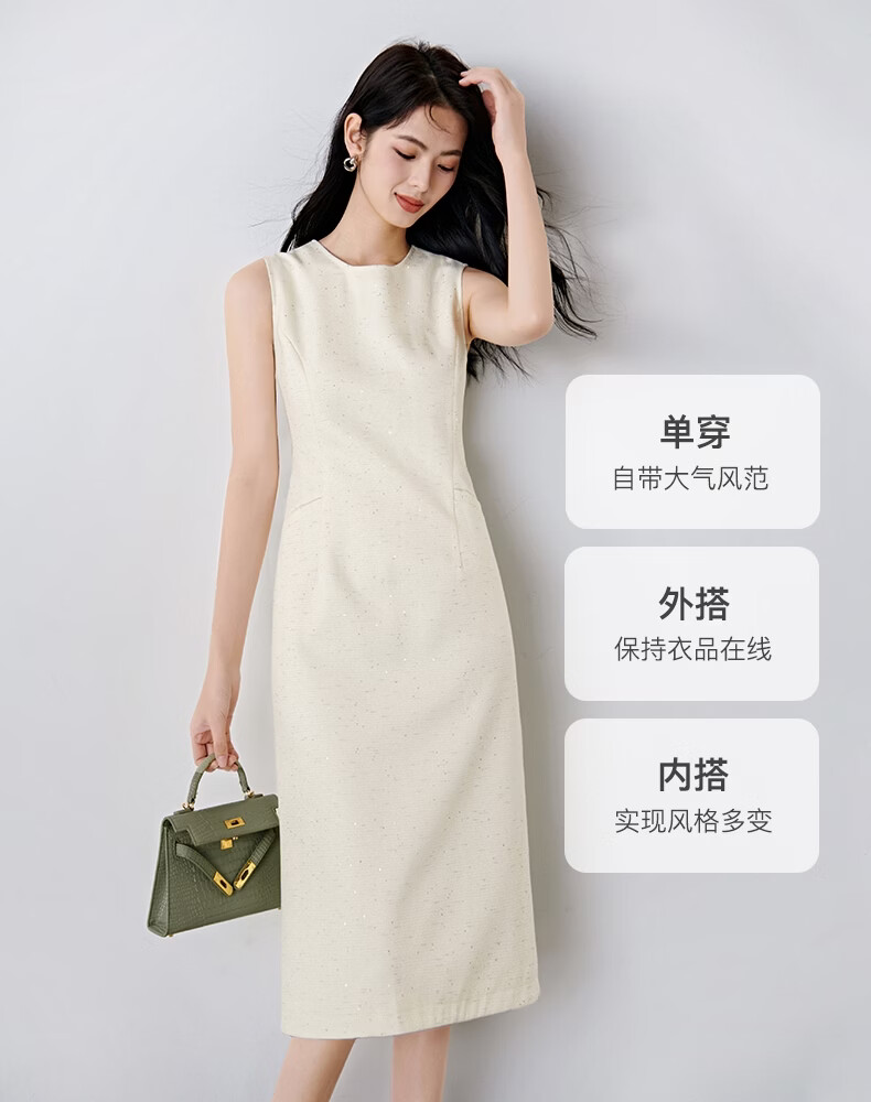 晚白【新品】2026春款正式场合穿搭时尚亮片裙子气质高级感无袖连衣裙 杏色 S