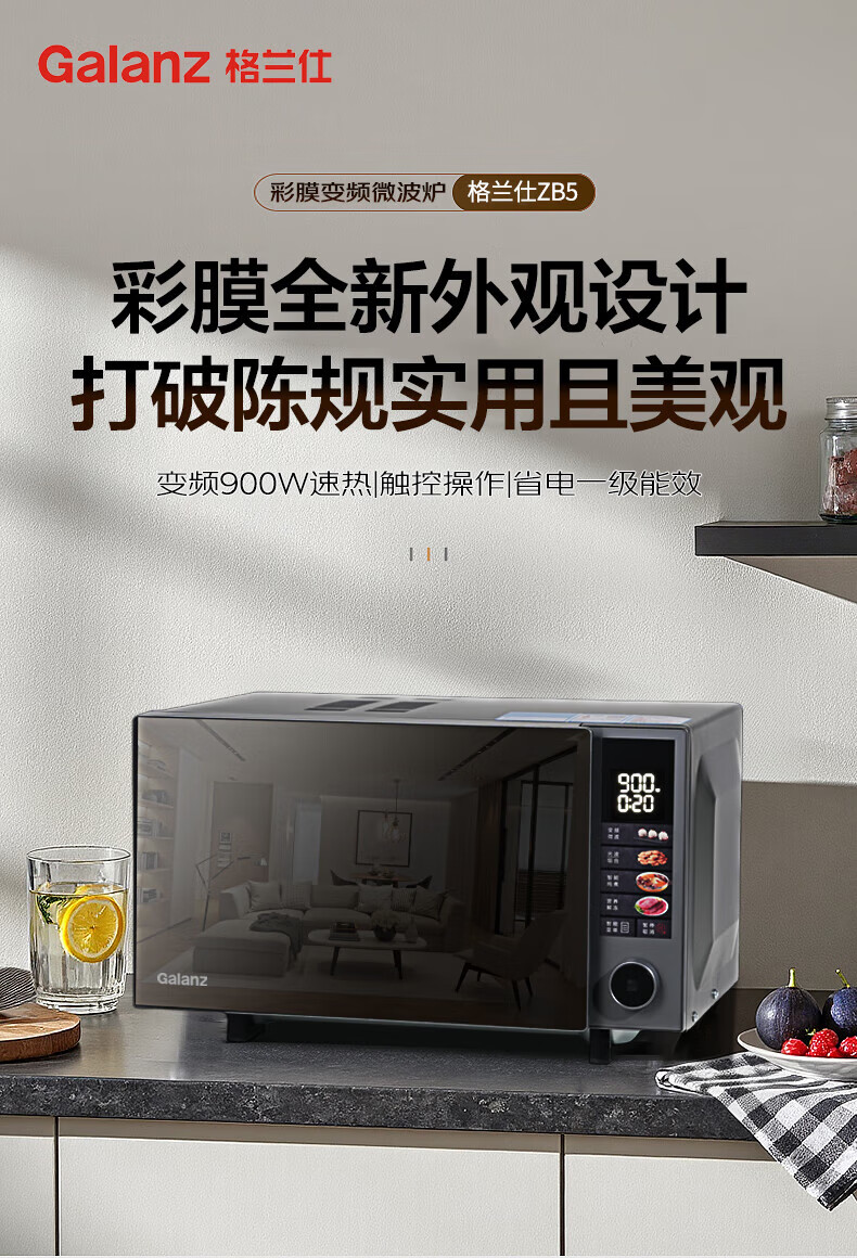 格兰仕(Galanz) 微波炉家用微蒸烤炖一体机 900瓦变频速热 省电1级能效 光波彩膜 四合一 23L大容量平板易清洁ZB5