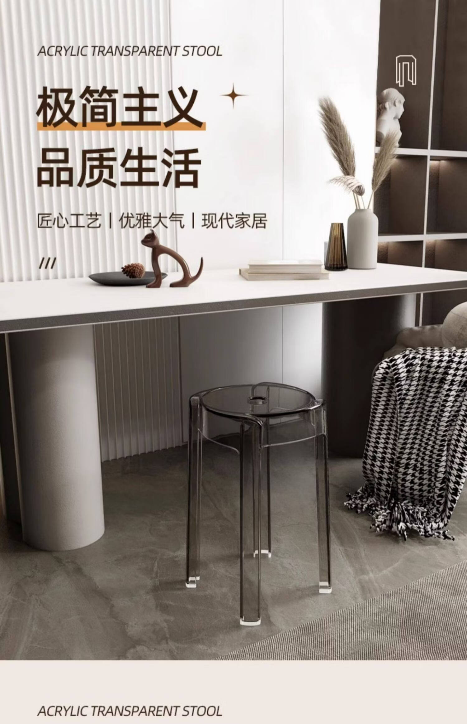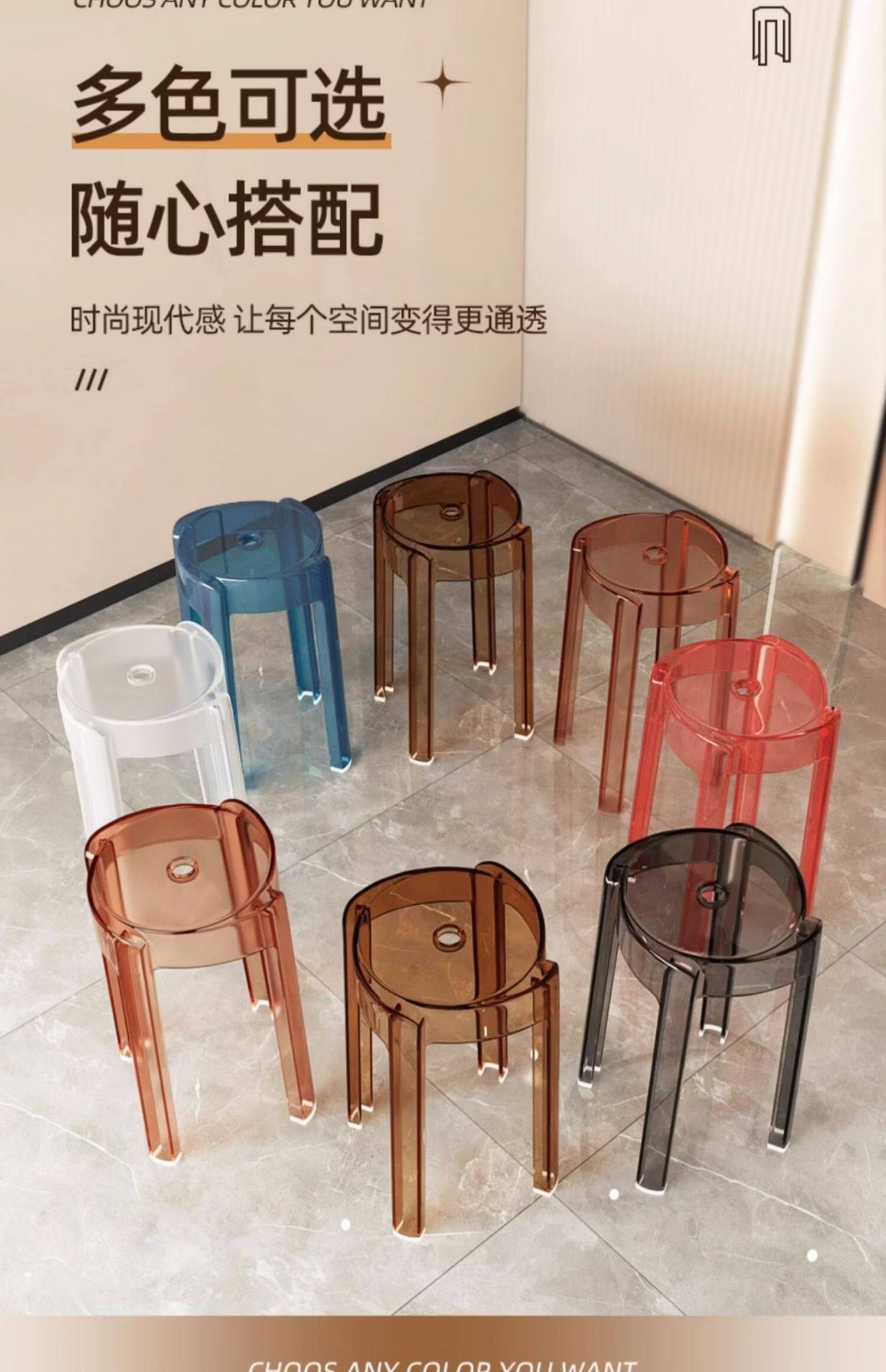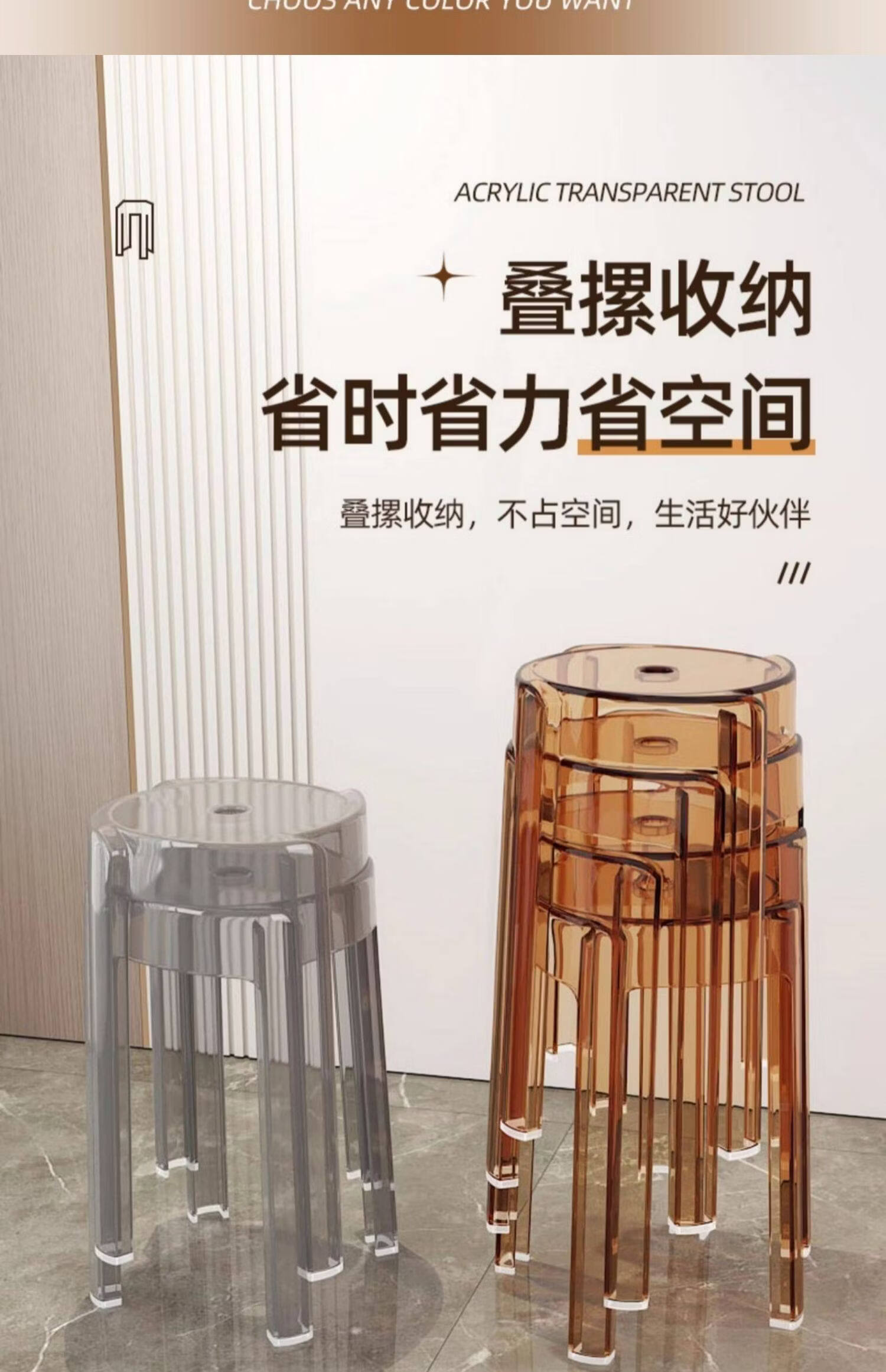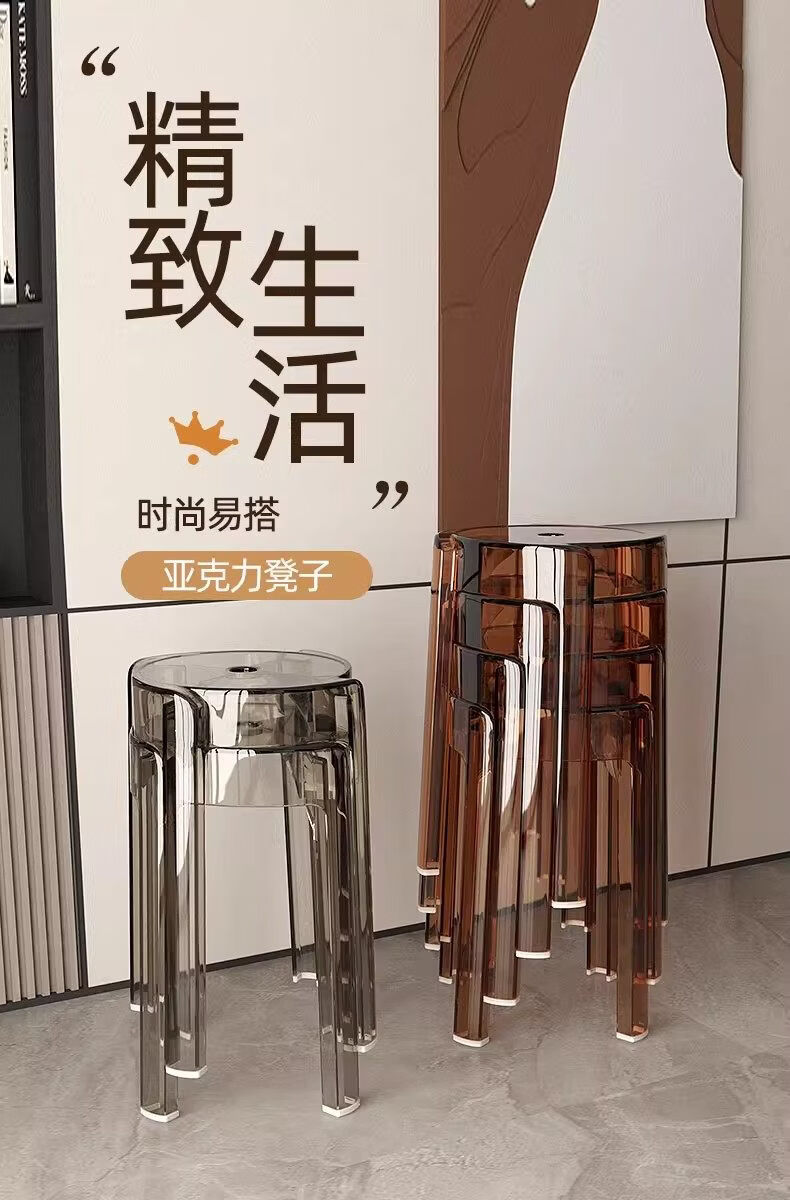 诗元轻奢高级感亚克力凳子可叠放透明高凳椅家用餐桌备用塑料水晶圆凳 单把-透明色【1.45kg稳固不摇晃 可叠摞收纳】