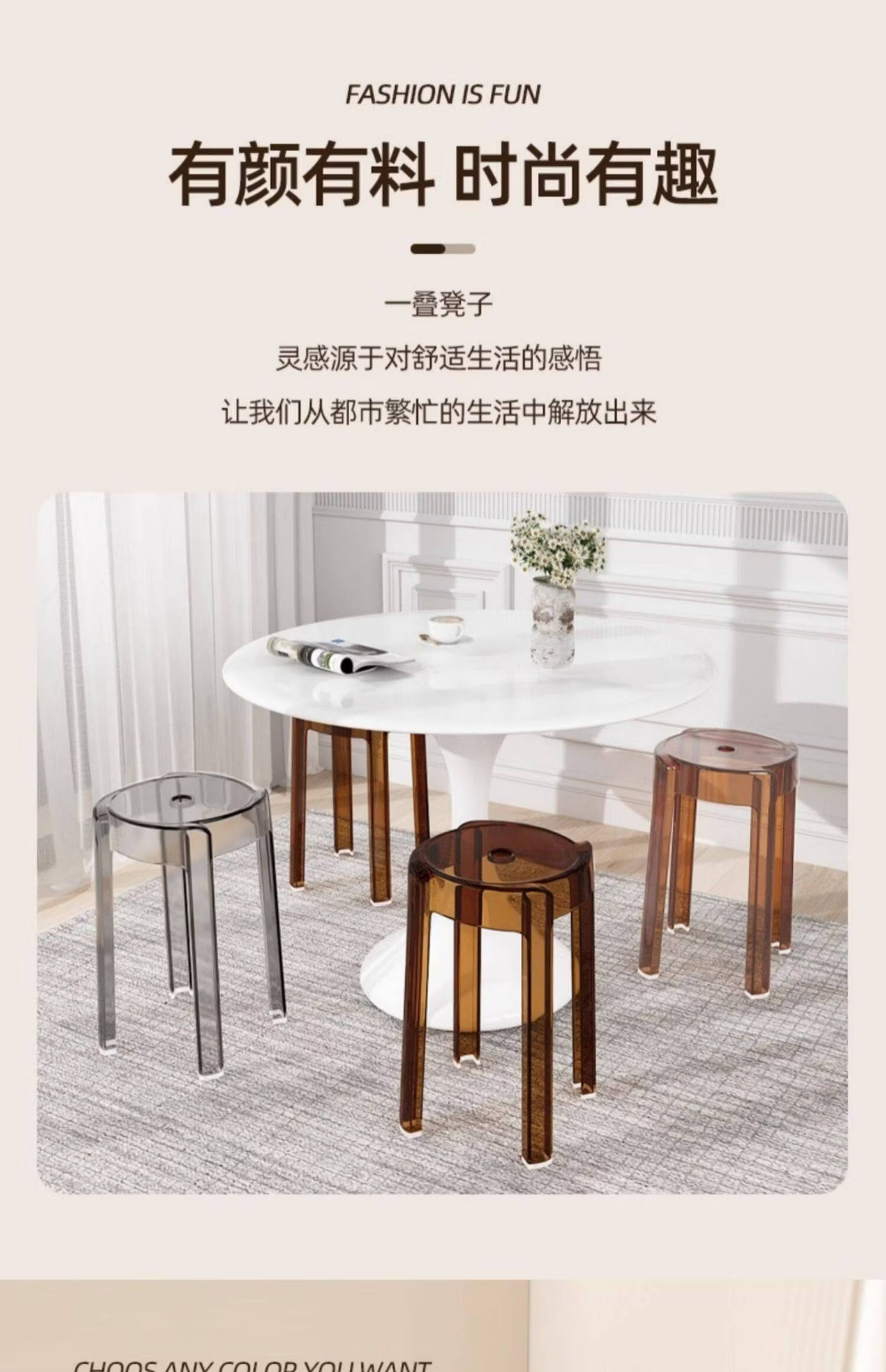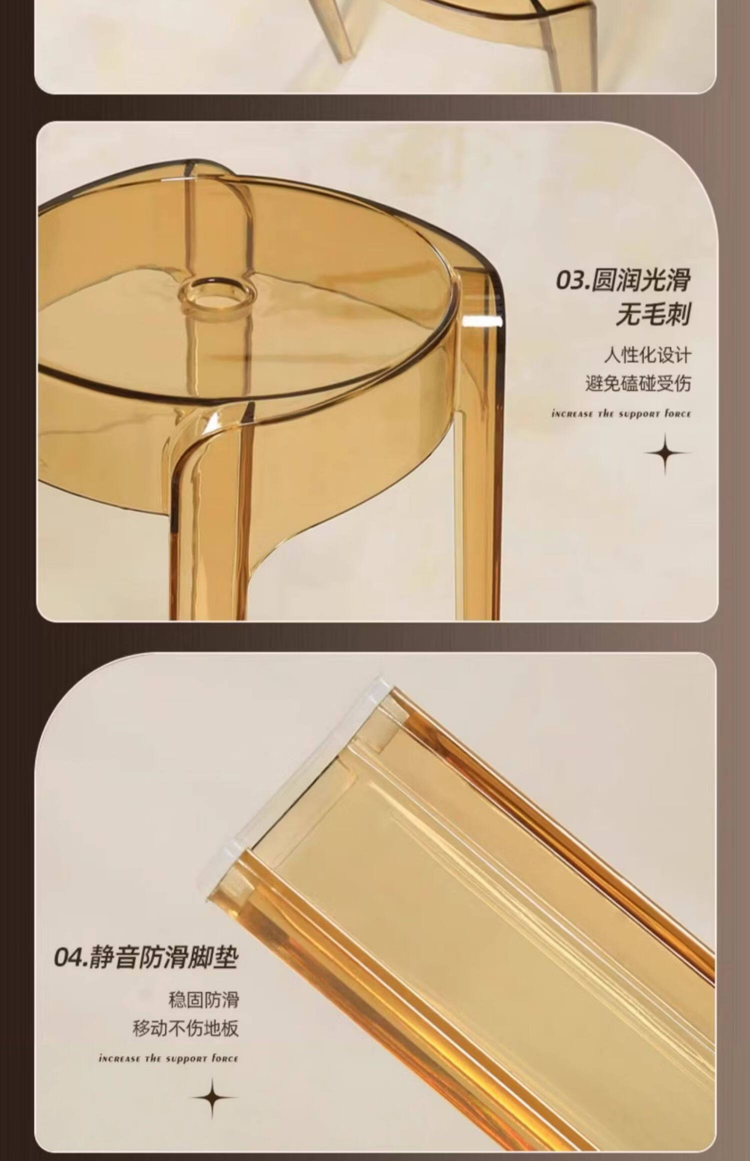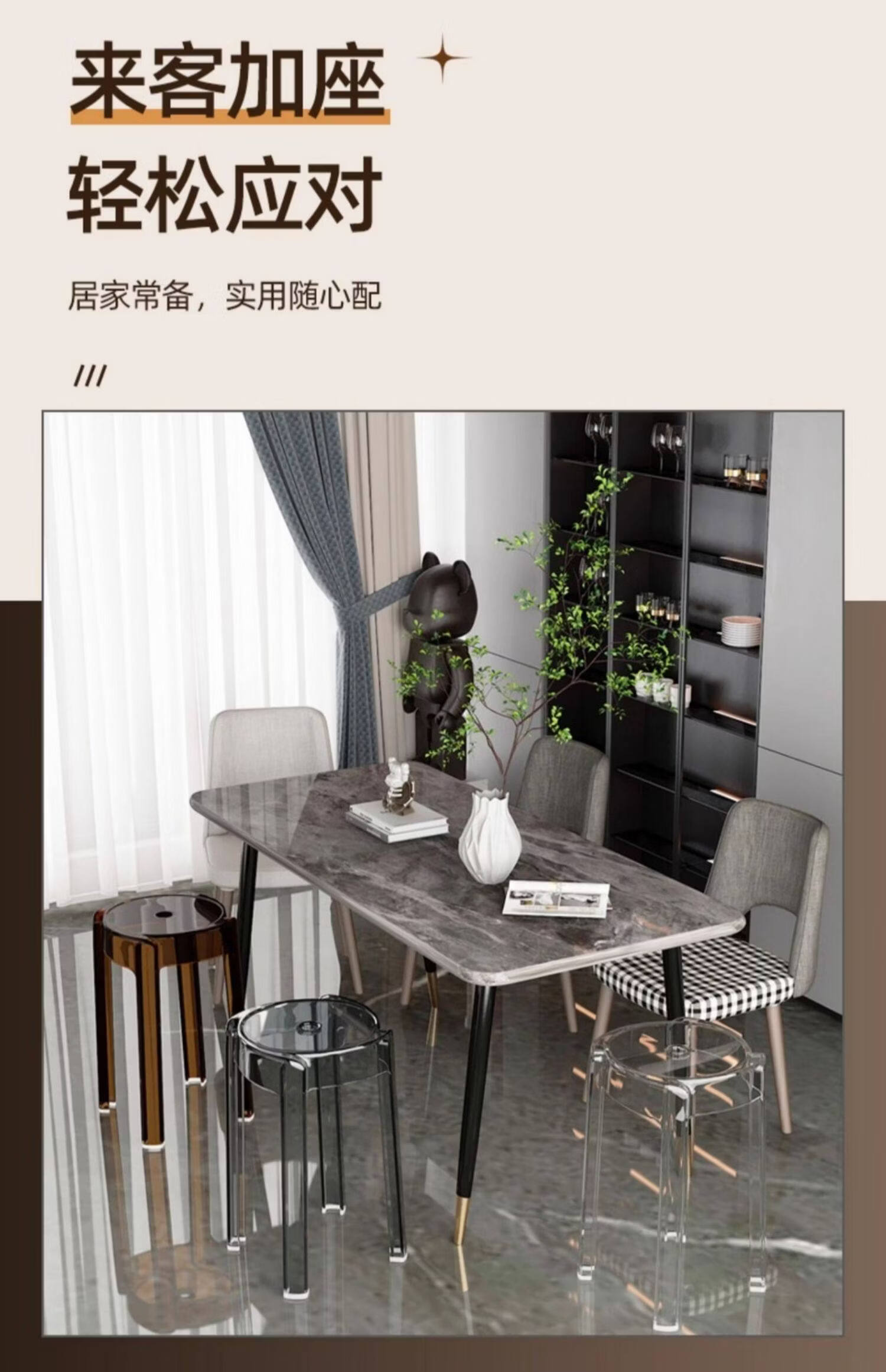 诗元轻奢高级感亚克力凳子可叠放透明高凳椅家用餐桌备用塑料水晶圆凳 单把-透明色【1.45kg稳固不摇晃 可叠摞收纳】