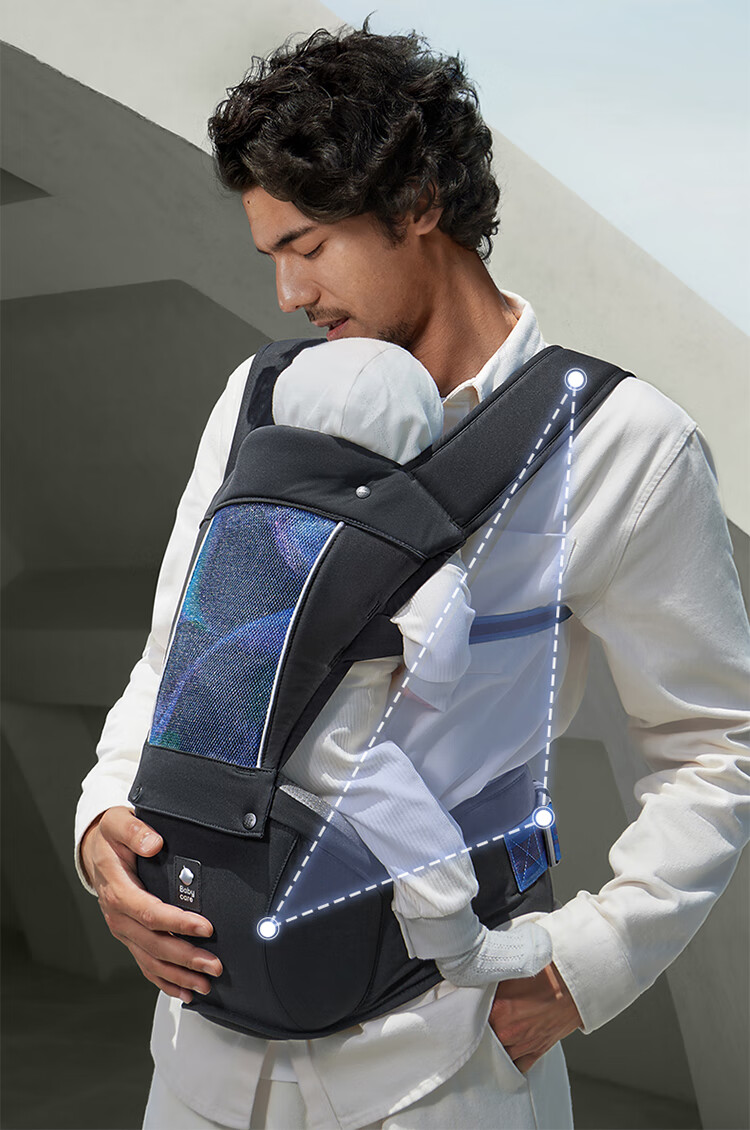 babycare腰凳婴儿背带宝宝外出前后抱娃神器Frap旋柄四季通用透气极地炫光