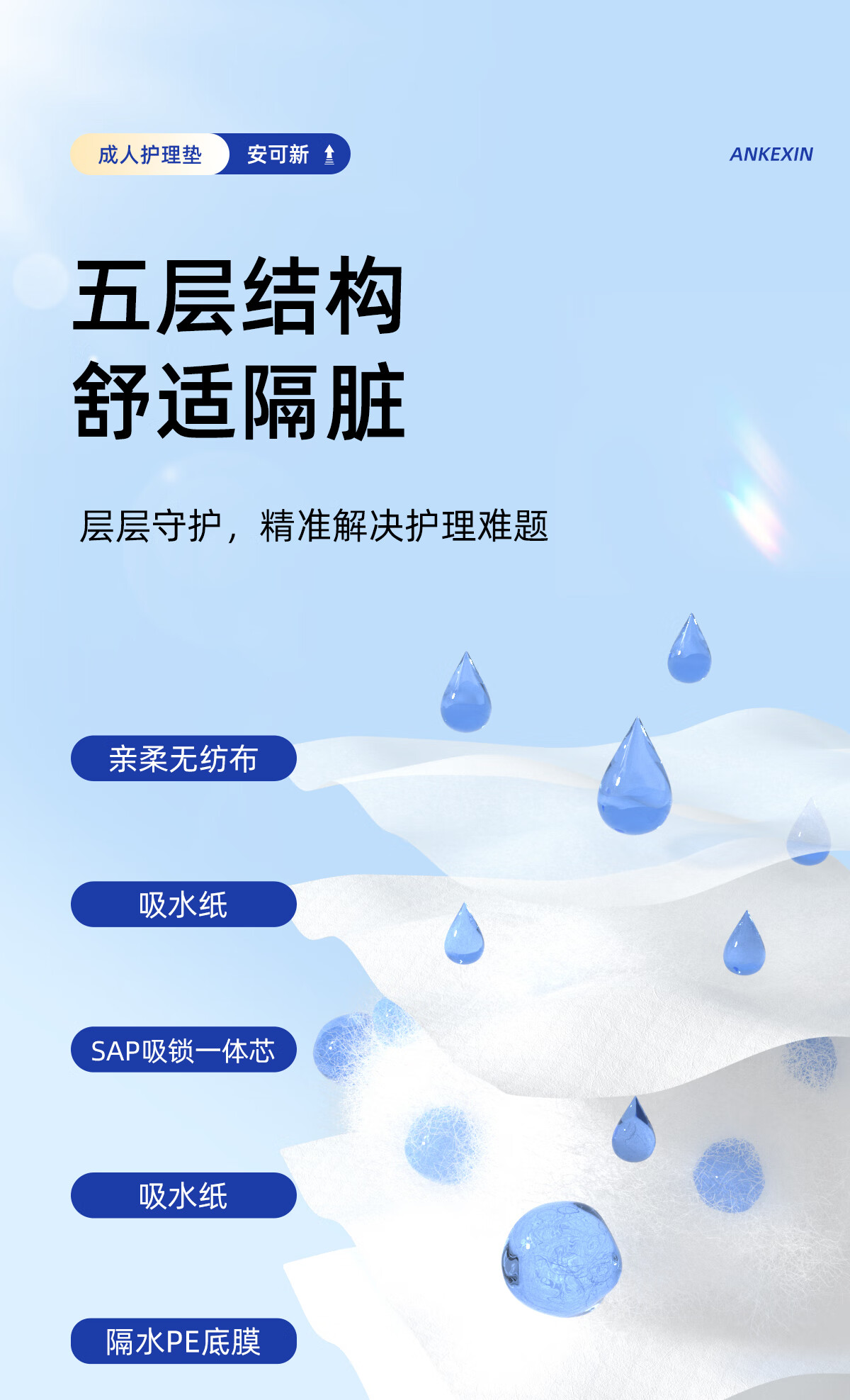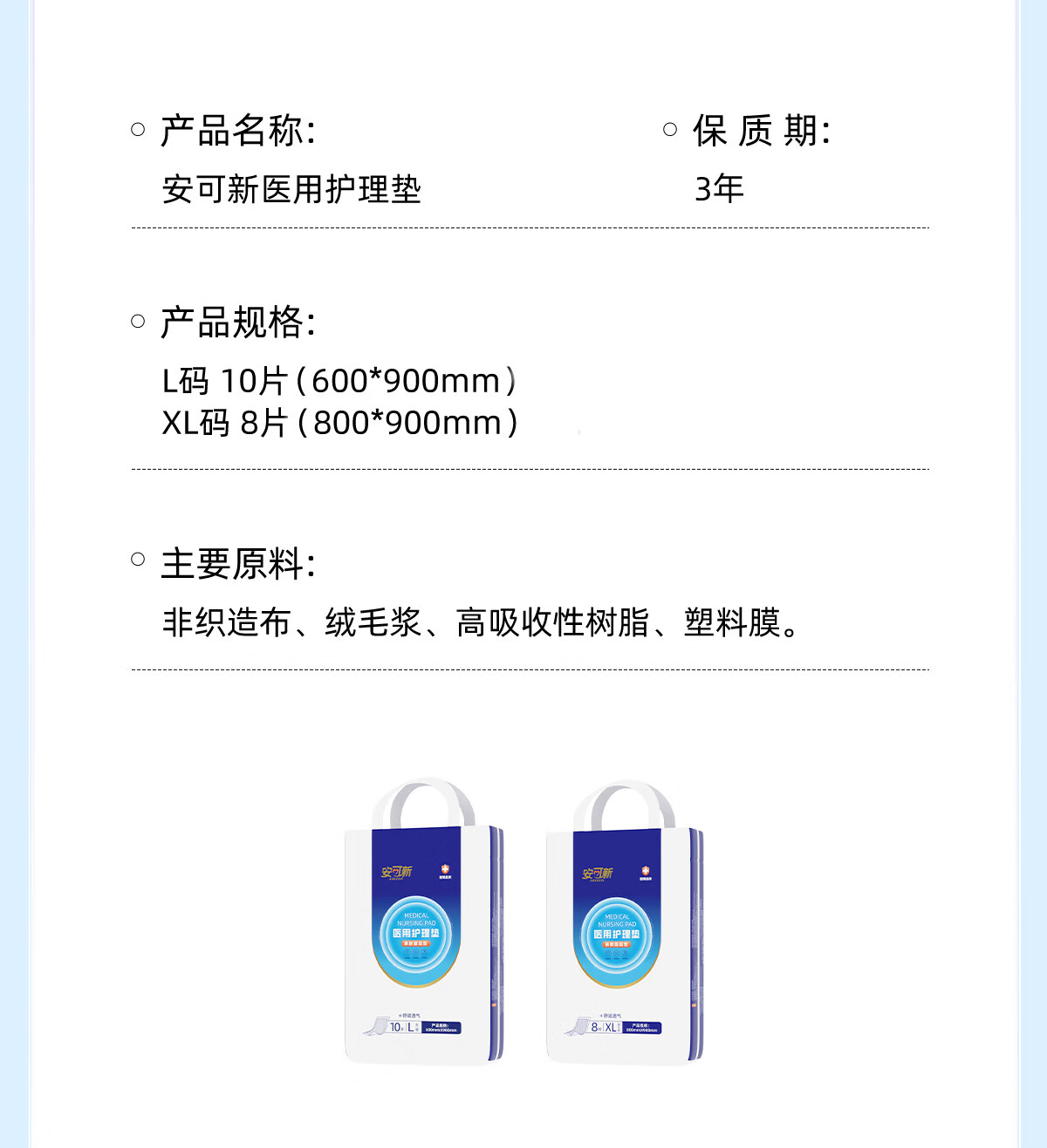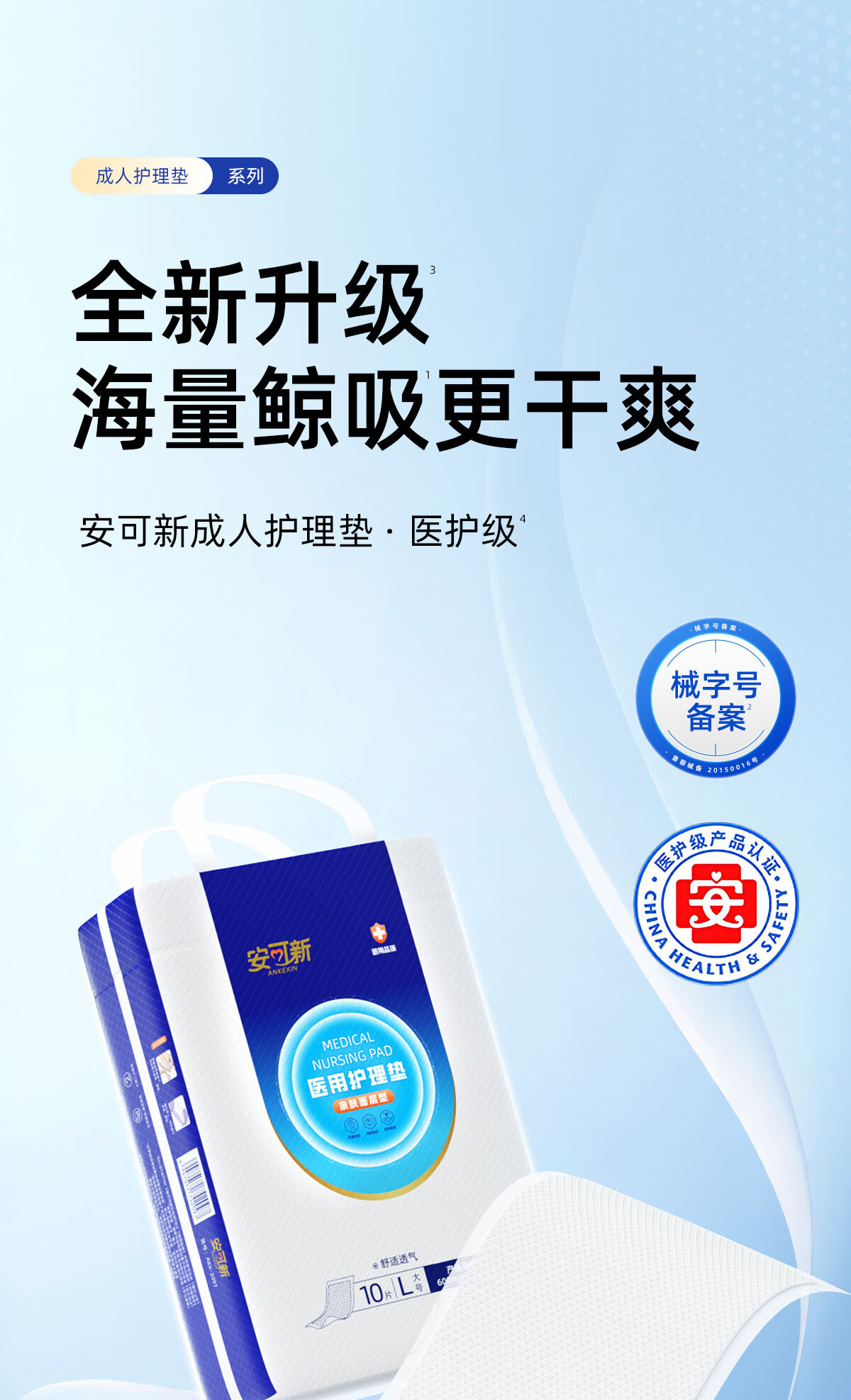 安可新成人医用护理垫60x90cm 10片隔尿垫一次性产褥垫姨妈垫