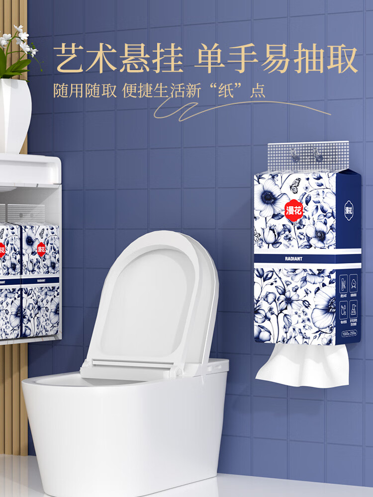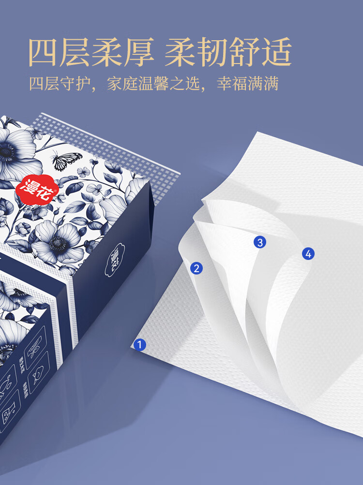 青花系列1000张原木挂式抽纸大包纸巾卫生纸4层加厚漫花抽纸 4层 1000张 * 2提