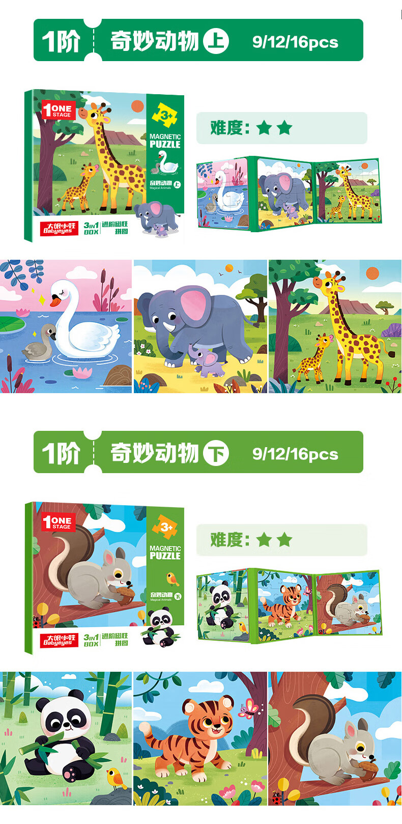 大眼小娃儿童磁力拼图1-3-6岁宝宝磁吸益智玩具2岁男女孩开学礼物城市汽车