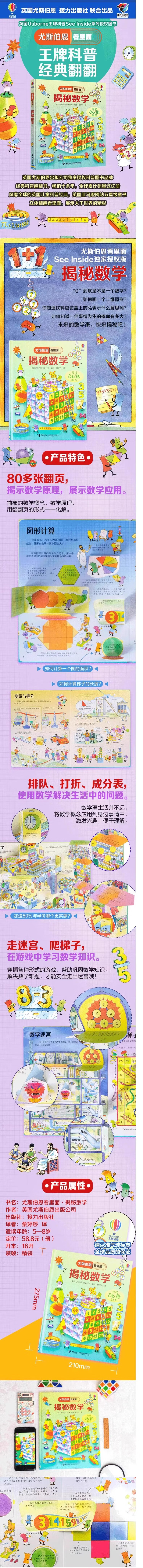 揭秘数学 尤斯伯恩看里面系列 揭秘系列翻翻书3-6-8-12岁小学生一二三四五六年级儿童启蒙认知绘本幼儿益智科学探索 浙江新华正版 揭秘数学