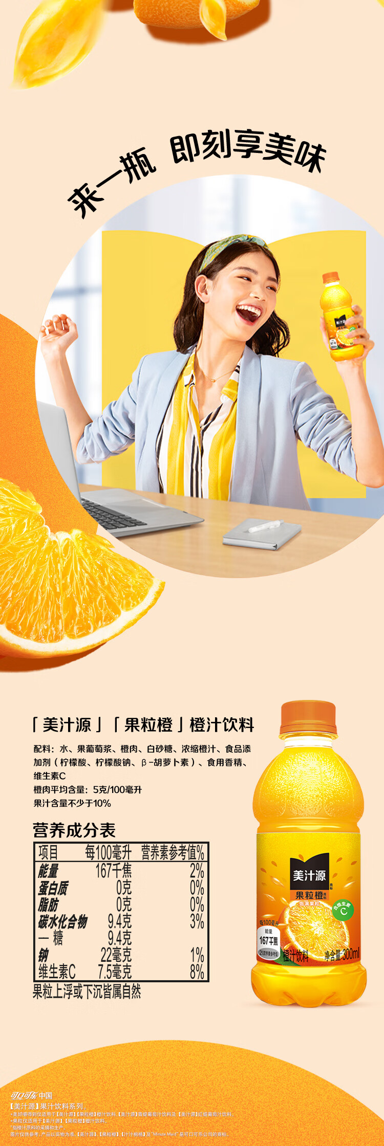 可口可乐(Coca-Cola)美汁源 Minute Maid 果粒橙 橙汁果汁饮料 300ml*12瓶 年货