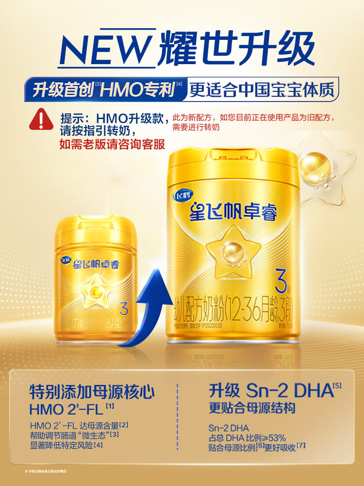 飞鹤星飞帆卓睿 幼儿配方奶粉3段(1-3岁)750g 乳铁蛋白【老爸抽检】