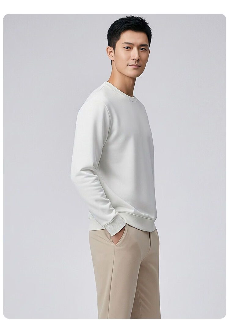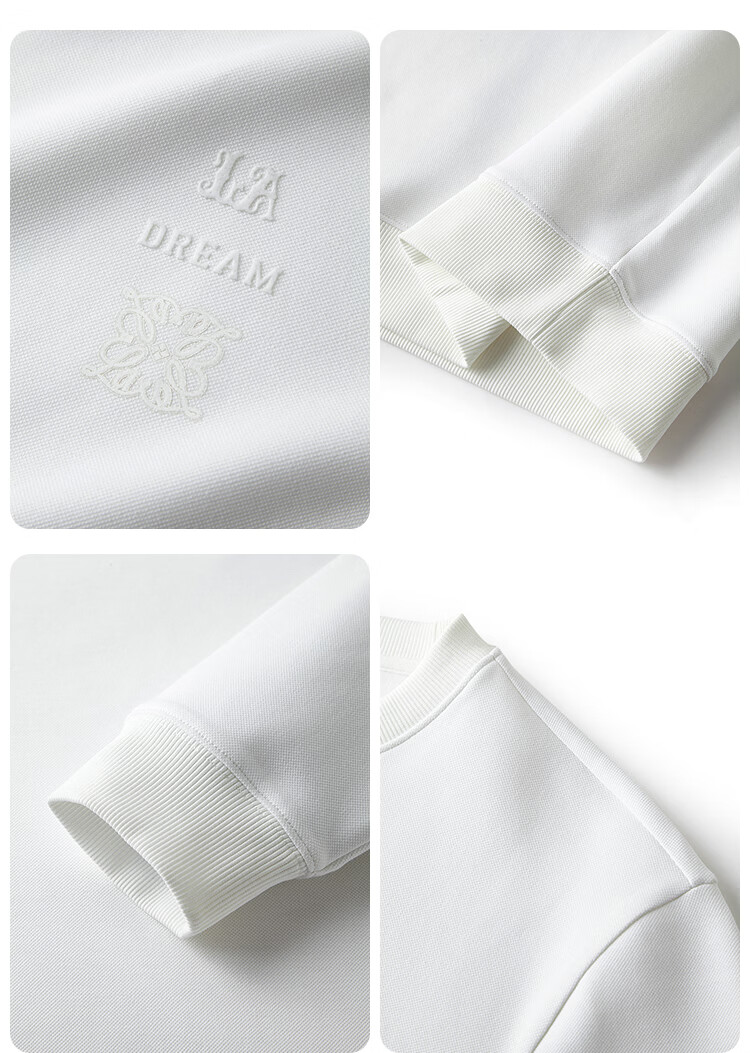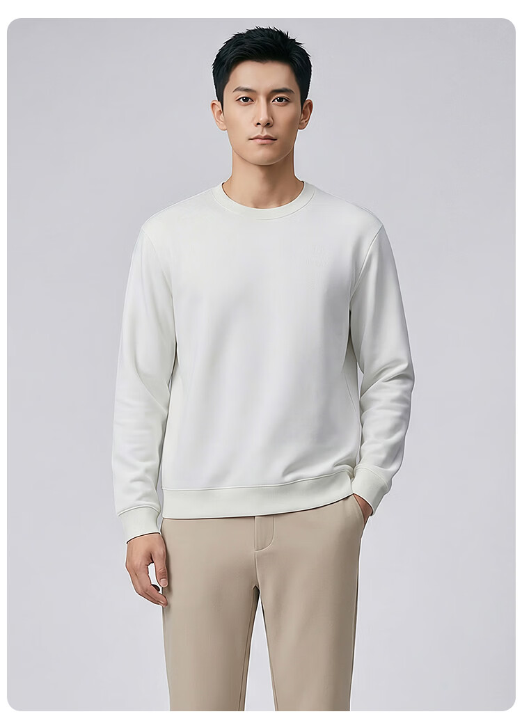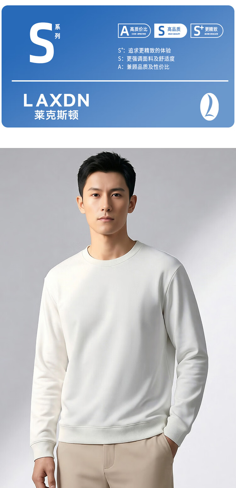 莱克斯顿(laxdn)卫衣男春秋双面珠地柔软舒适弹力压印logo纯色简约休闲上衣男装 本白 S