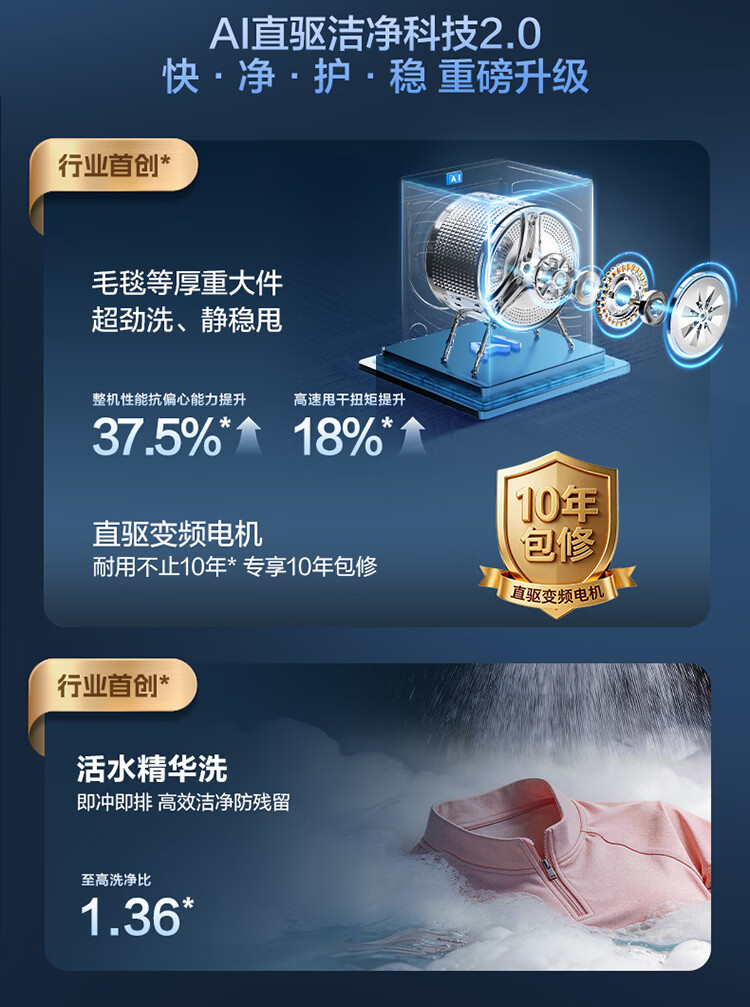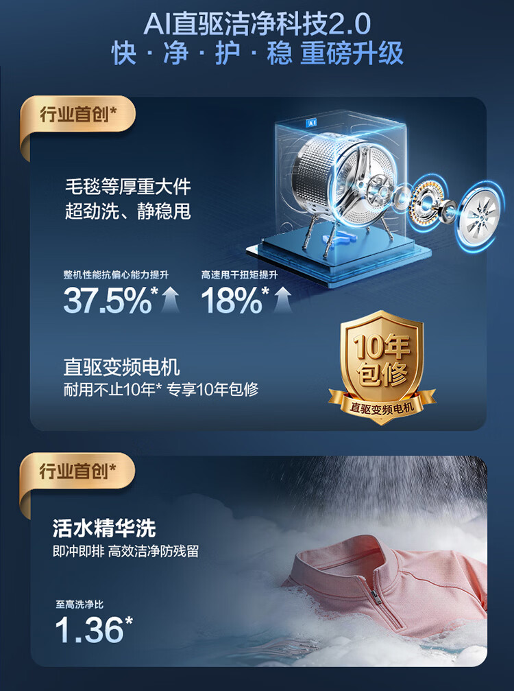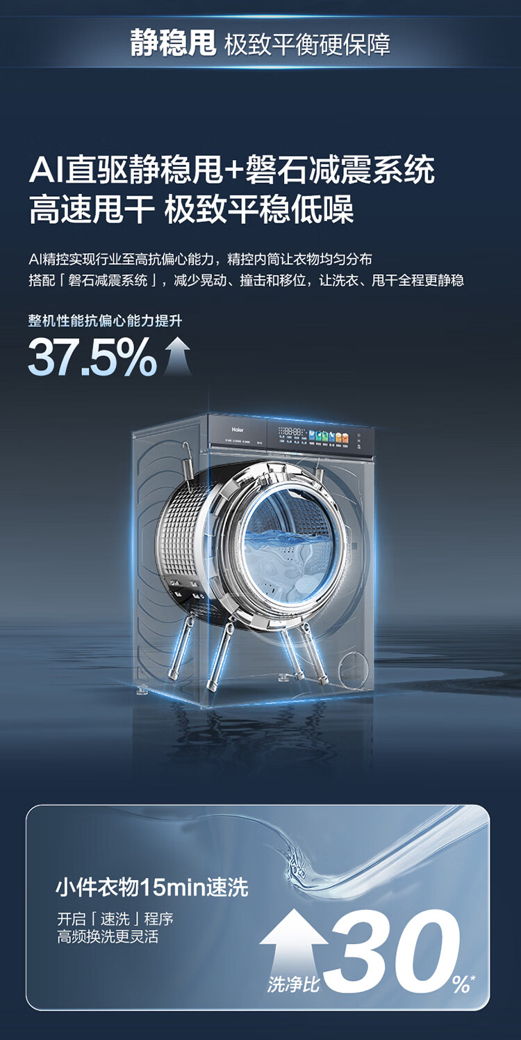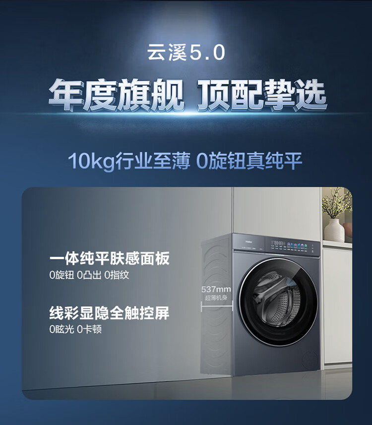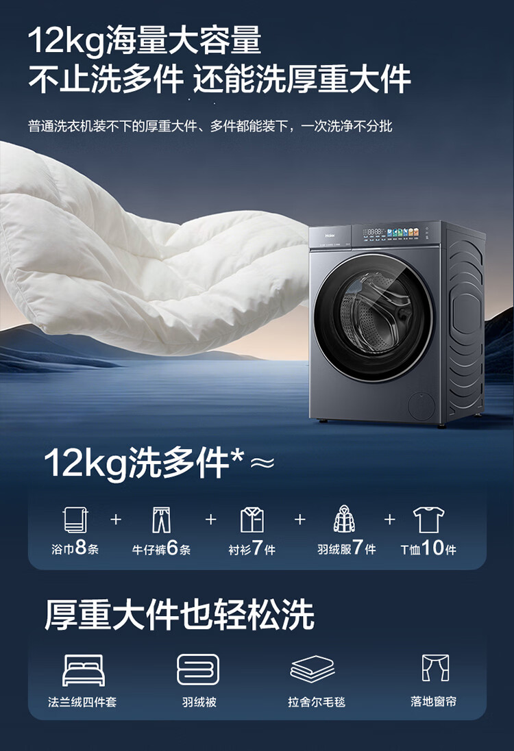 海尔(Haier)【26年重磅新品云溪5.0 】洗衣机滚筒全自动10KG/12KG家用大容量1.28高洗净比AI直驱双效除菌 云溪5.0机皇 滚筒 10kg