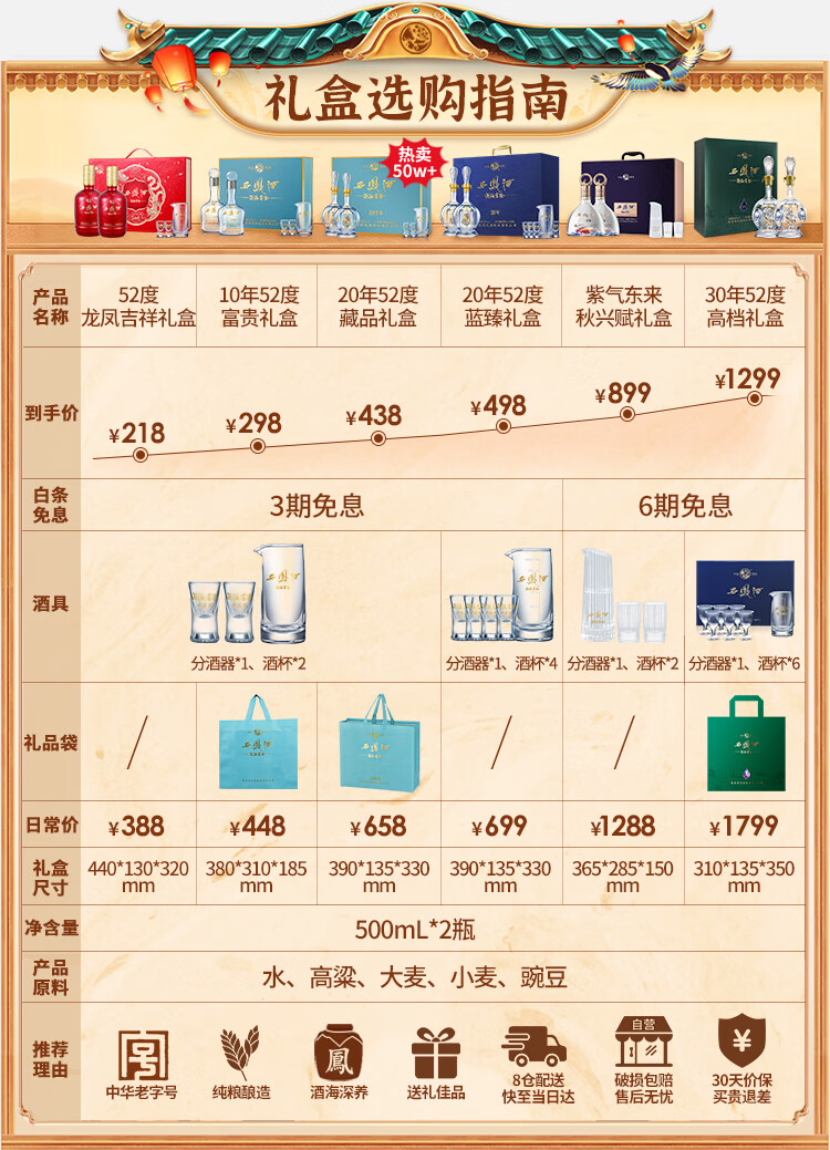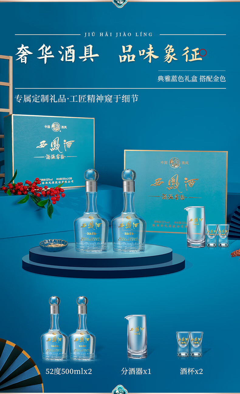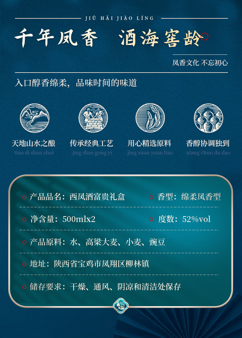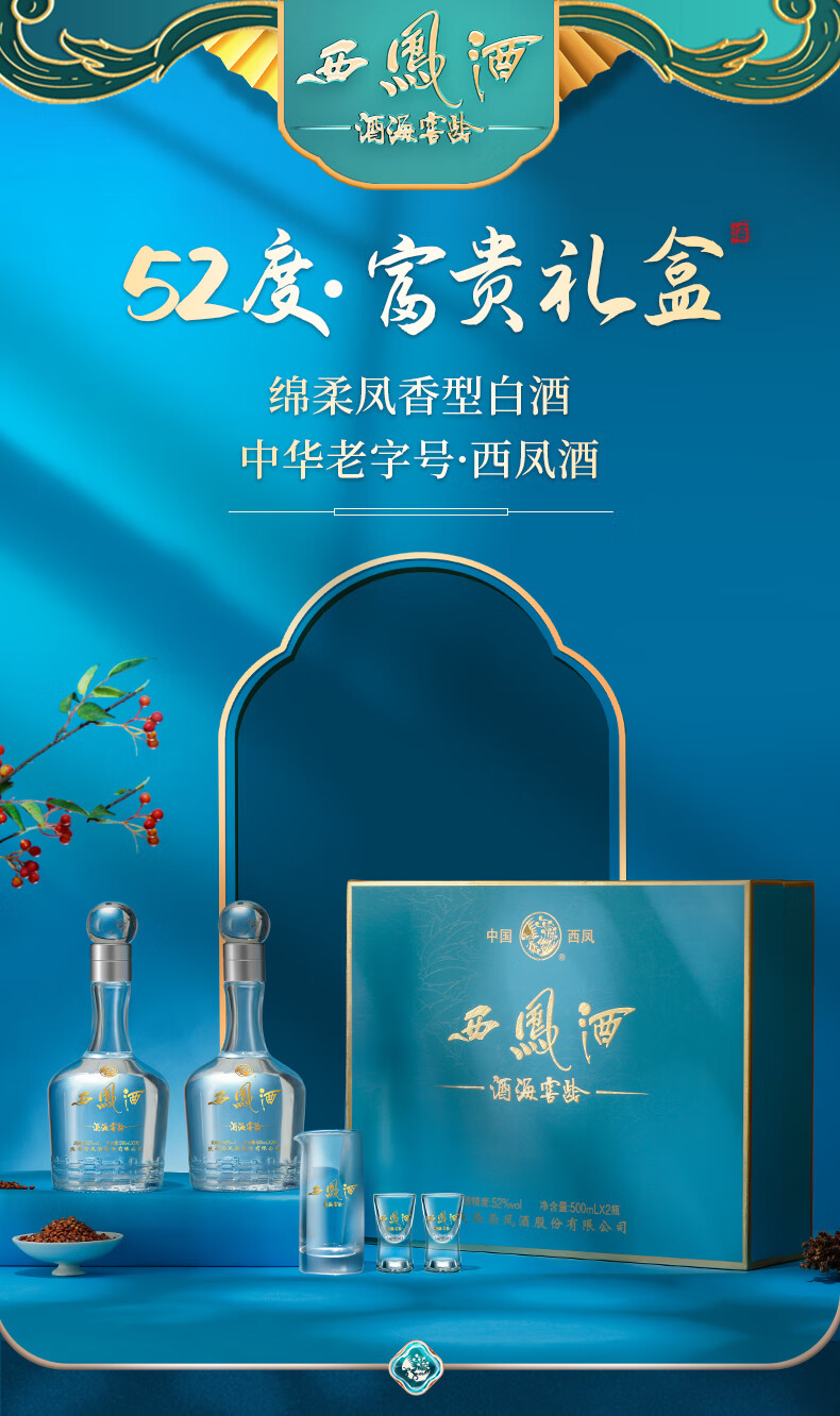 西凤酒 10年52度富贵礼盒 500mL*2瓶 凤香型白酒 婚庆喜宴请自饮送礼