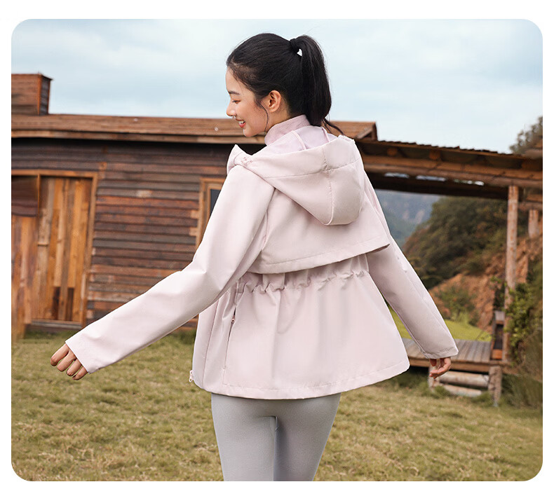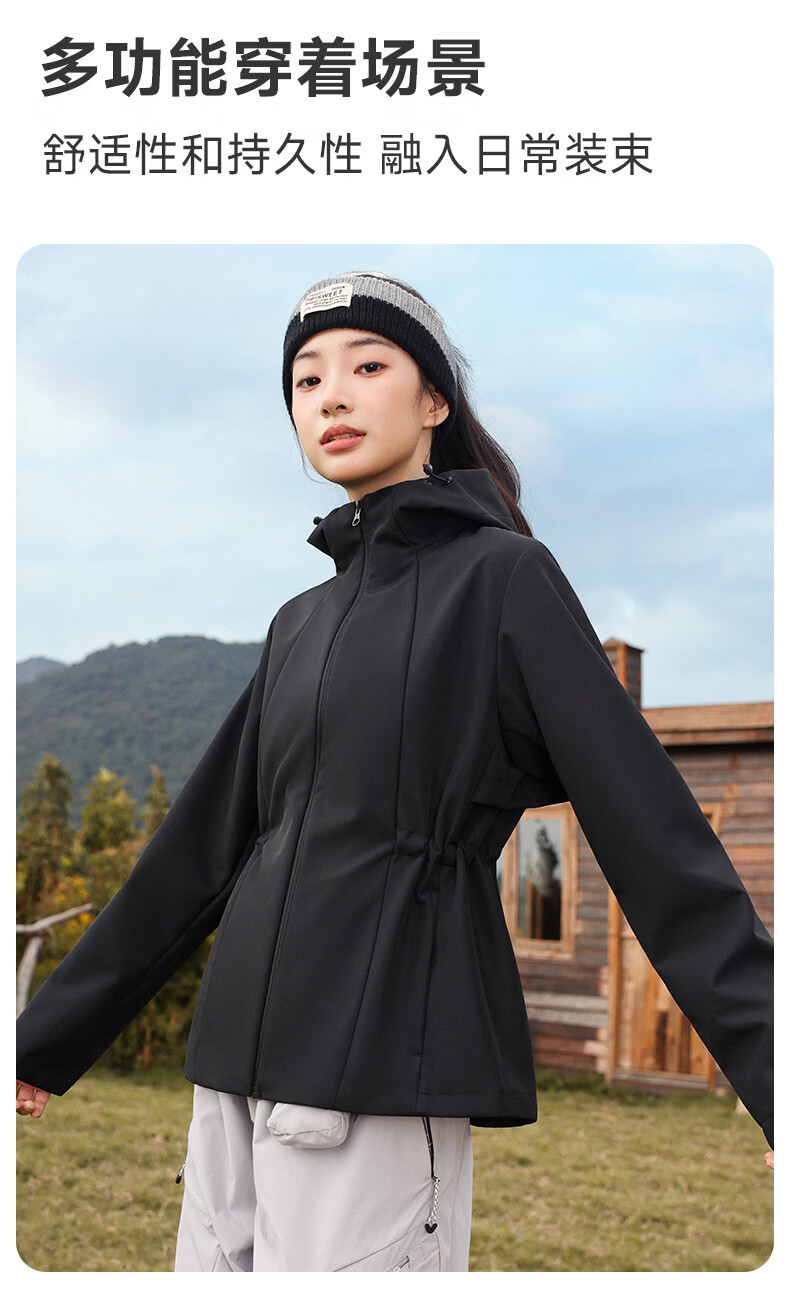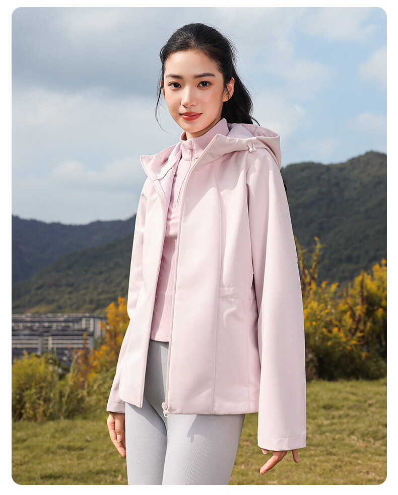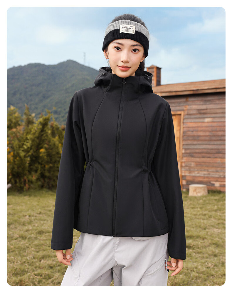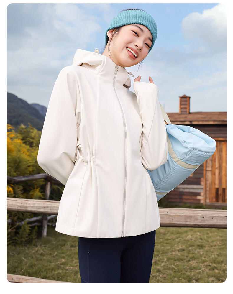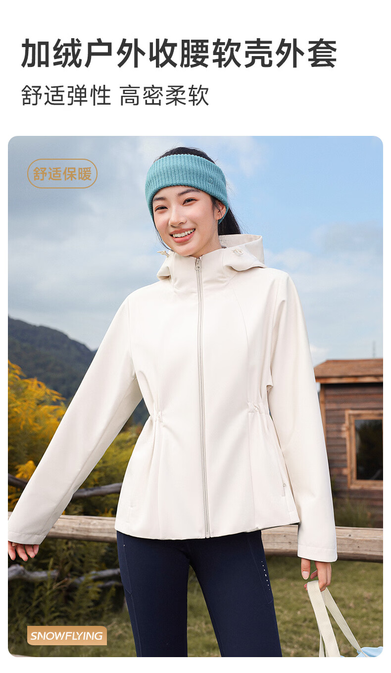 雪中飞加绒户外收腰软壳衣女2026年新款连帽时尚显瘦百搭气质春秋外套 粉色 160 (100-120斤)