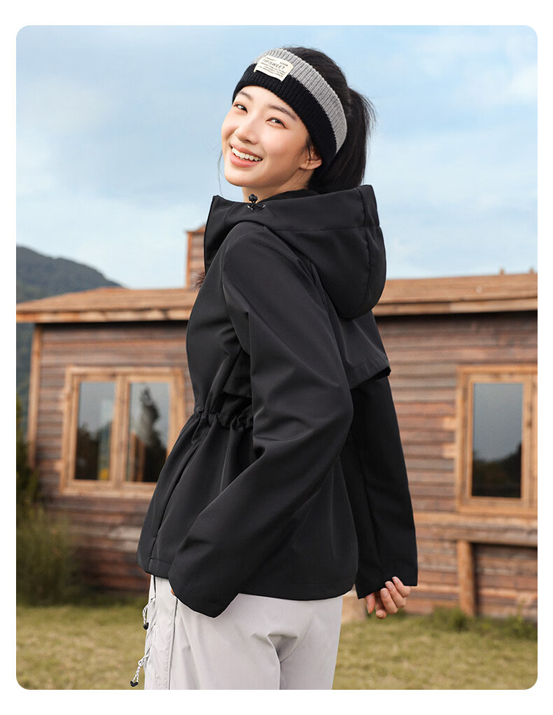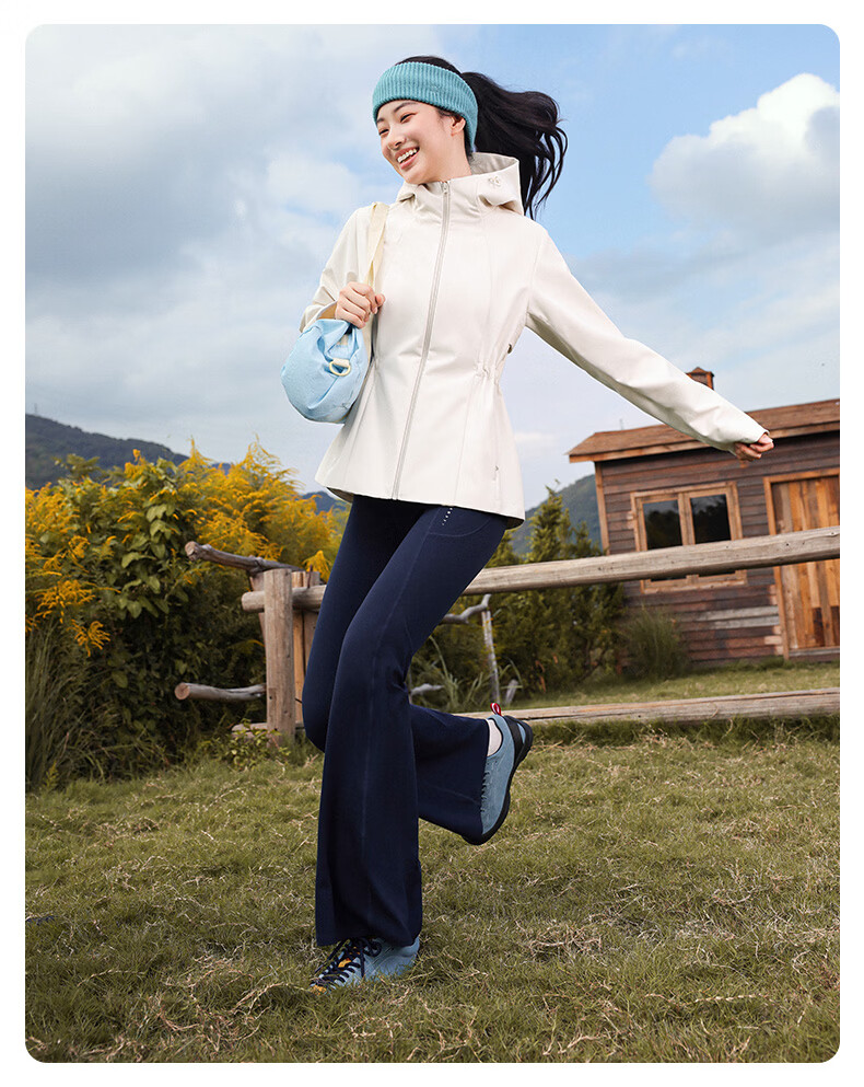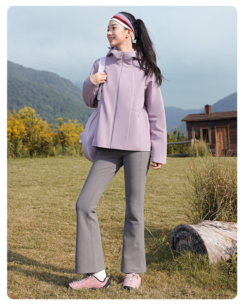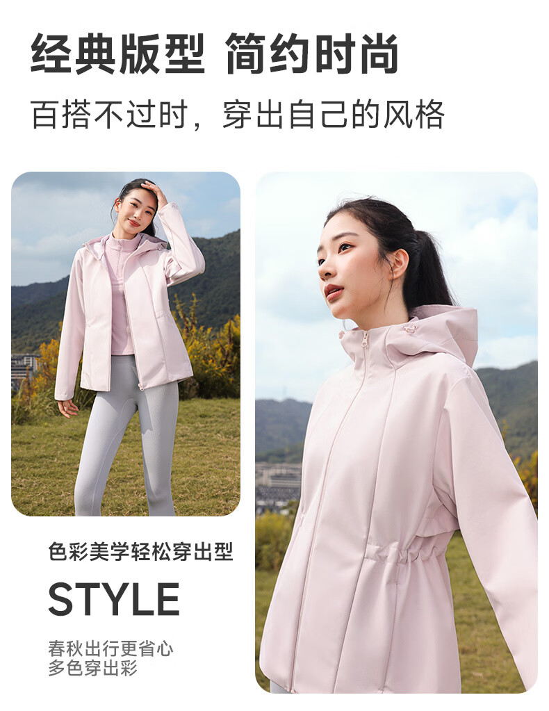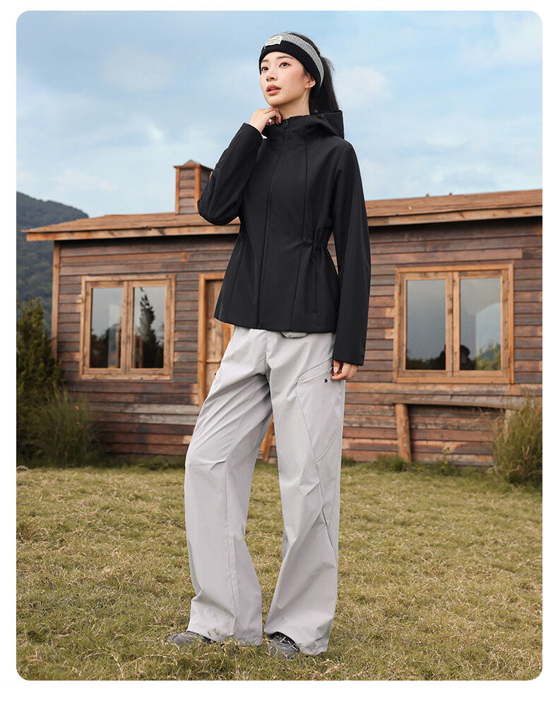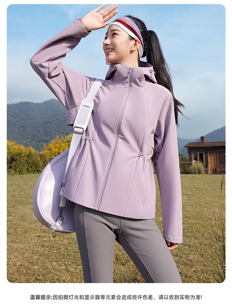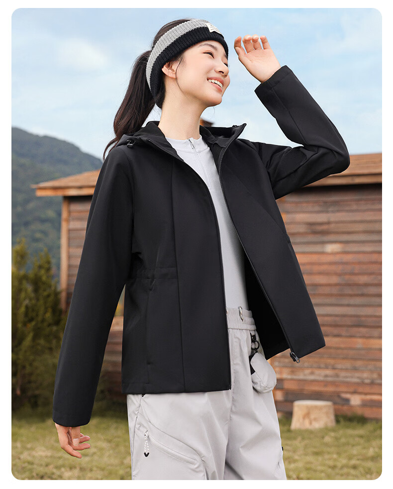 雪中飞加绒户外收腰软壳衣女2026年新款连帽时尚显瘦百搭气质春秋外套 粉色 160 (100-120斤)