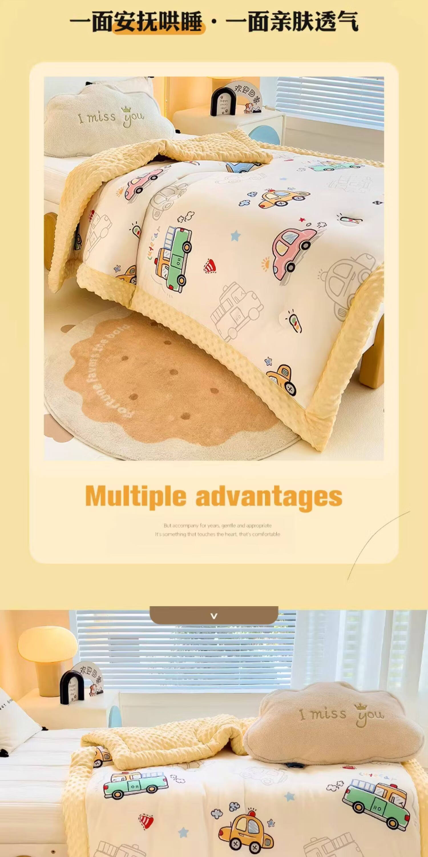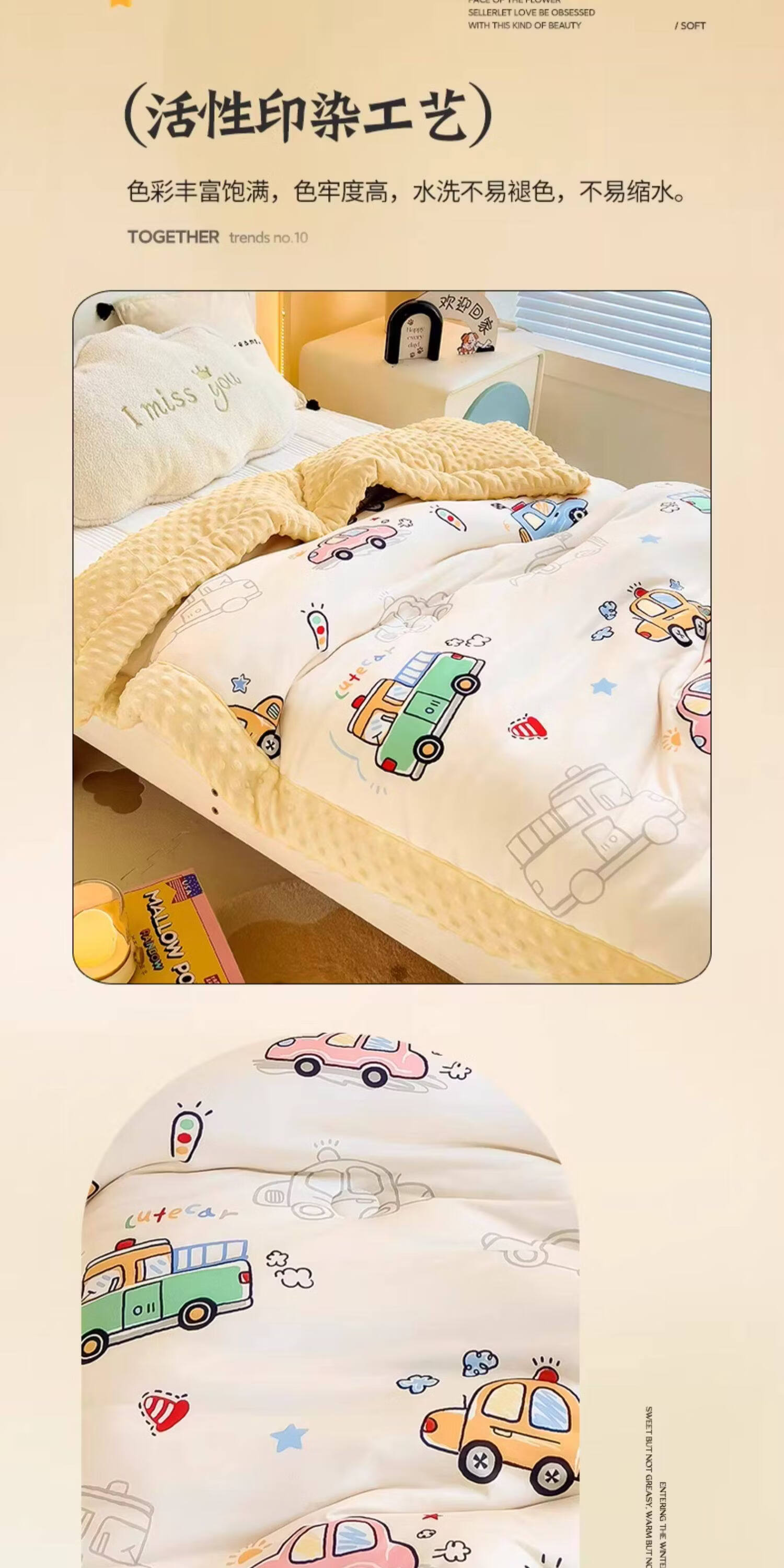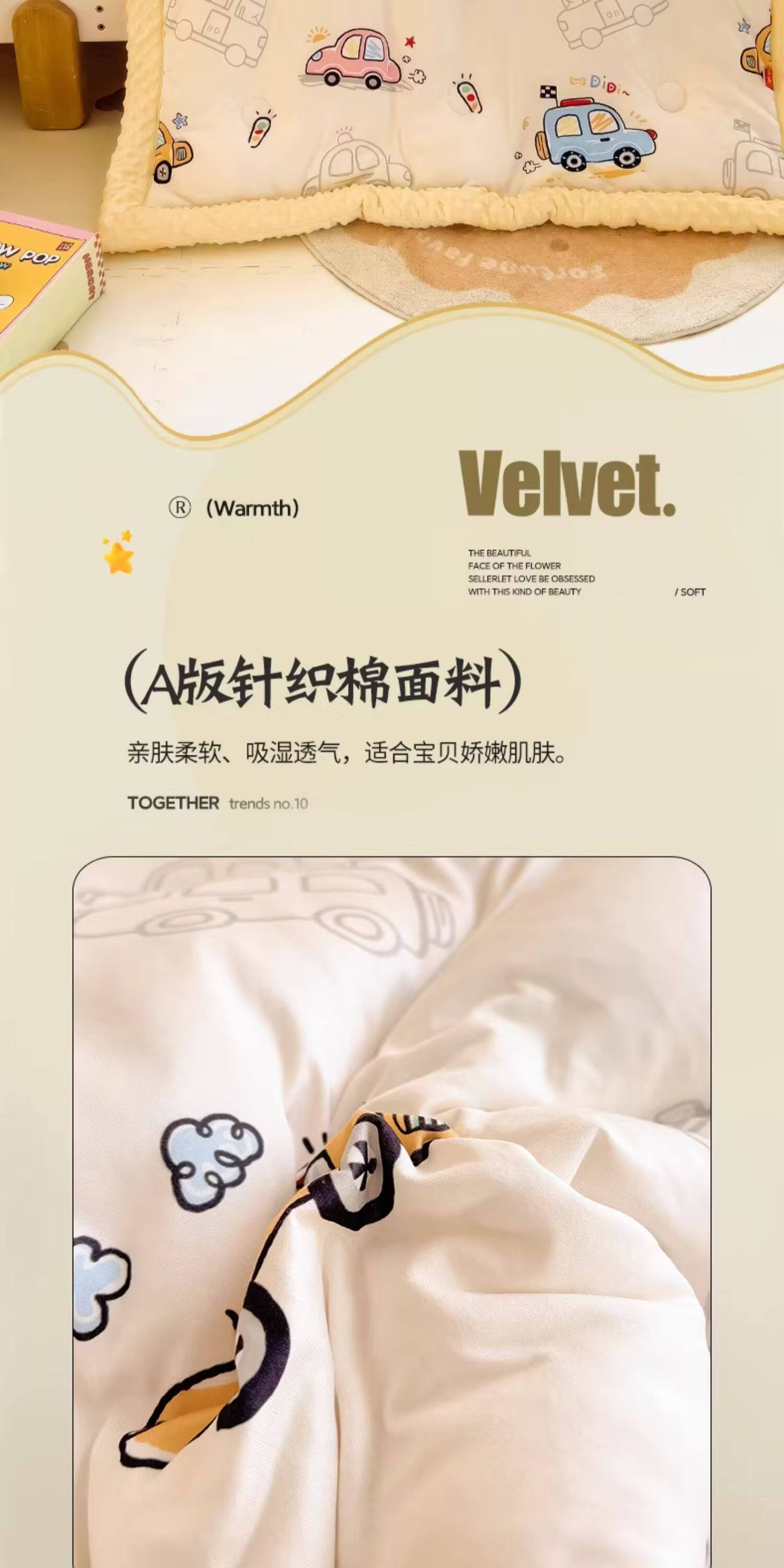 阿尔皮纳袋鼠A类儿童豆豆绒被子冬季加厚针织棉冬被芯单人幼儿园空调四季被芯 开心车队【A类母婴级针织豆豆绒被子】 100*120cm约1.5斤春秋被(适合0-3岁)