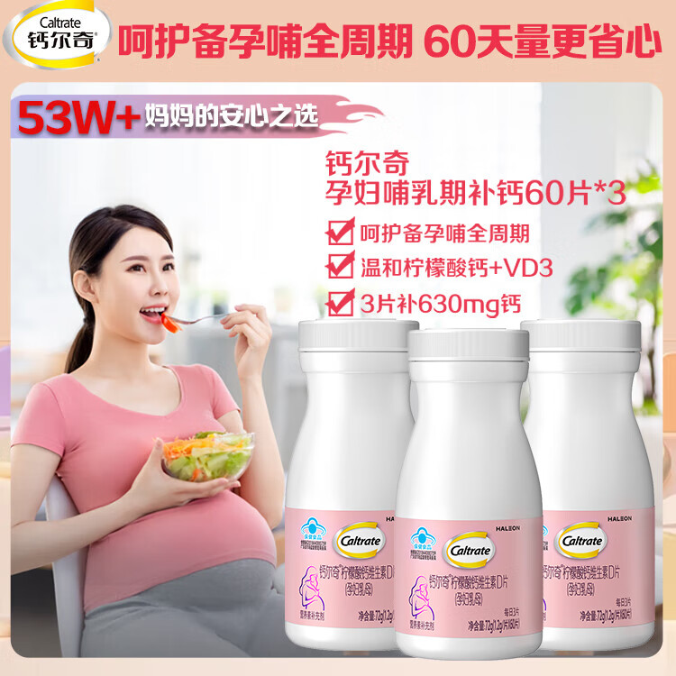 钙尔奇孕妇钙片 备孕成人孕早中晚哺乳期补钙 维生素D3+柠檬酸钙片60片