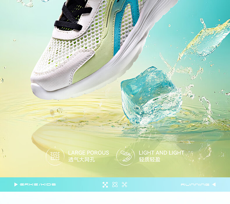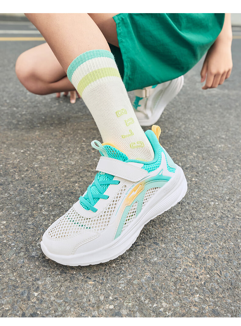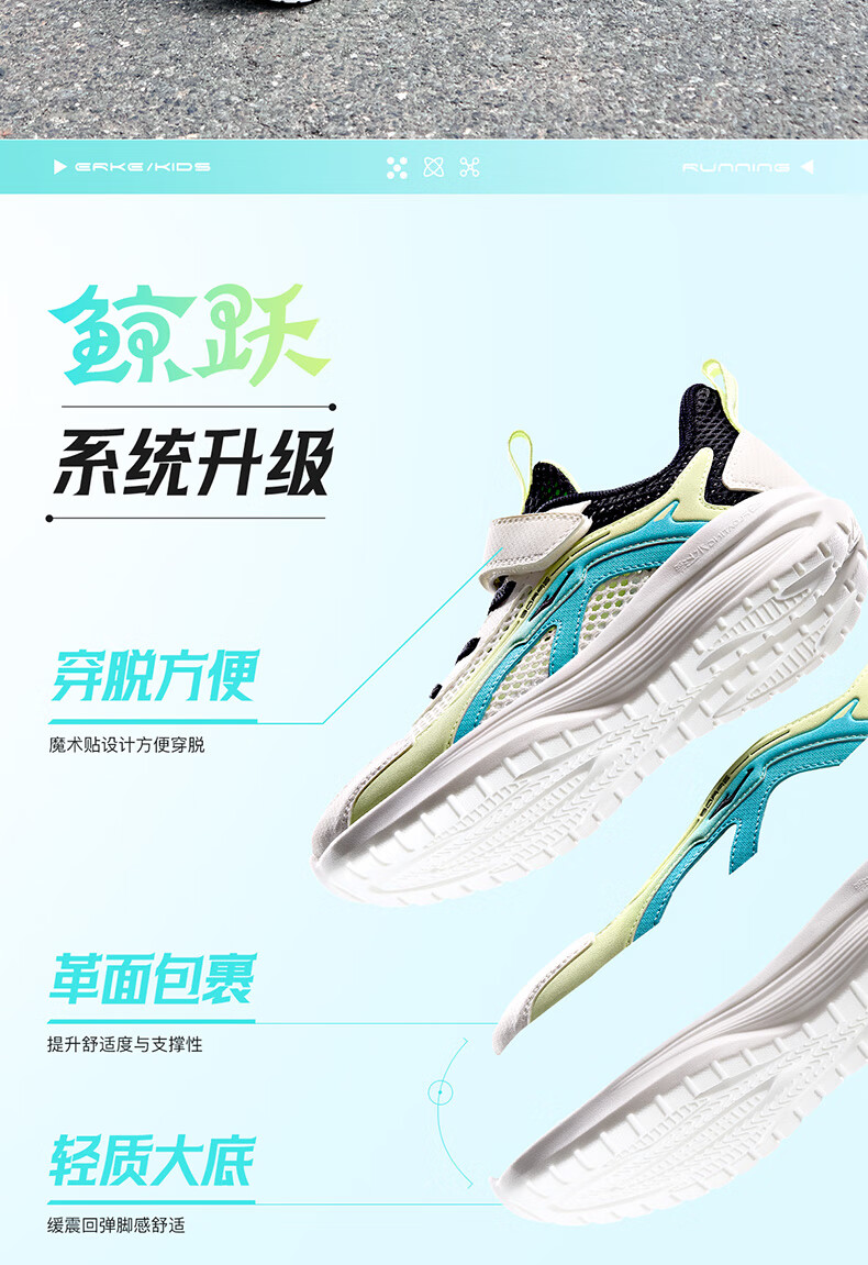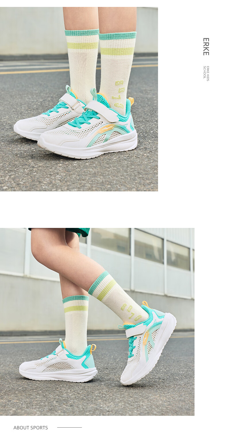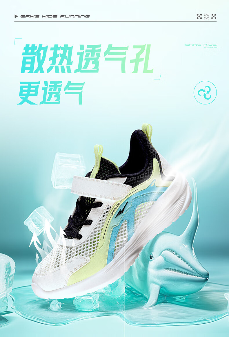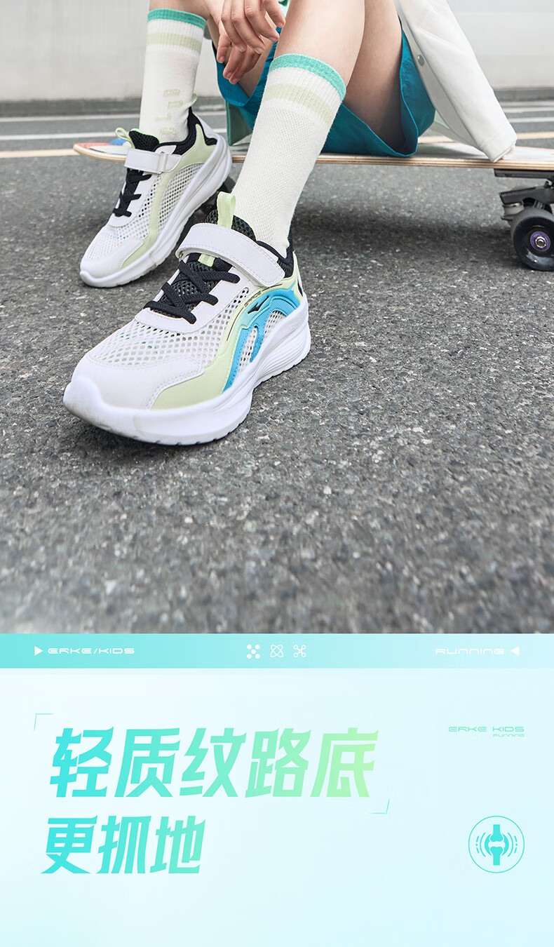 鸿星尔克(ERKE)童鞋男女童跑鞋儿童夏季大网孔透气运动鞋微晶白/玉石青33