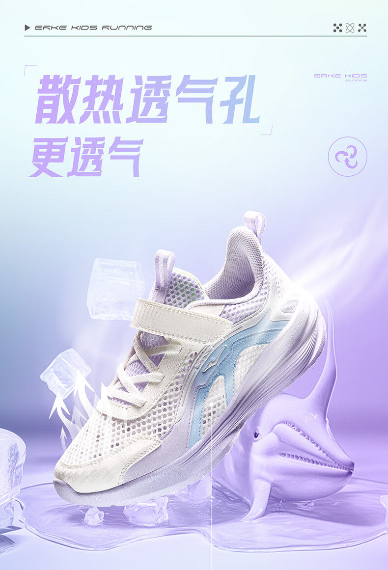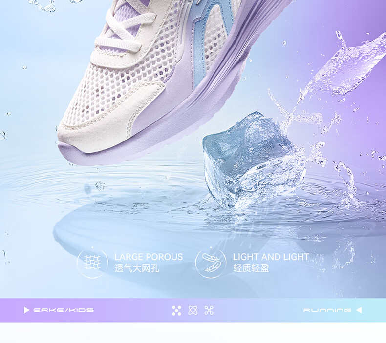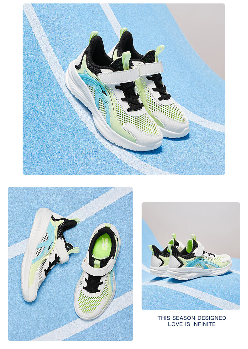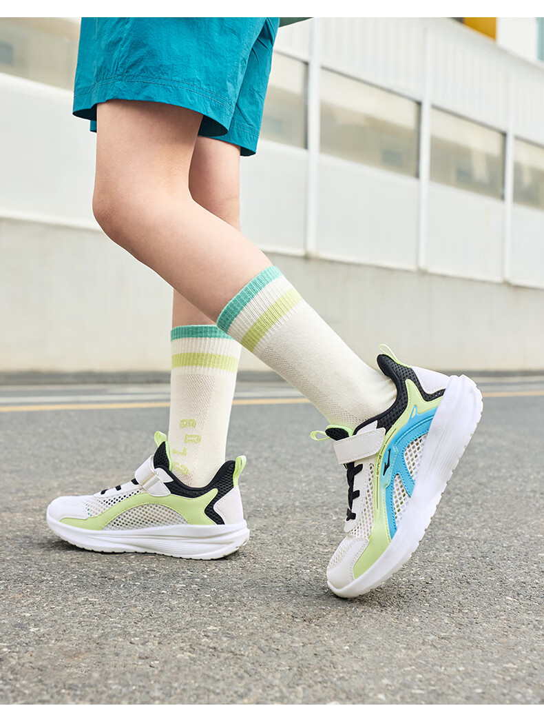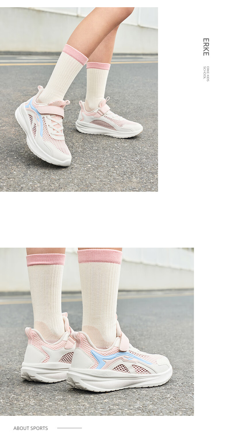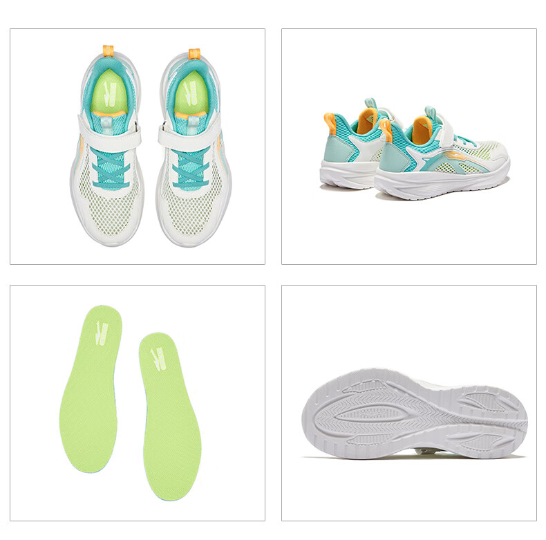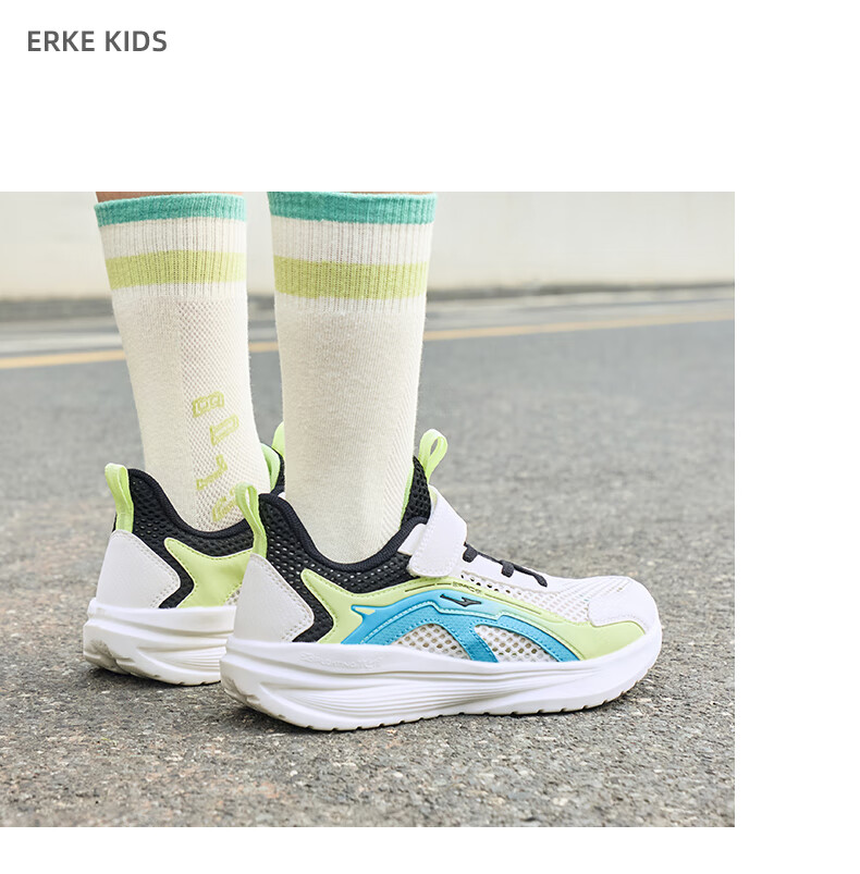 鸿星尔克(ERKE)童鞋男女童跑鞋儿童夏季大网孔透气运动鞋微晶白/玉石青33