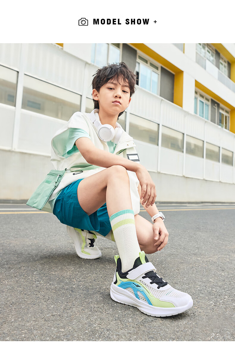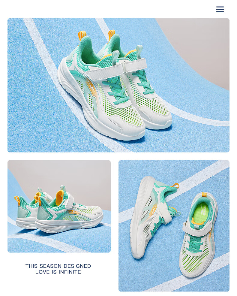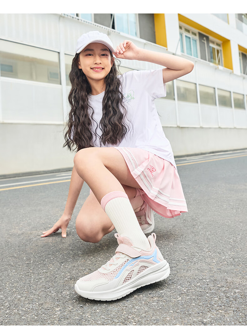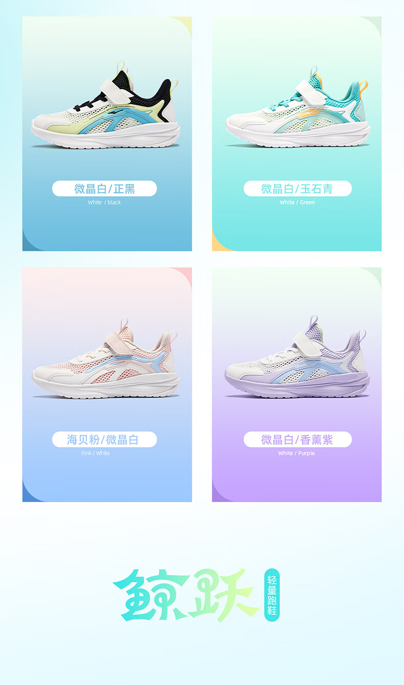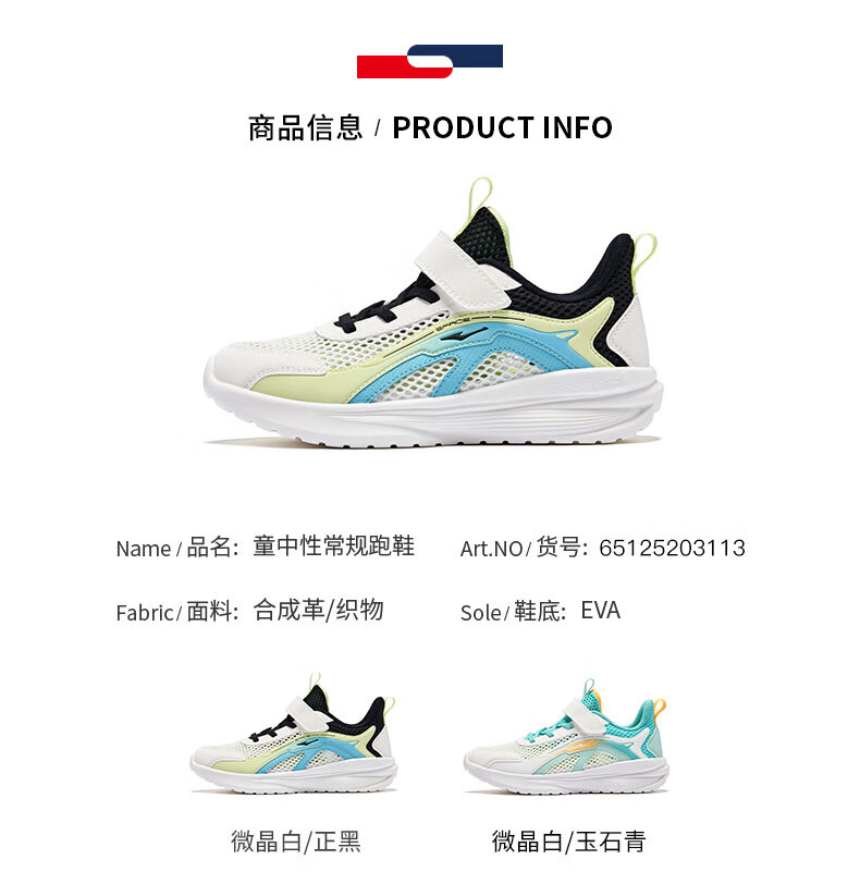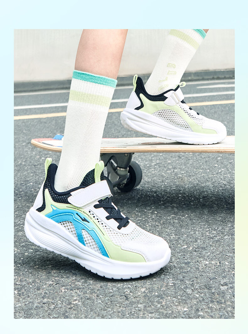 鸿星尔克(ERKE)童鞋男女童跑鞋儿童夏季大网孔透气运动鞋微晶白/玉石青33