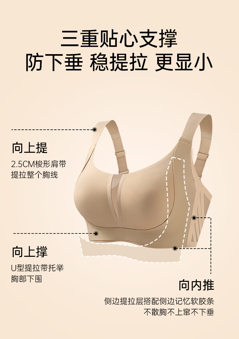 润微内衣女大胸显小显瘦提拉防下垂舒适无痕减压肩带收副乳文胸 月光灰 3XL (适合95BCD)