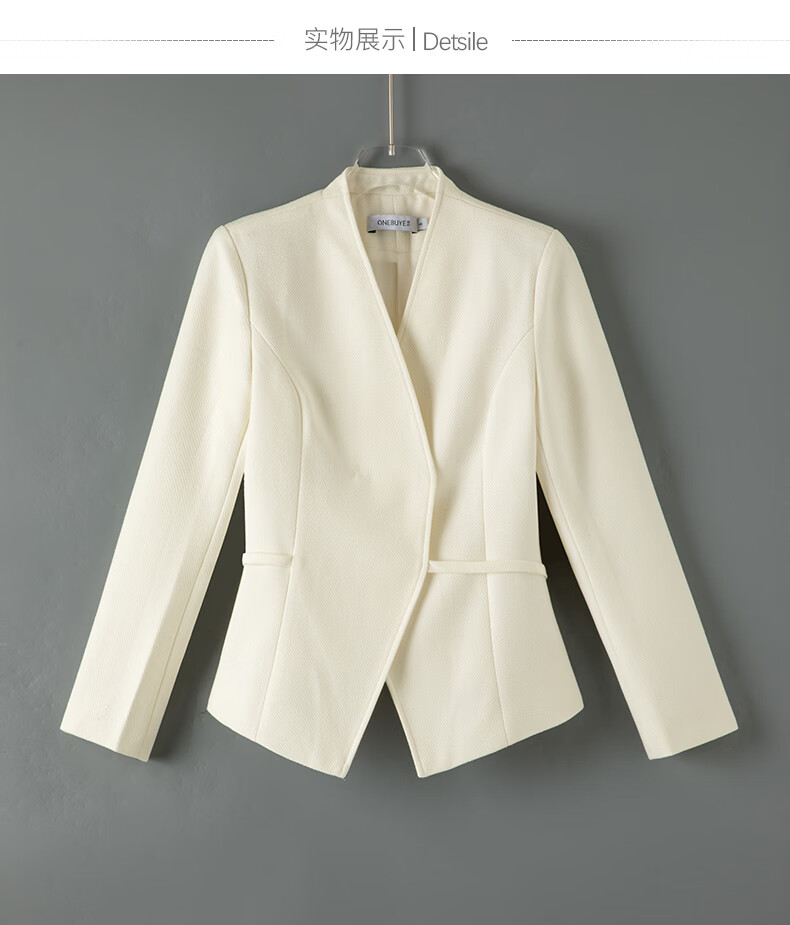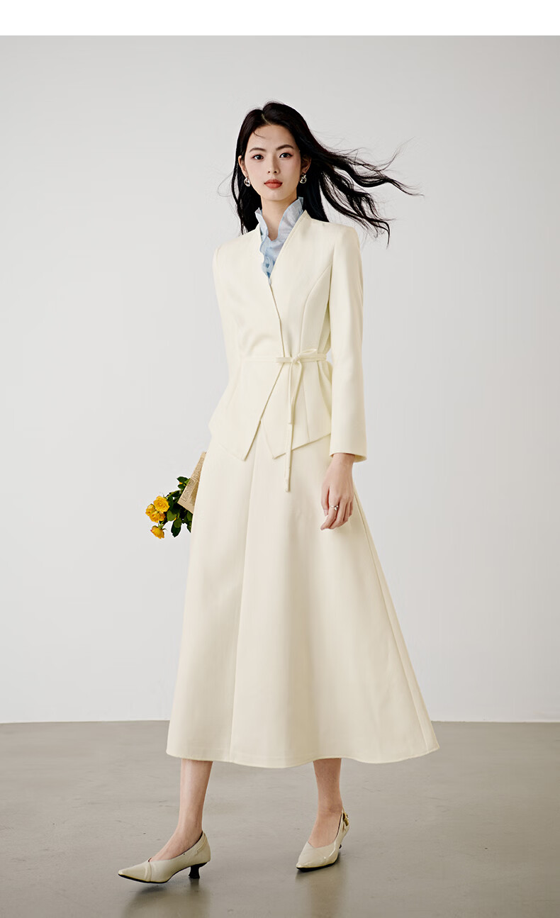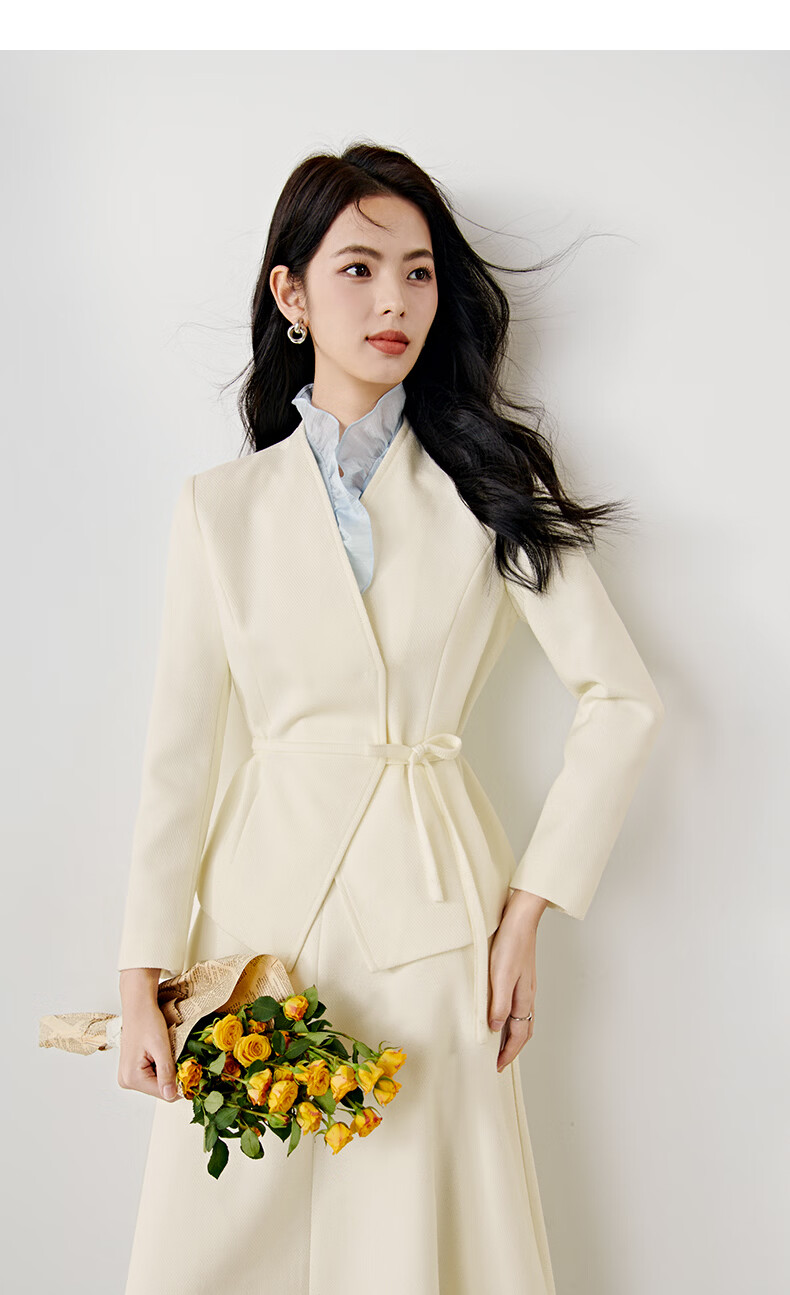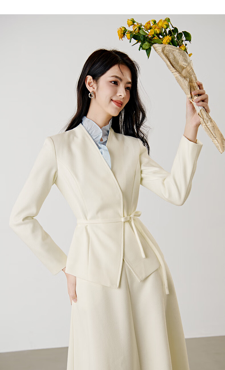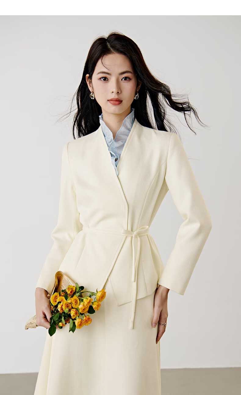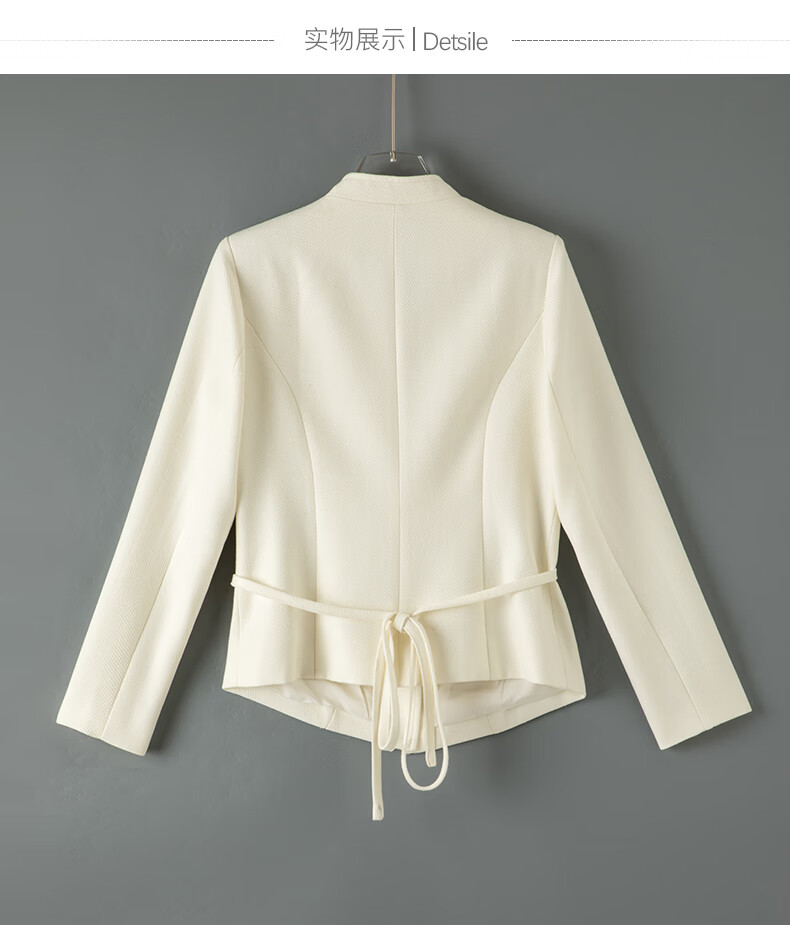 晚白2026春款时尚优雅正式场合知识分子穿搭系带西装挺括气质通勤外套 米白色 M