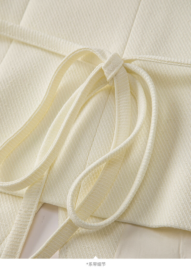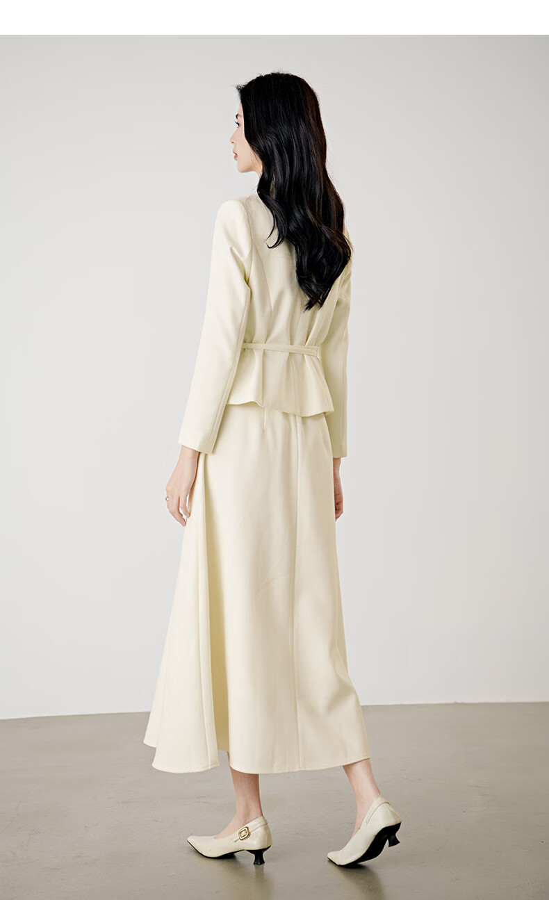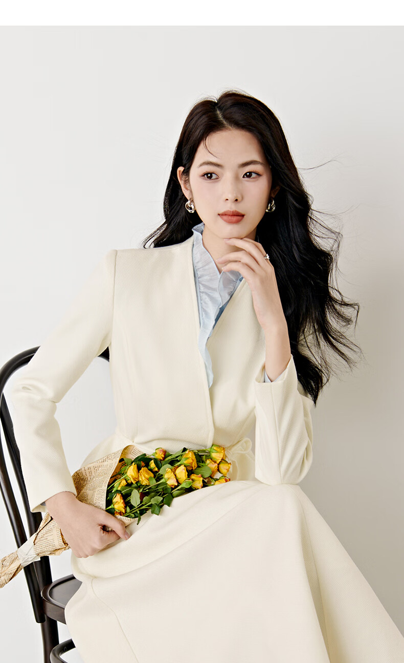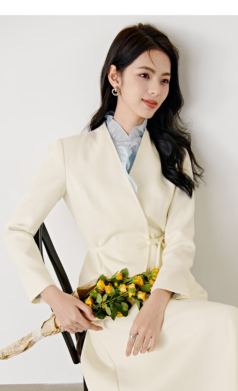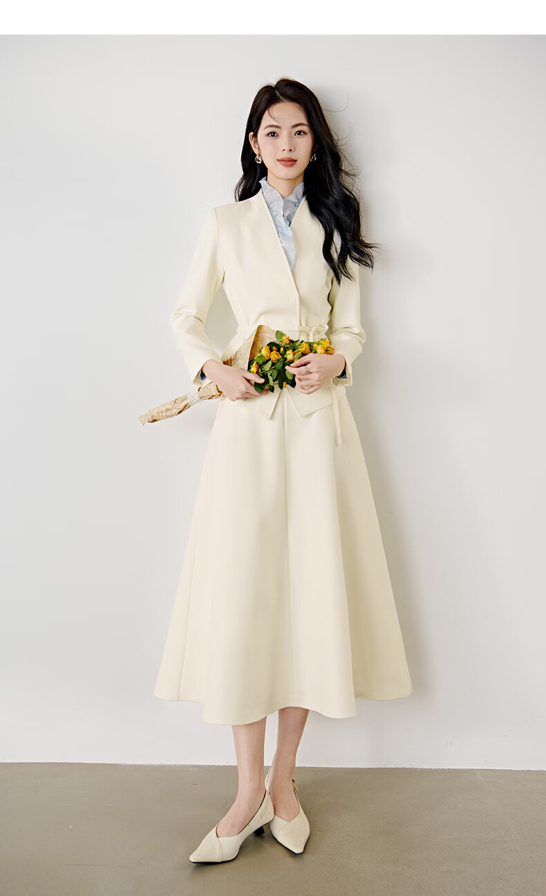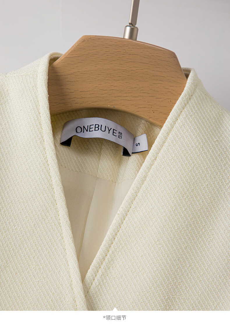 晚白2026春款时尚优雅正式场合知识分子穿搭系带西装挺括气质通勤外套 米白色 M