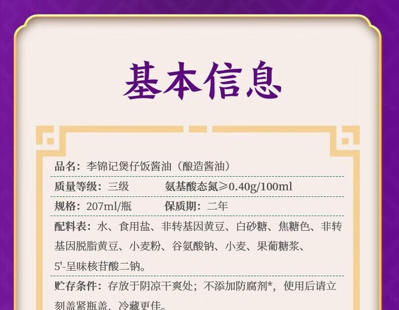 李锦记 煲仔饭酱油207ml 0添加防腐剂 腊味广式焖饭拌饭煎炒酱油