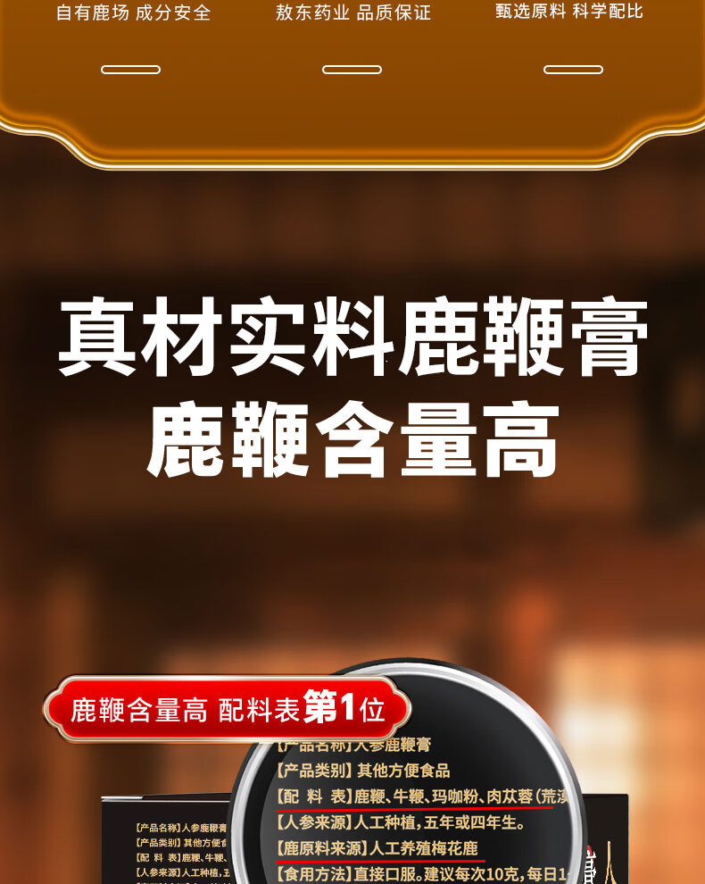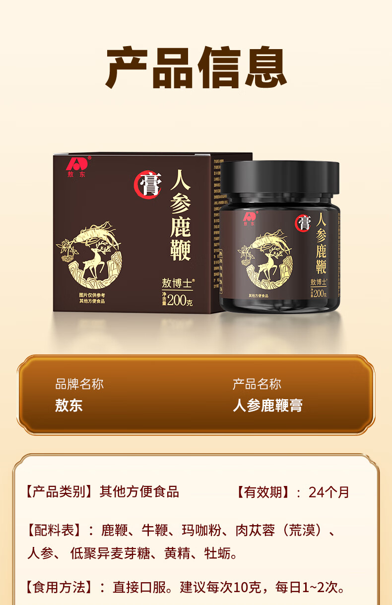 敖东【官方旗舰店】鹿鞭膏梅花鹿鹿鞭含量高鹿茸鹿鞭男性滋补品 200g*1盒 新品人参鹿鞭膏固体膏滋(非糖水)