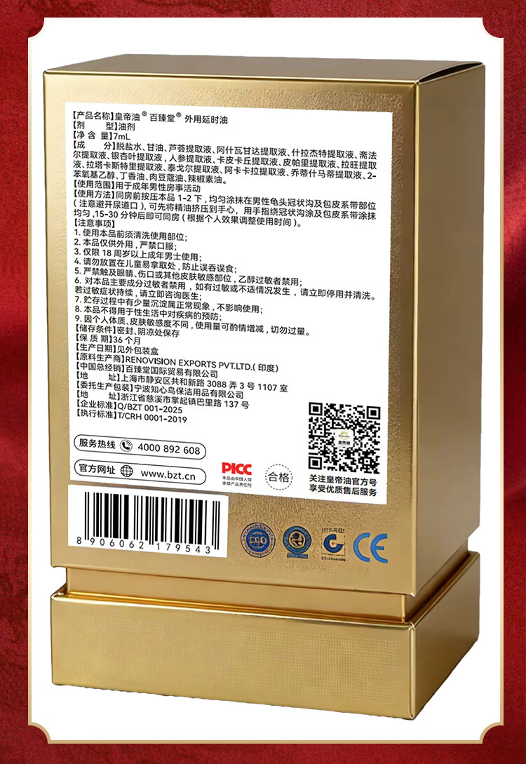 百臻堂皇帝油印度神油进口精油男性延时喷雾剂持久不麻可舔成人情趣用品 印度神油可舔不麻男士延时精油【帝王珍藏7ML】 印度REPL皇帝延时精油男士用情趣用品夫妻床上助爱工具