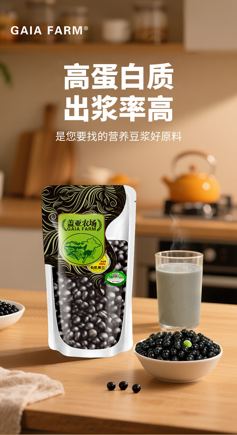 盖亚农场(Gaia Farm) 有机黑豆 东北绿芯黑豆(无染色 可打豆浆 无染色五谷杂粮 ) 【经典搭配】有机黑豆450g+有机黄豆450g+有机红豆450g