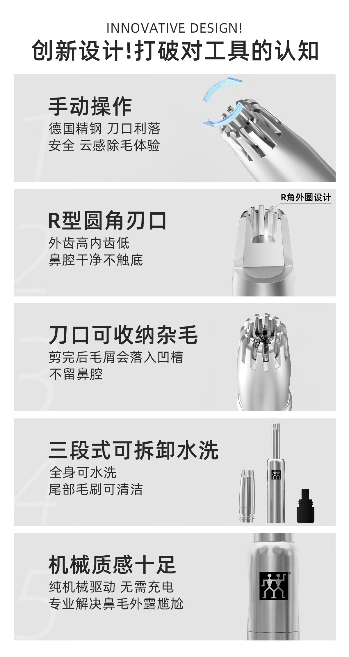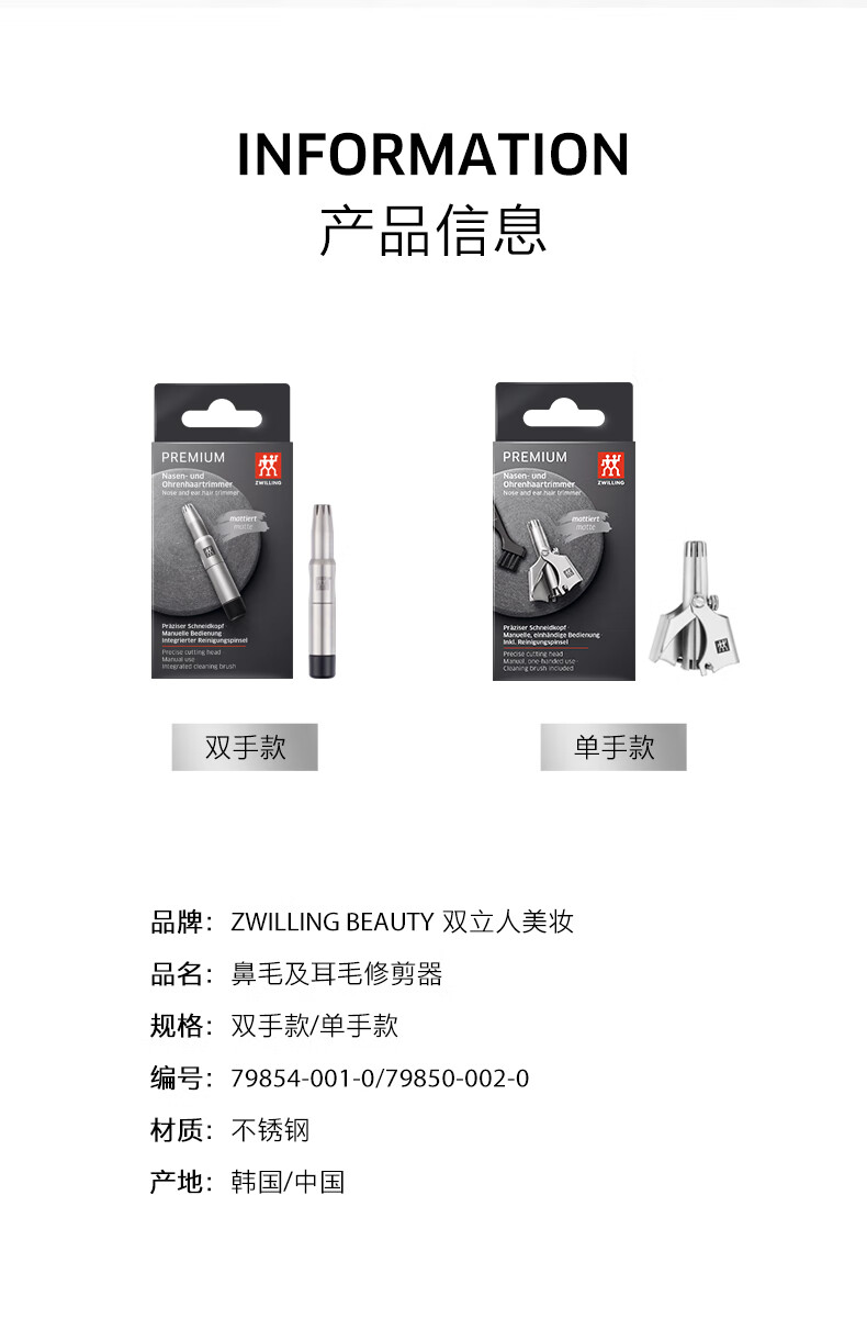 双立人(ZWILLING)原装进口耳鼻毛修剪器男士专用非电动鼻毛剪刀水洗无噪音生日礼物