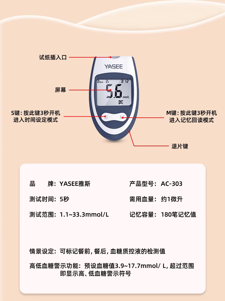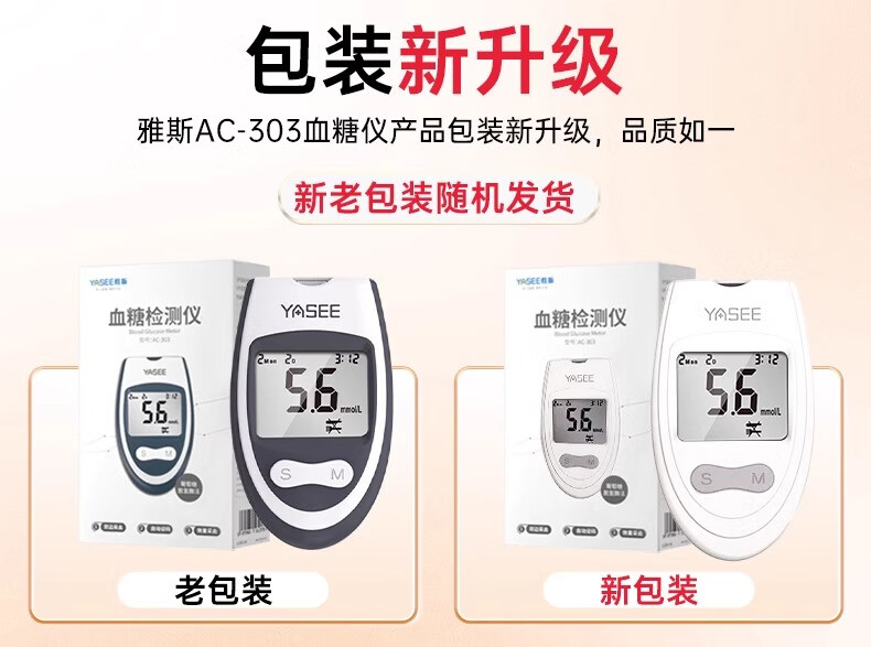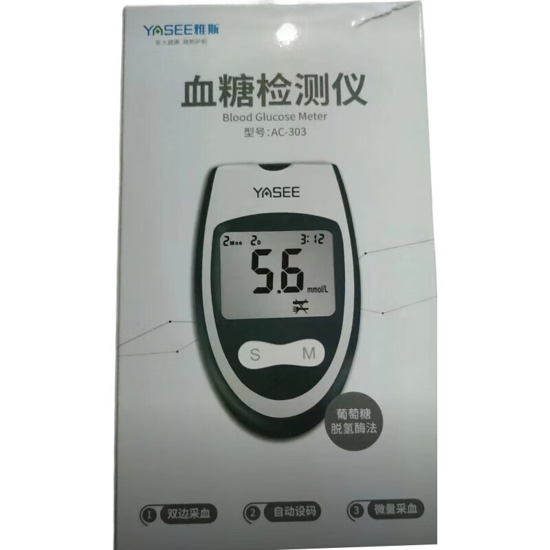 雅斯(YASEE)AC303血糖仪家用医用级精准血糖检测仪免调码官方授权正品 【血糖仪】+300试纸+送采血针棉片